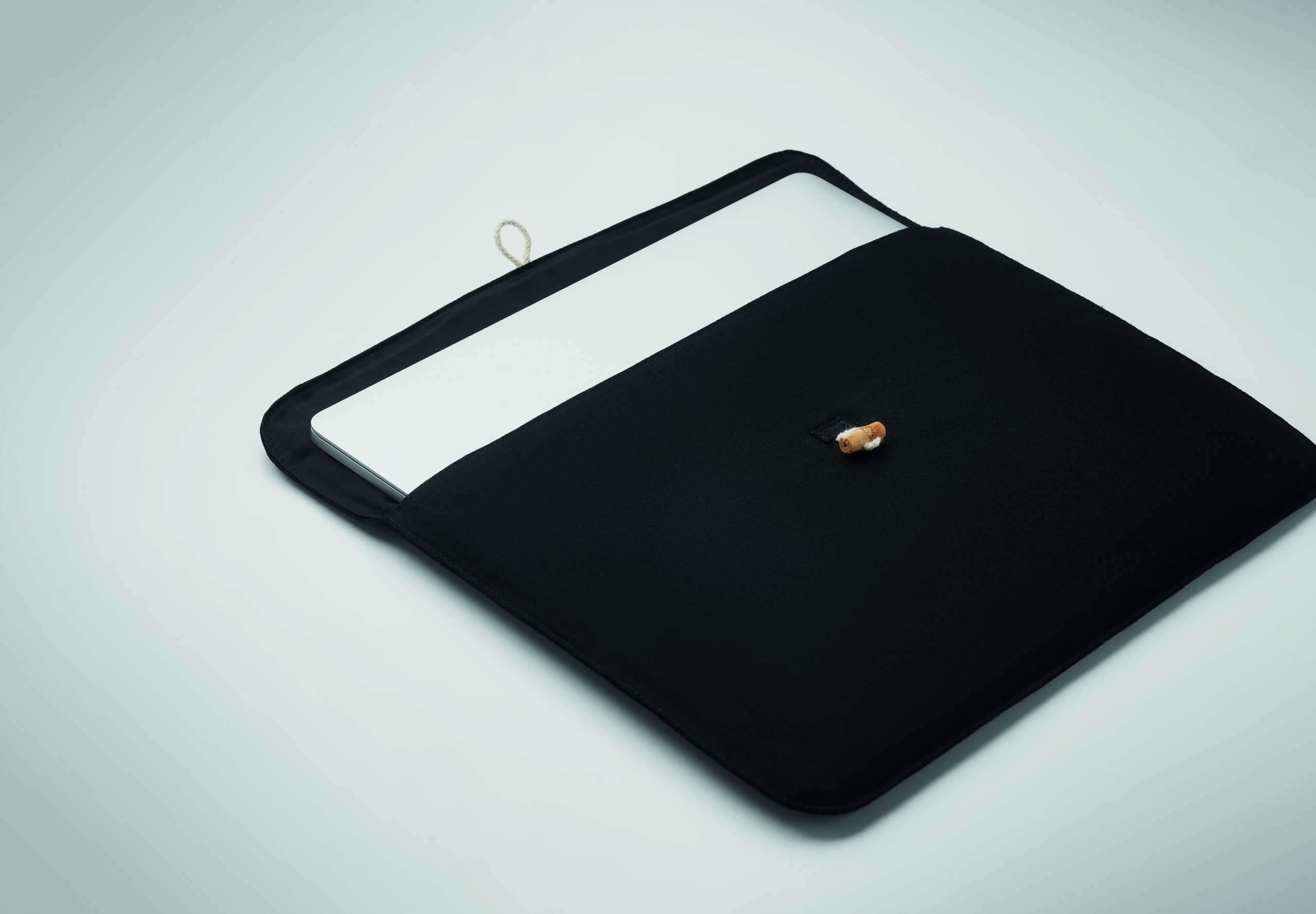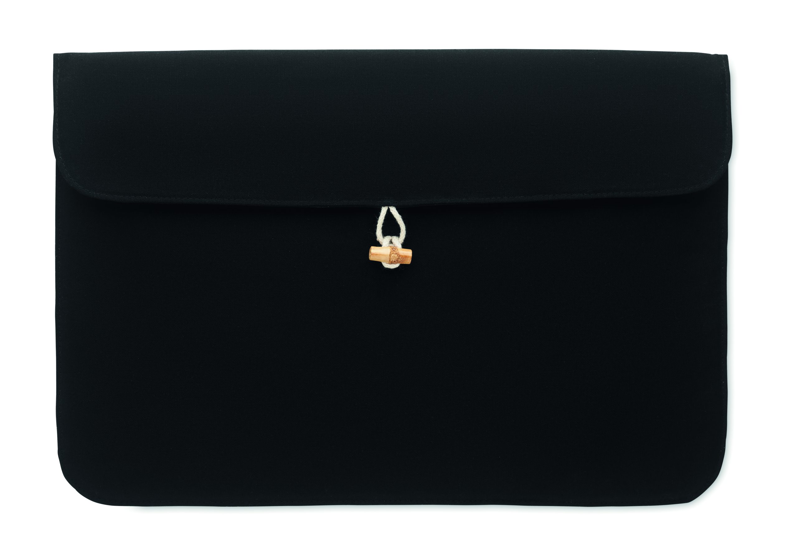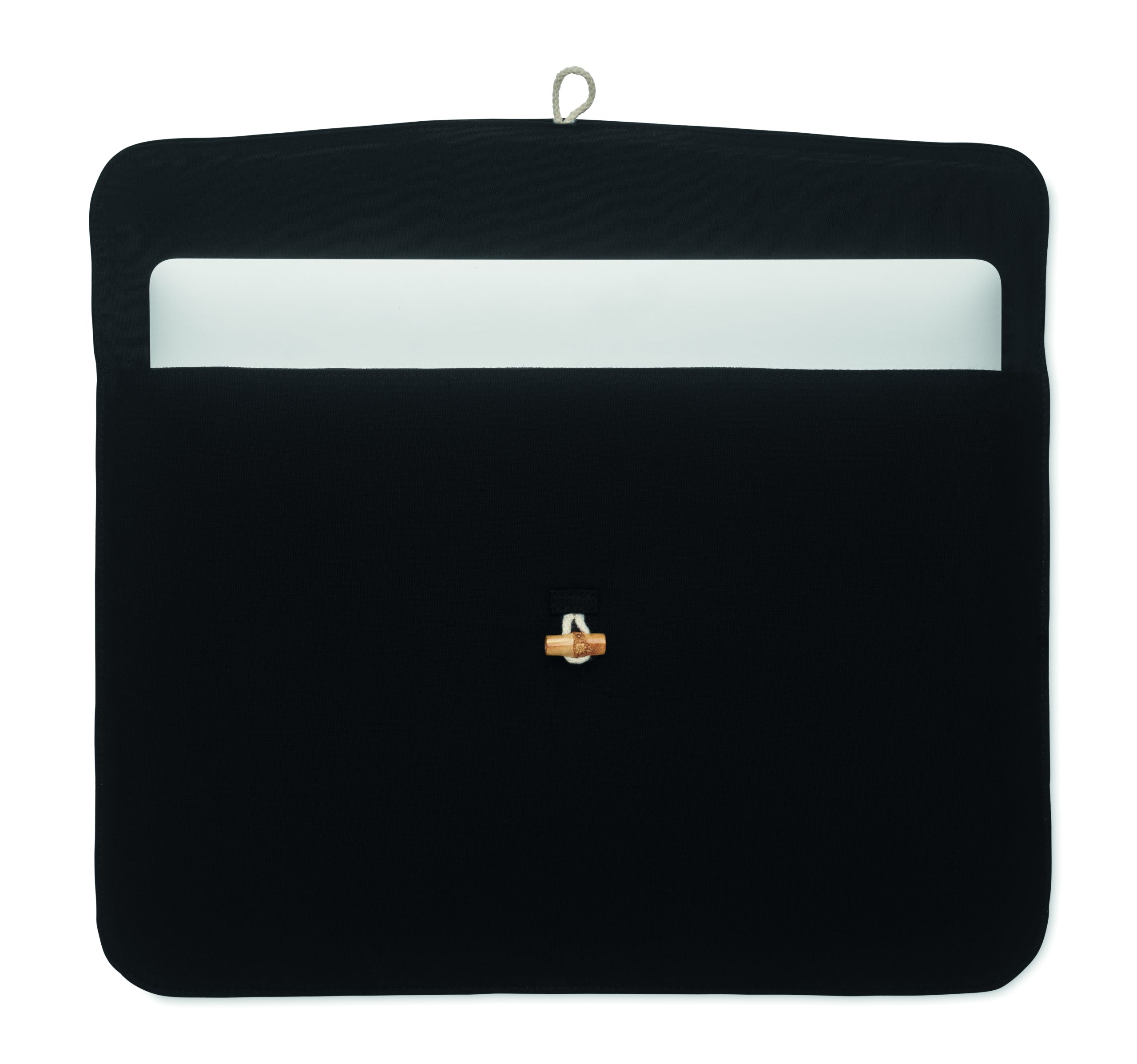 15-calowa wyściełana torba na laptopa z bawełny 220 gr/m². Wewnętrzna podszewka 120 gr/m². Bambusowe zapięcie na guzik.