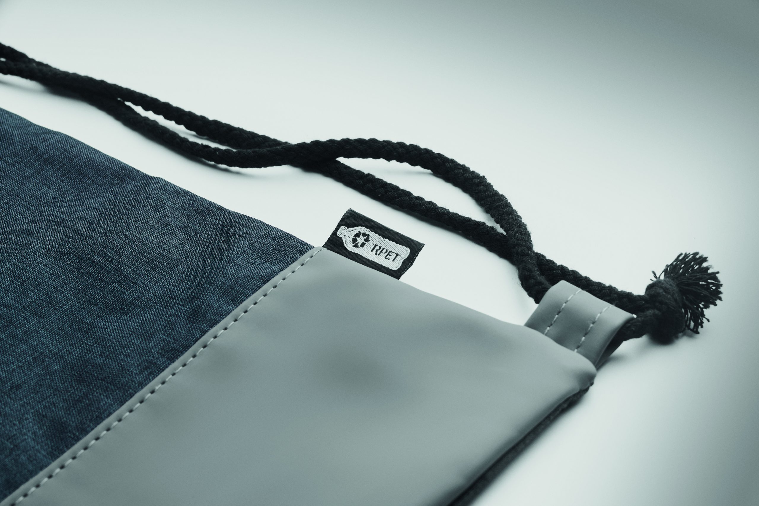 Worek ze sznurkiem workoplecak w 2 odcieniach z poliestru 300D RPET z miękkimi detalami z PU i sznurkiem z polibawełny.