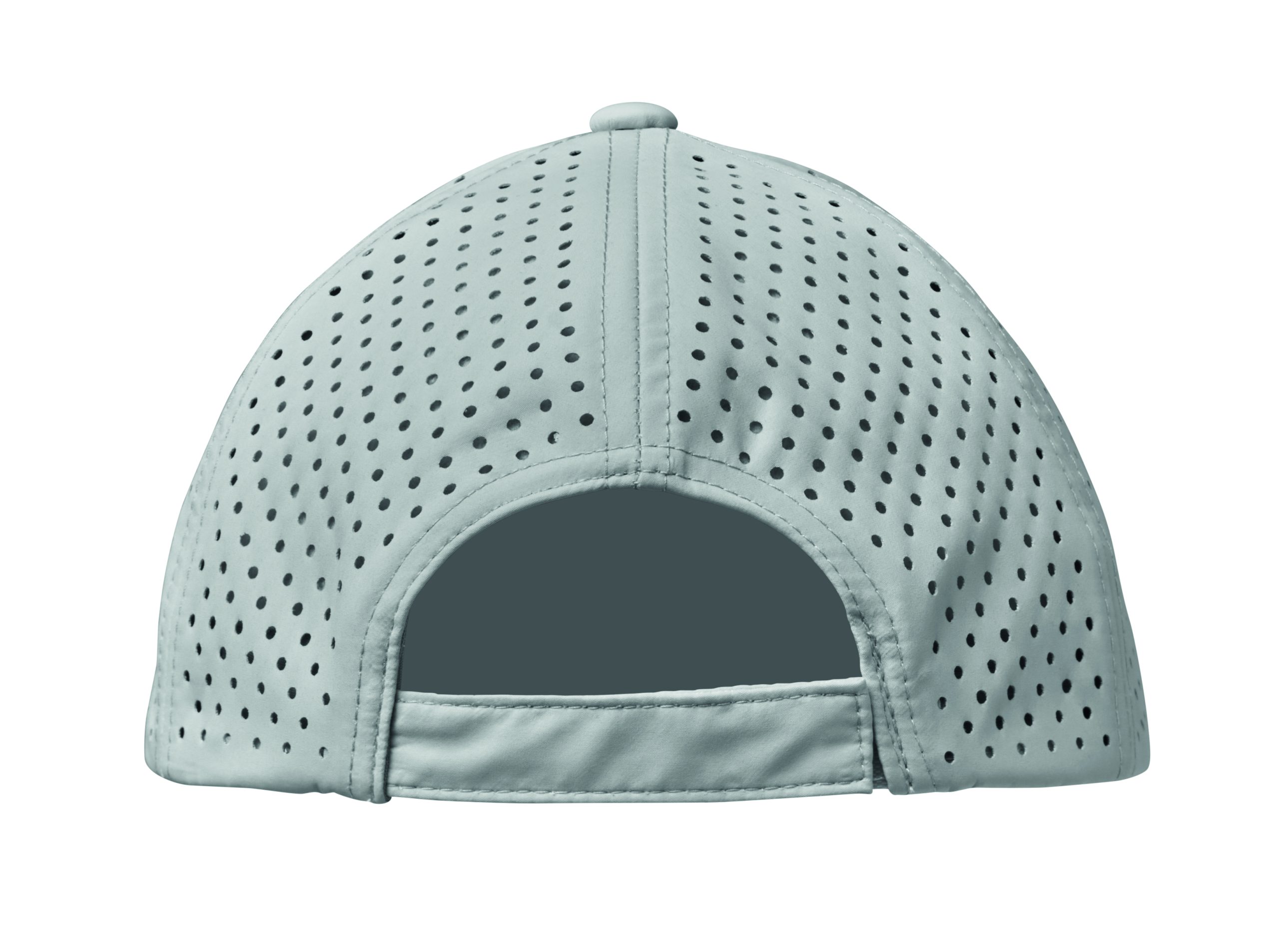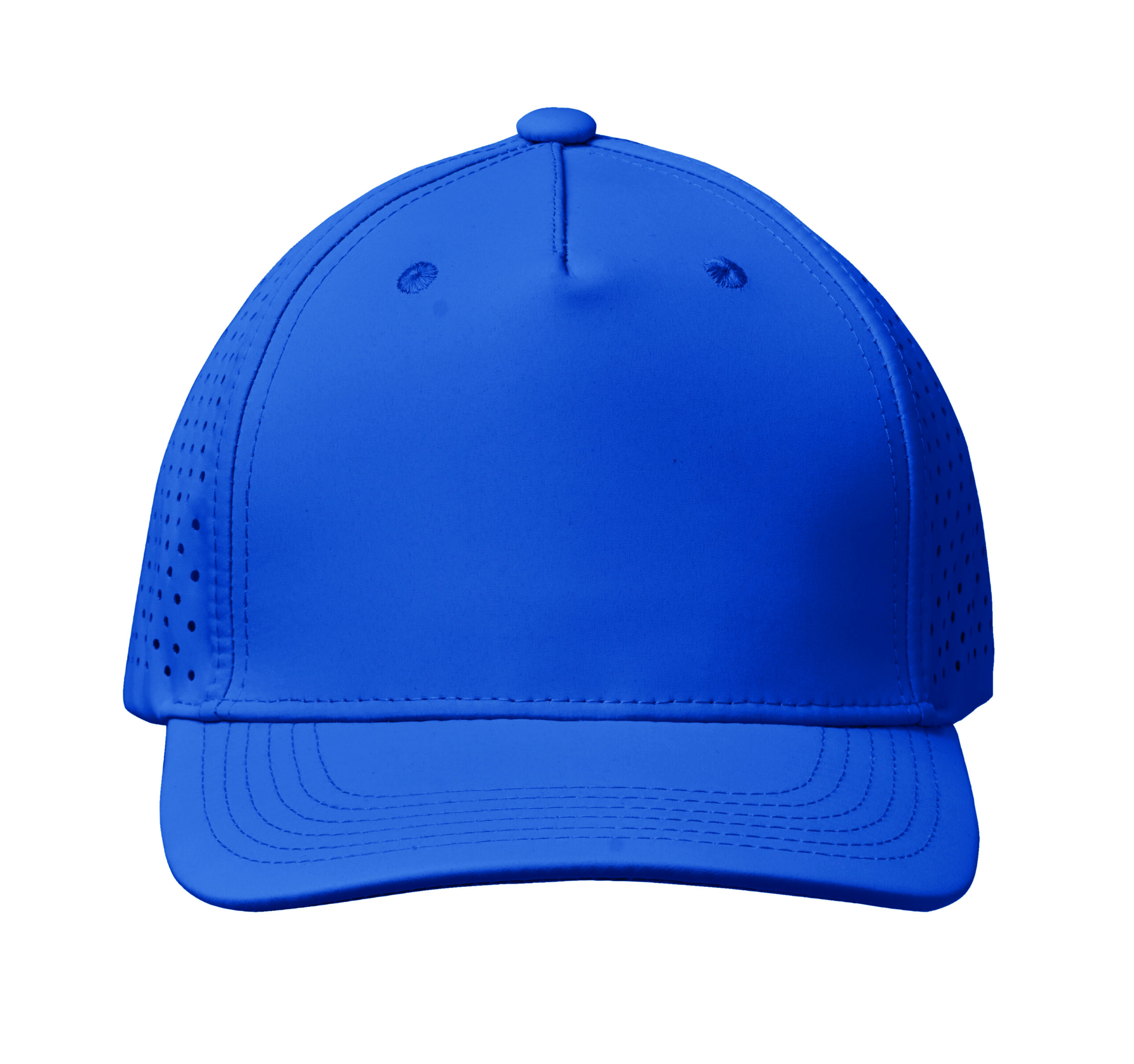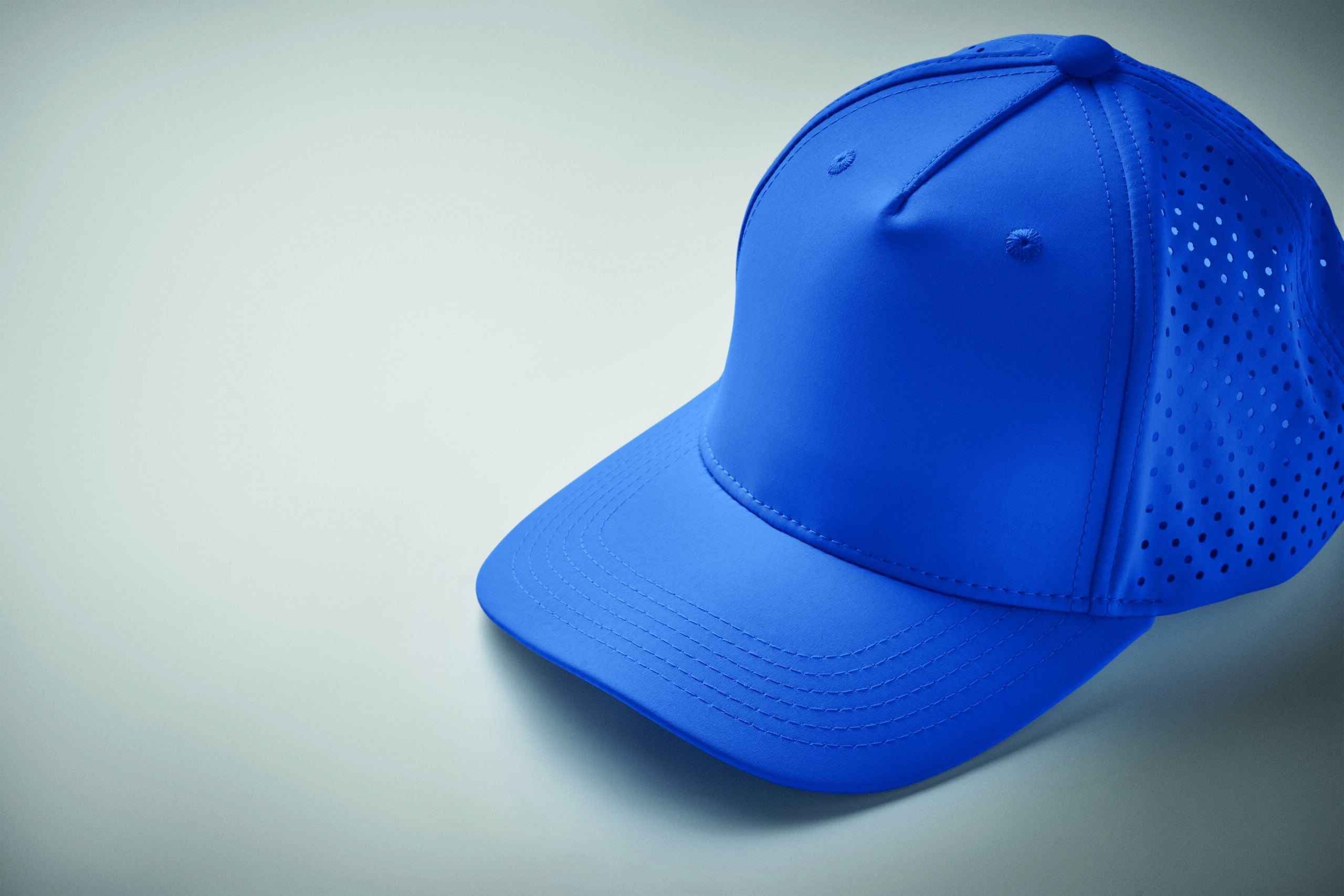 5-panelowa czapka z poliestru z regulowanym zapięciem na rzep i laserowo perforowanymi otworami z 2 obszytymi oczkami w dopasowanym kolorze. Produkt jest szybkoschnący, odporny na pot i wodę. 130 gr/m²
