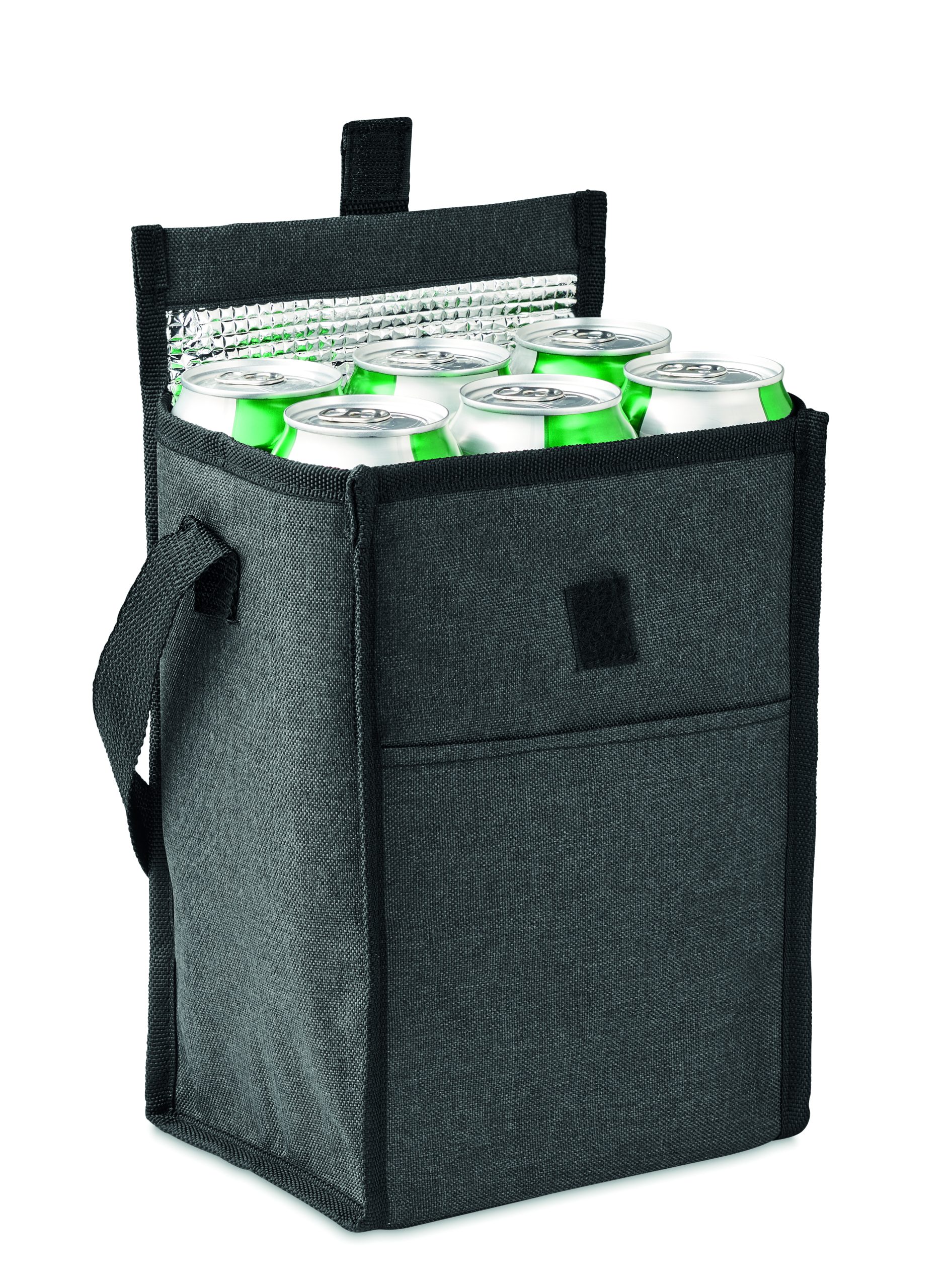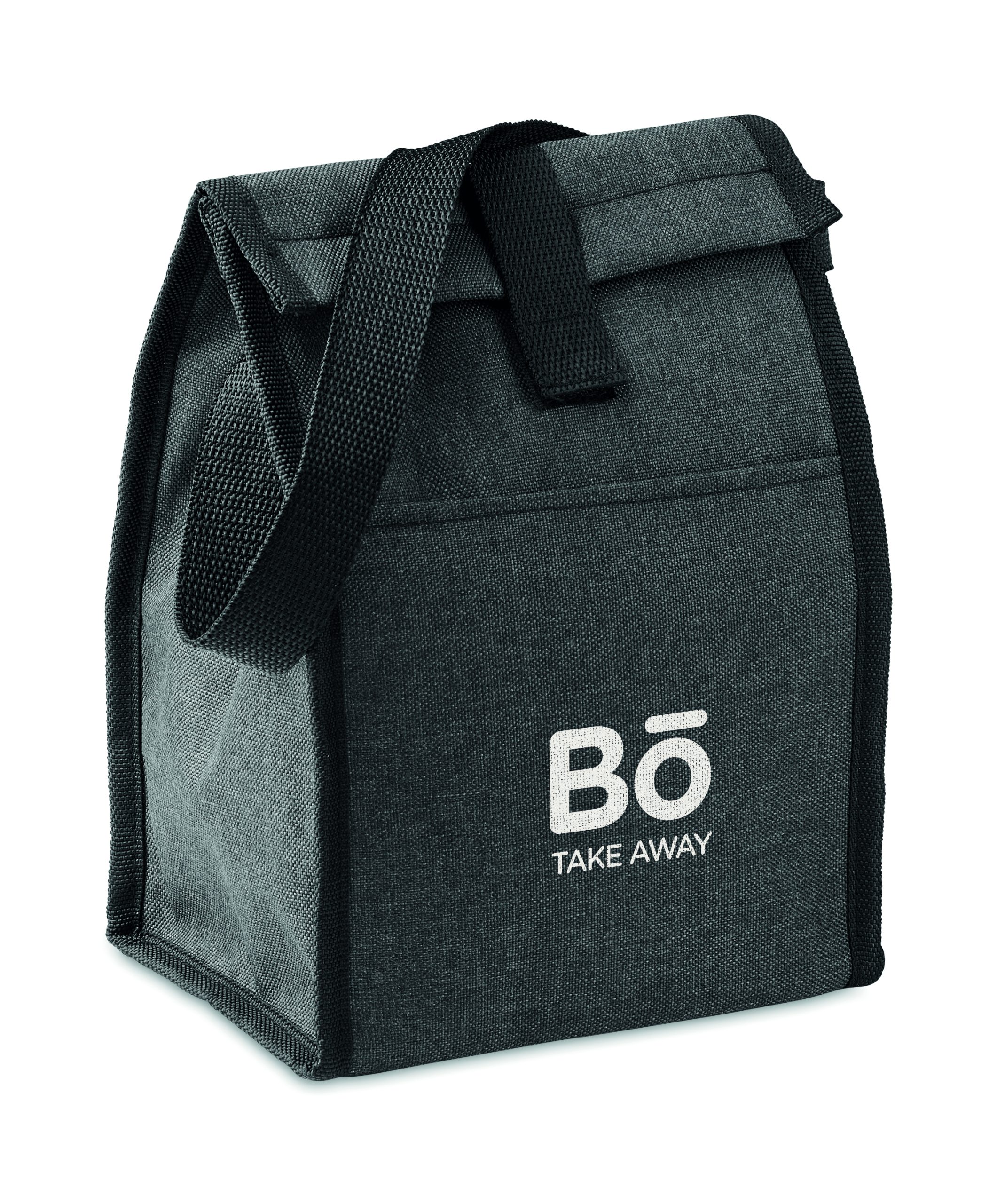 Torba chłodząca na lunch z poliestru 600D RPET z przednią kieszenią. Pojemność 3L. Materiał izolacyjny: 2 mm pianka PE z folią aluminiową.