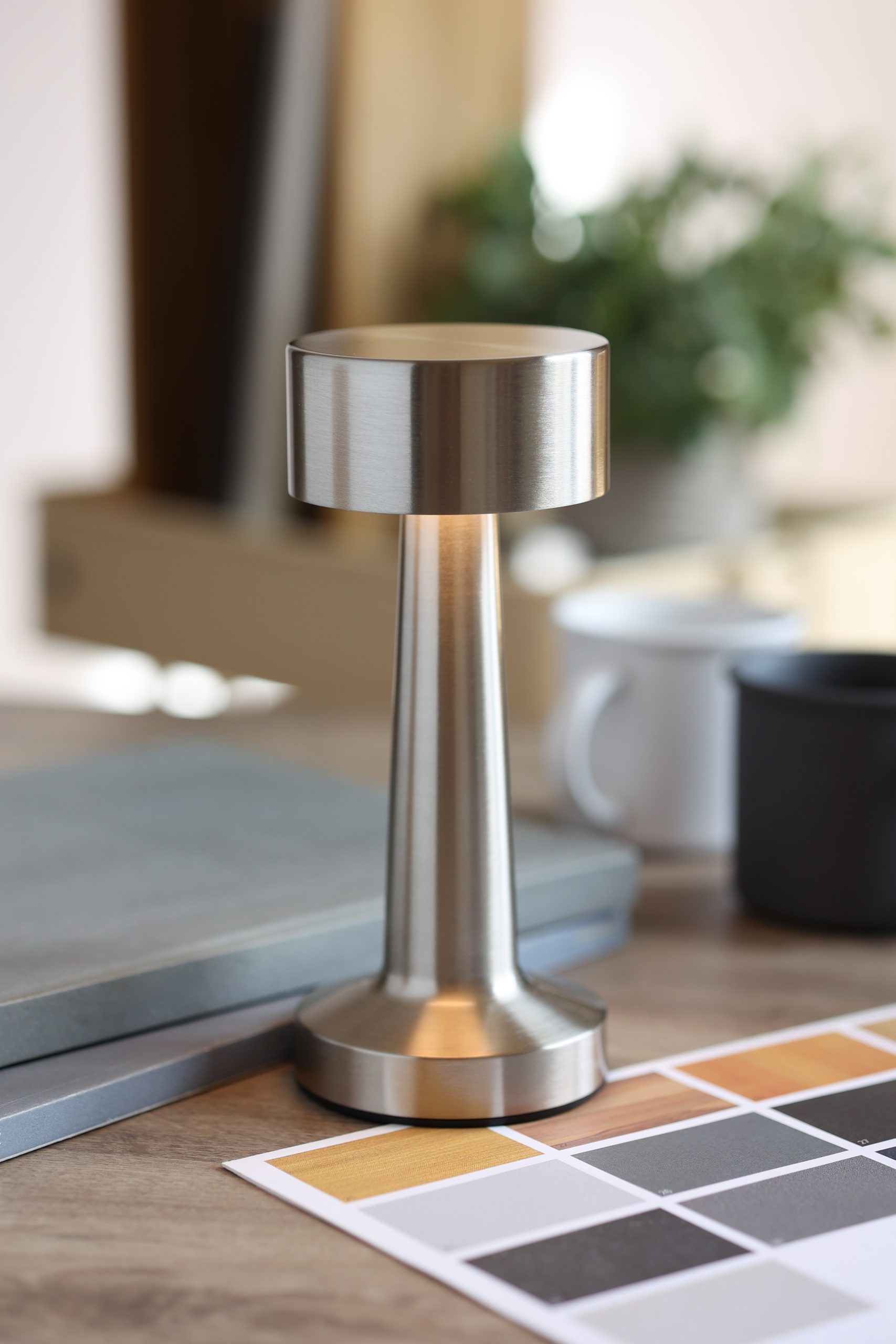 Żelazna lampa stołowa z 12 diodami LED, bezstopniowym ściemnianiem, 3 trybami oświetlenia i sterowaniem dotykowym. Port USB i akumulator litowo-jonowy 1200 mAh. 6-godzinny czas pracy po pełnym naładowaniu. W zestawie kabel do ładowania.