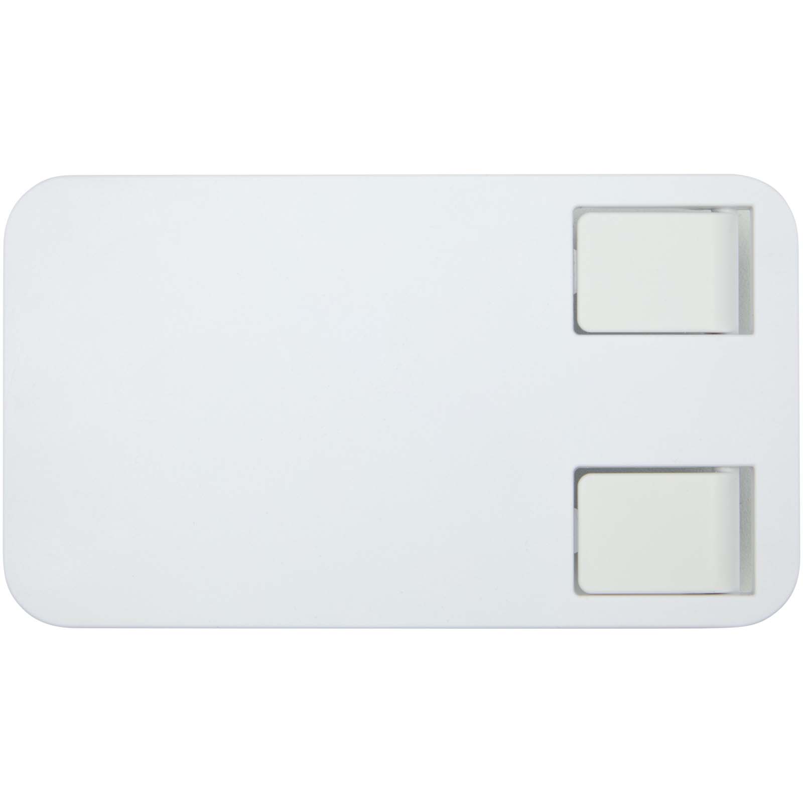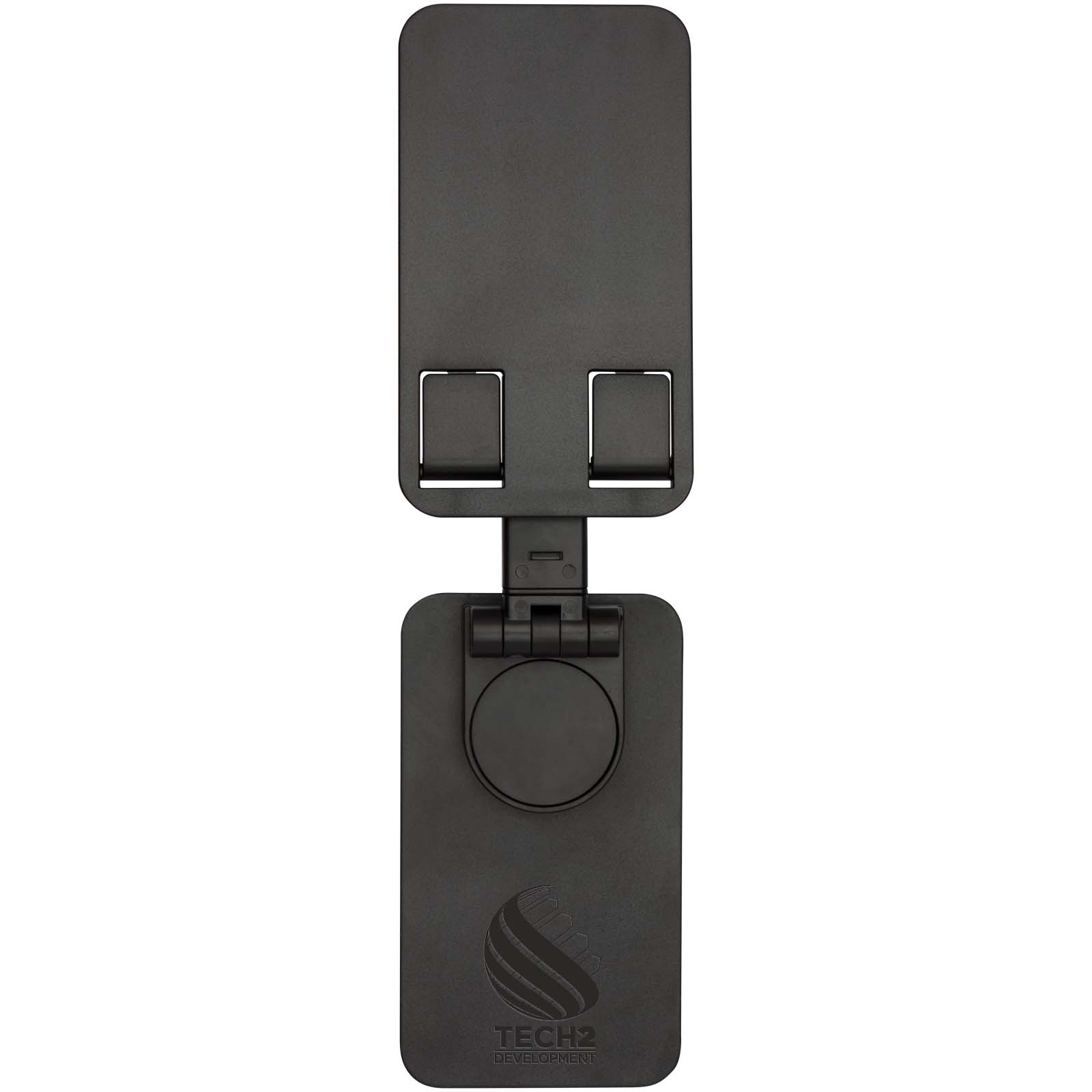Uchwyt na telefon Alhena to akcesorium biurkowe wykonane z tworzyw sztucznych pochodzących z recyklingu, z wytrzymałą metalową podstawą. Uchwyt na telefon można regulować pod różnymi kątami i na różnej wysokości, co zapewnia wygodne i dostosowane do indywidualnych potrzeb oglądanie. Idealny do użytku w pracy i w domu.
