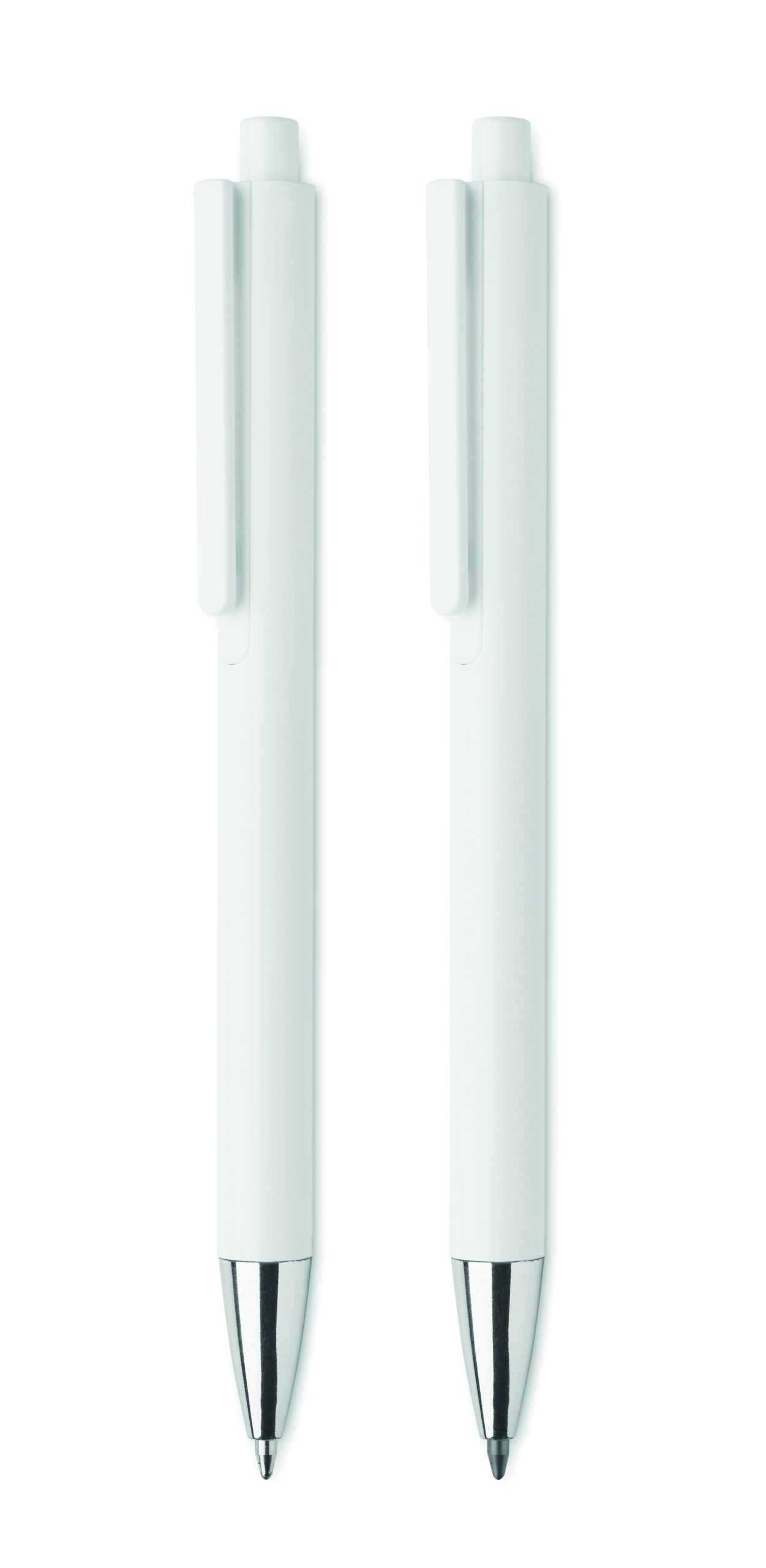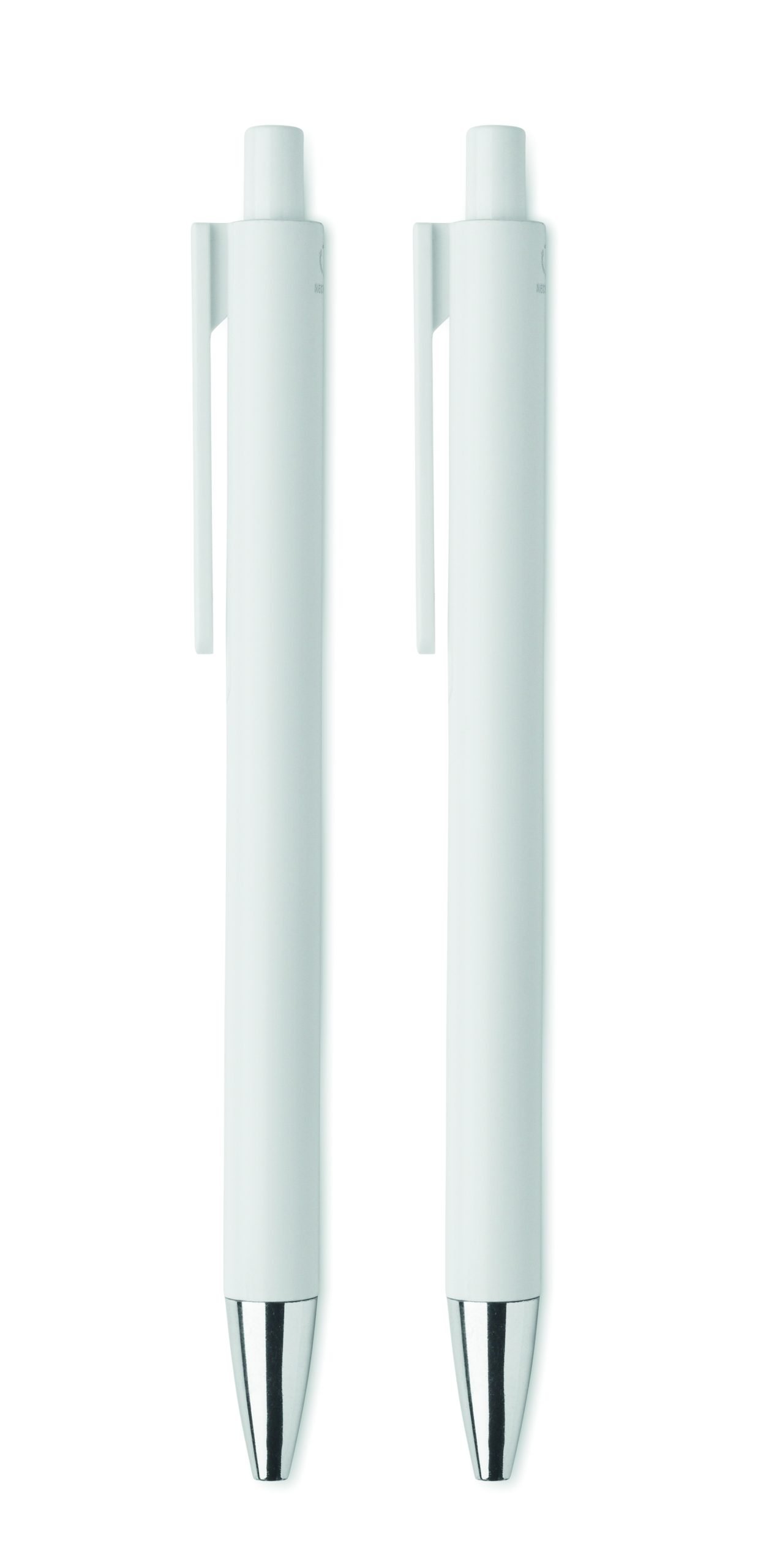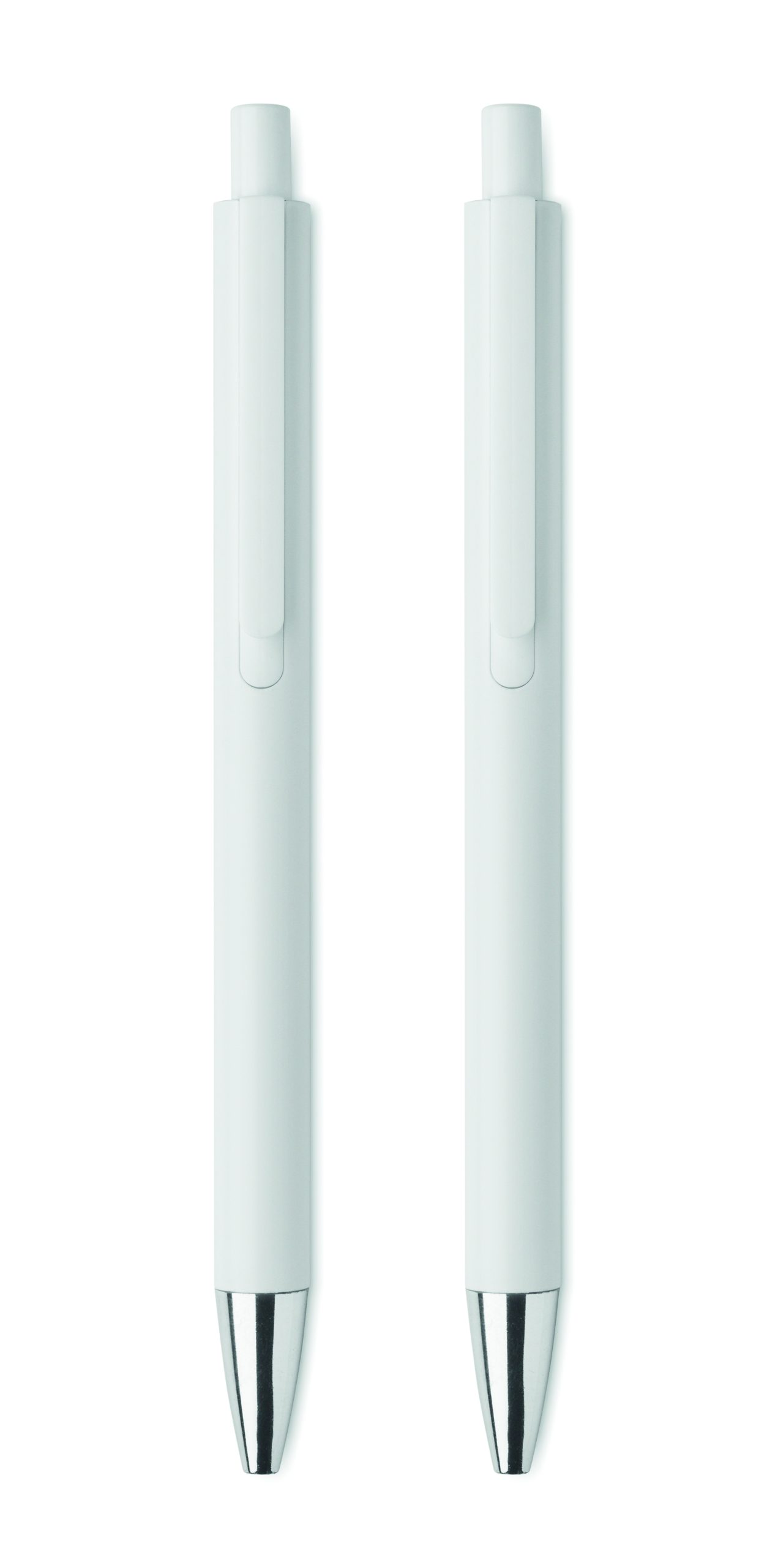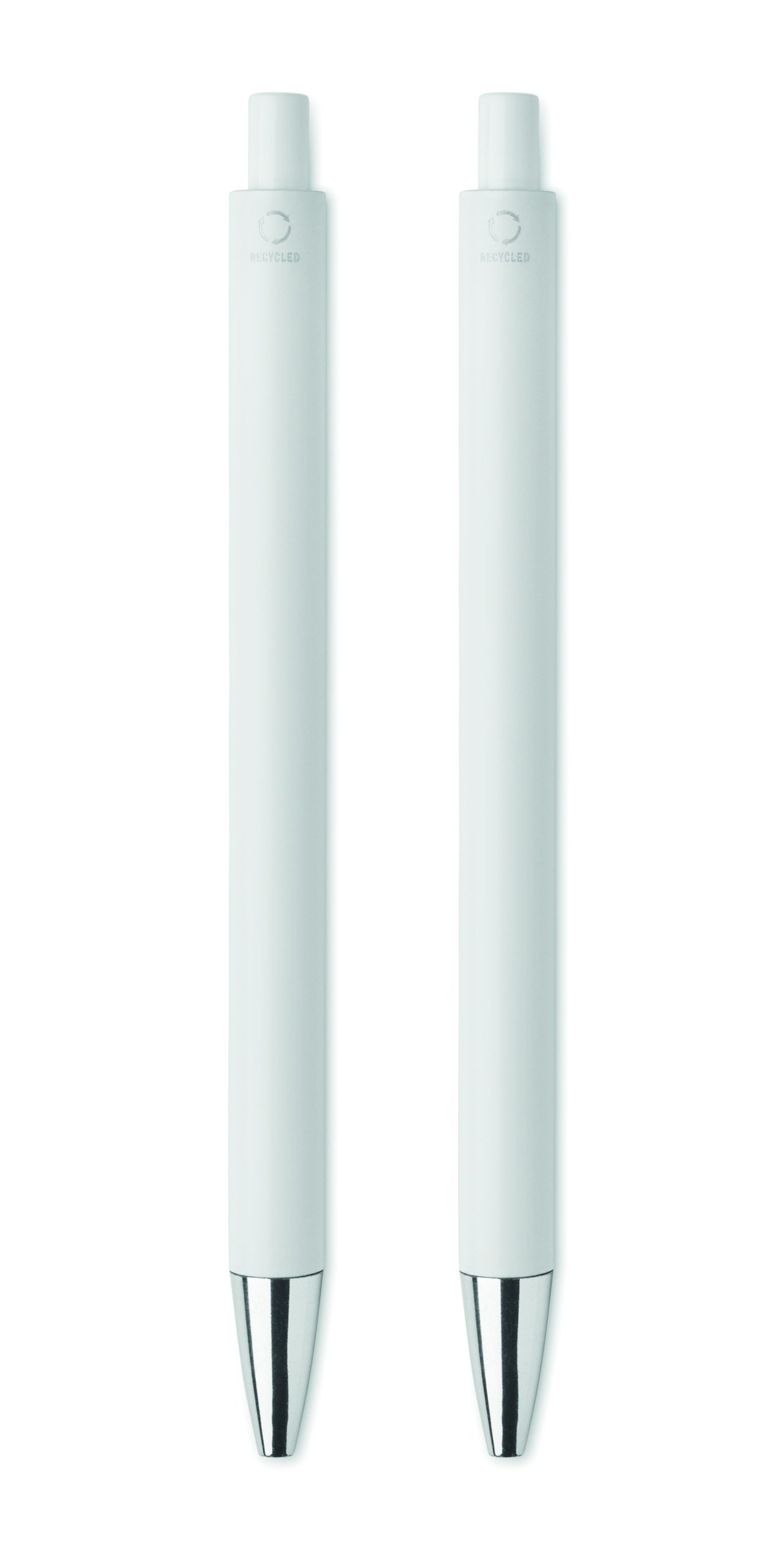 Zestaw długopisów z recyklingowanego aluminium z 1 długopisem i 1 grafitowym ołówkiem wiecznym. Niebieski tusz długopisu. Prezentowany w pudełku z papieru z recyklingu.