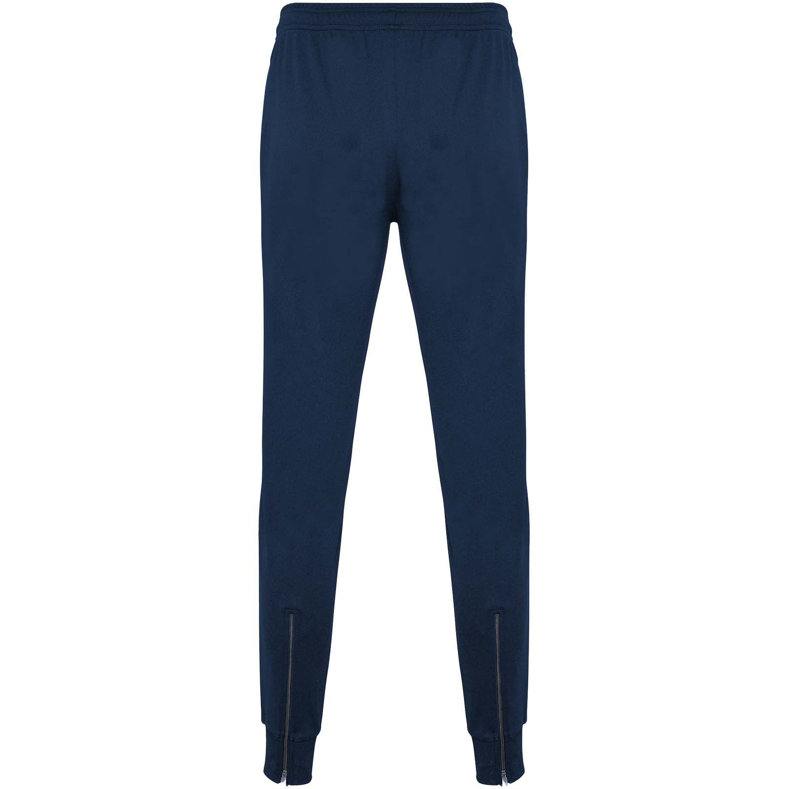 Spodnie z regulowanym elastycznym pasem i wewnętrznym ściągaczem. Boczne kieszenie. Ściągacze i zamek błyskawiczny na dole nogawki. Usuwalna etykieta.