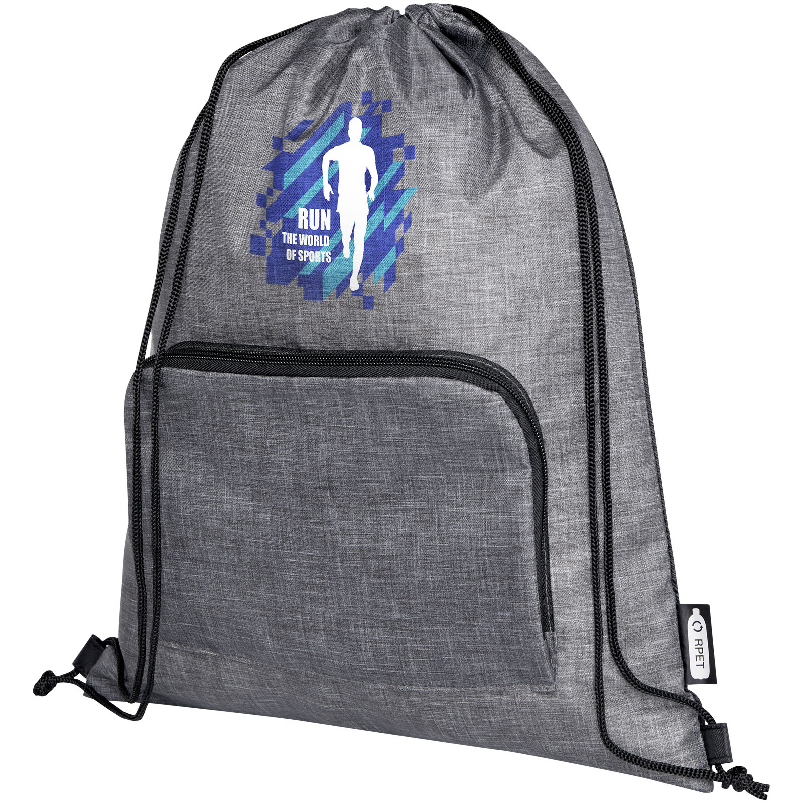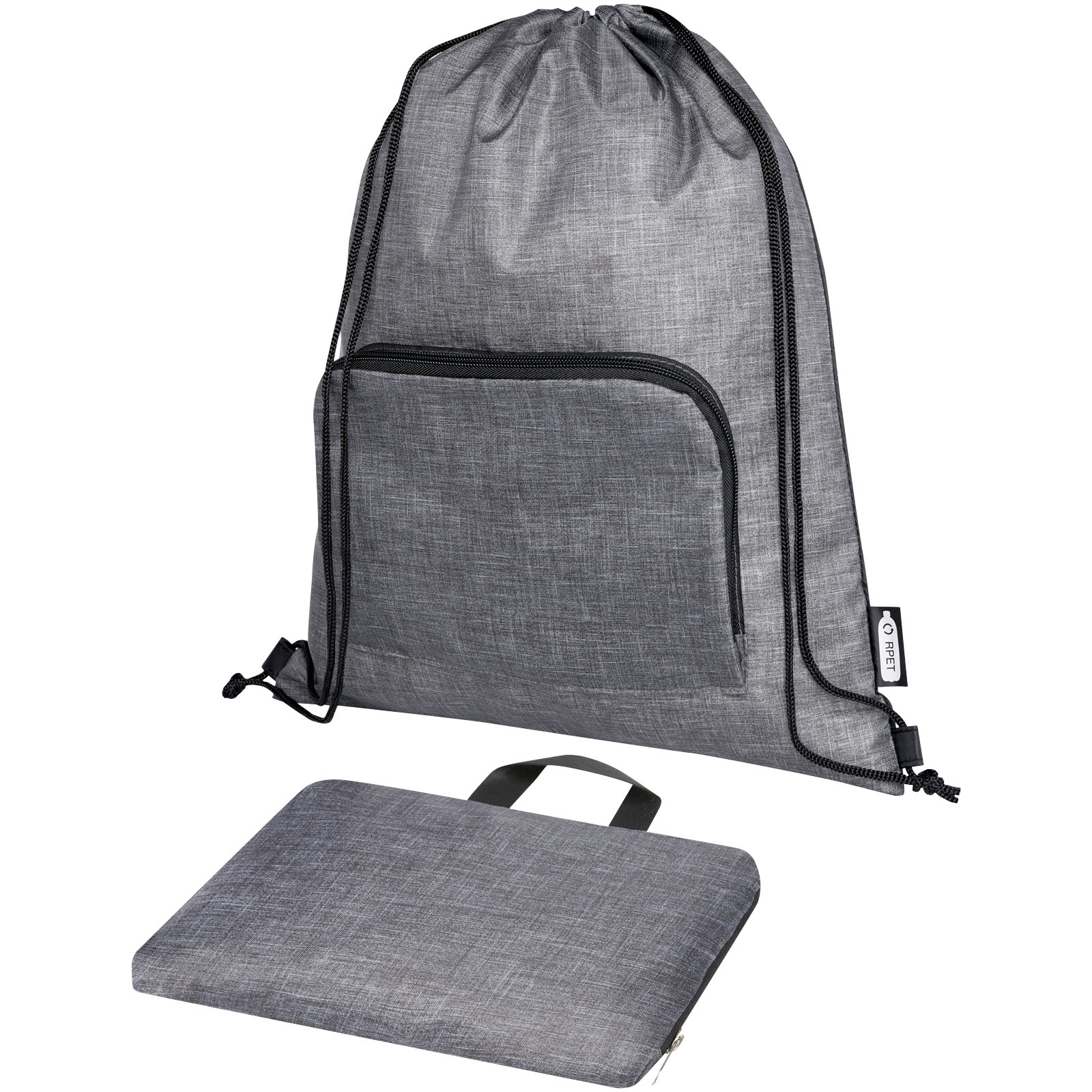 Składana, ściągana sznurkiem torba Ash z materiału z recyklingu z certyfikatem GRS ma główną przegrodę z zapięciem na sznurek i przednią kieszeń zapinaną na zamek błyskawiczny, dzięki czemu torbę tę można łatwo złożyć, aby ułatwić transport i przechowywanie.