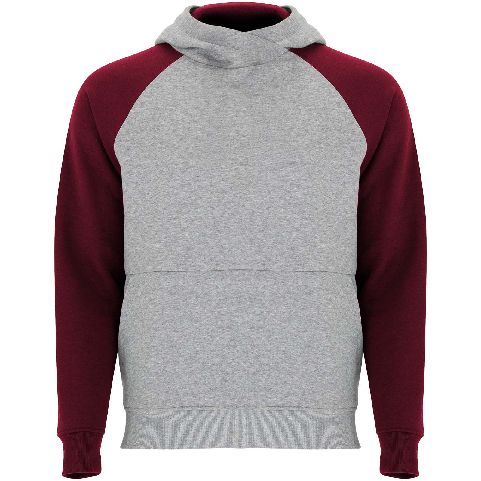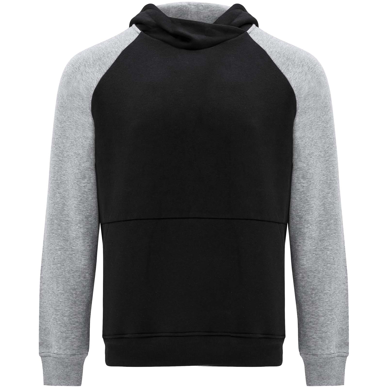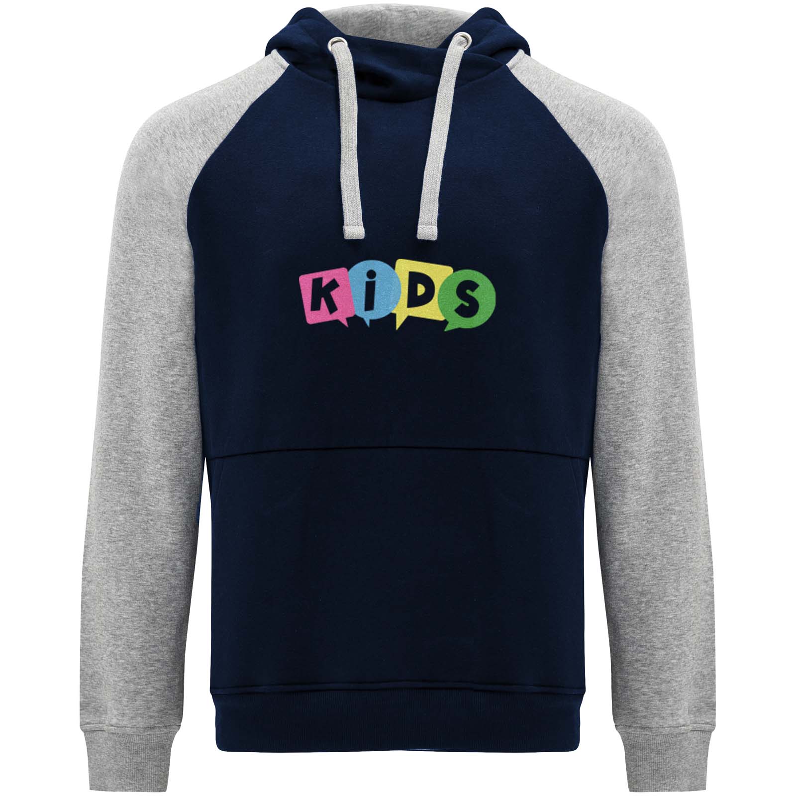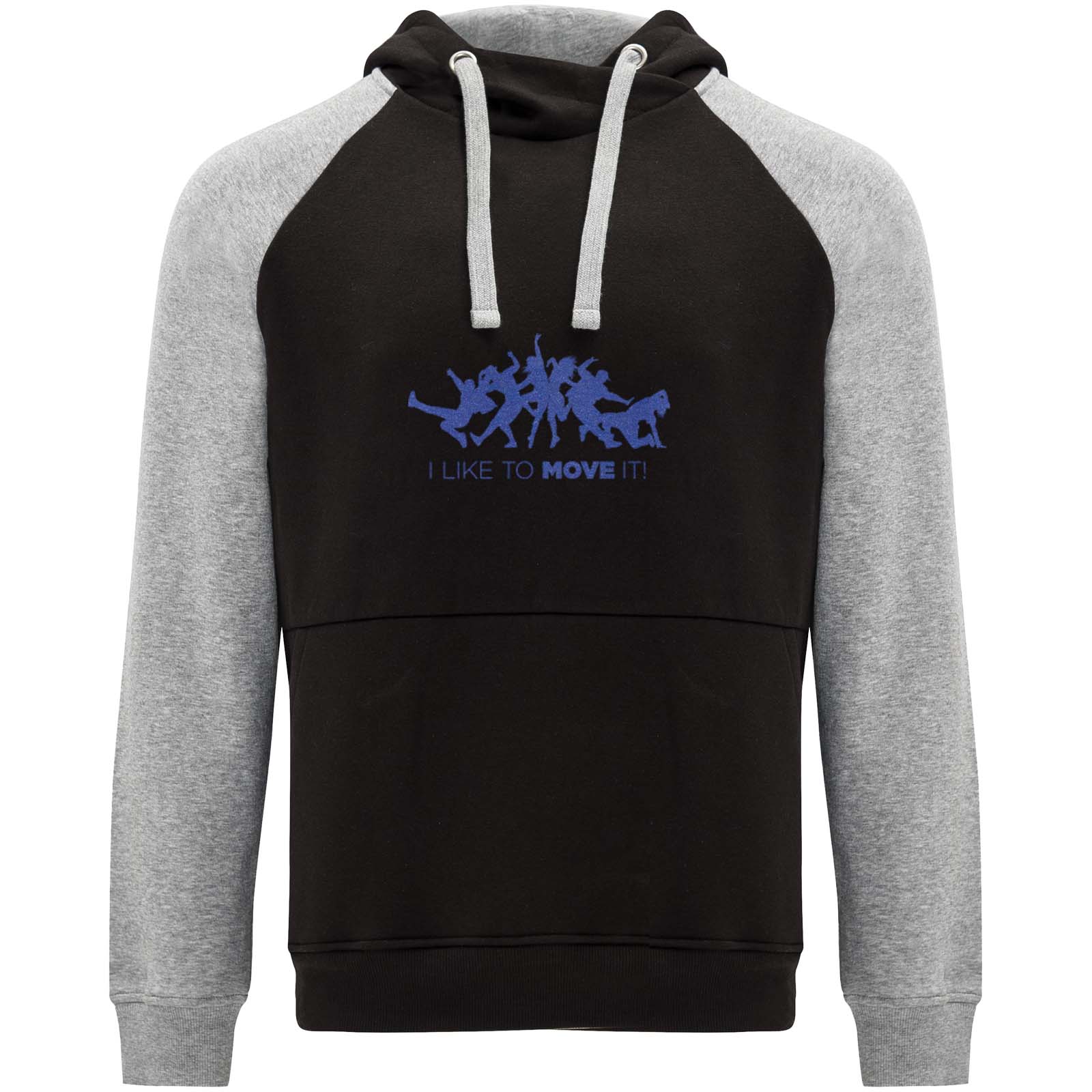 Dwukolorowa bluza z kapturem unisex. Kaptur ze skrzyżowanym dekoltem i metalowymi oczkami. Kontrastowy kaptur wewnętrzny, ściągacz i raglanowe rękawy. Kieszeń kangurka. Mankiety i dół wykonane z elastanowej dzianiny ściągaczowej 1×1. Usuwalna etykieta.