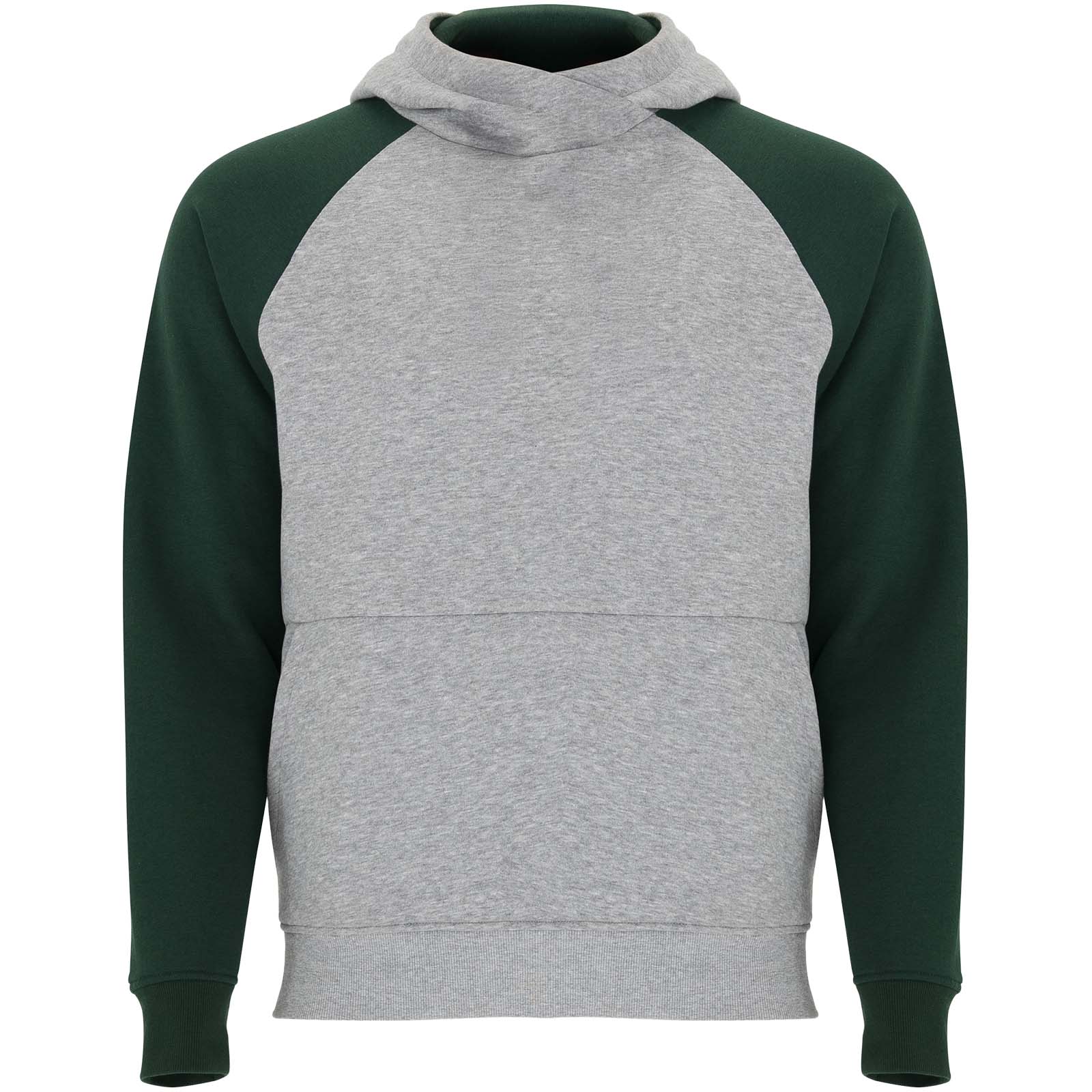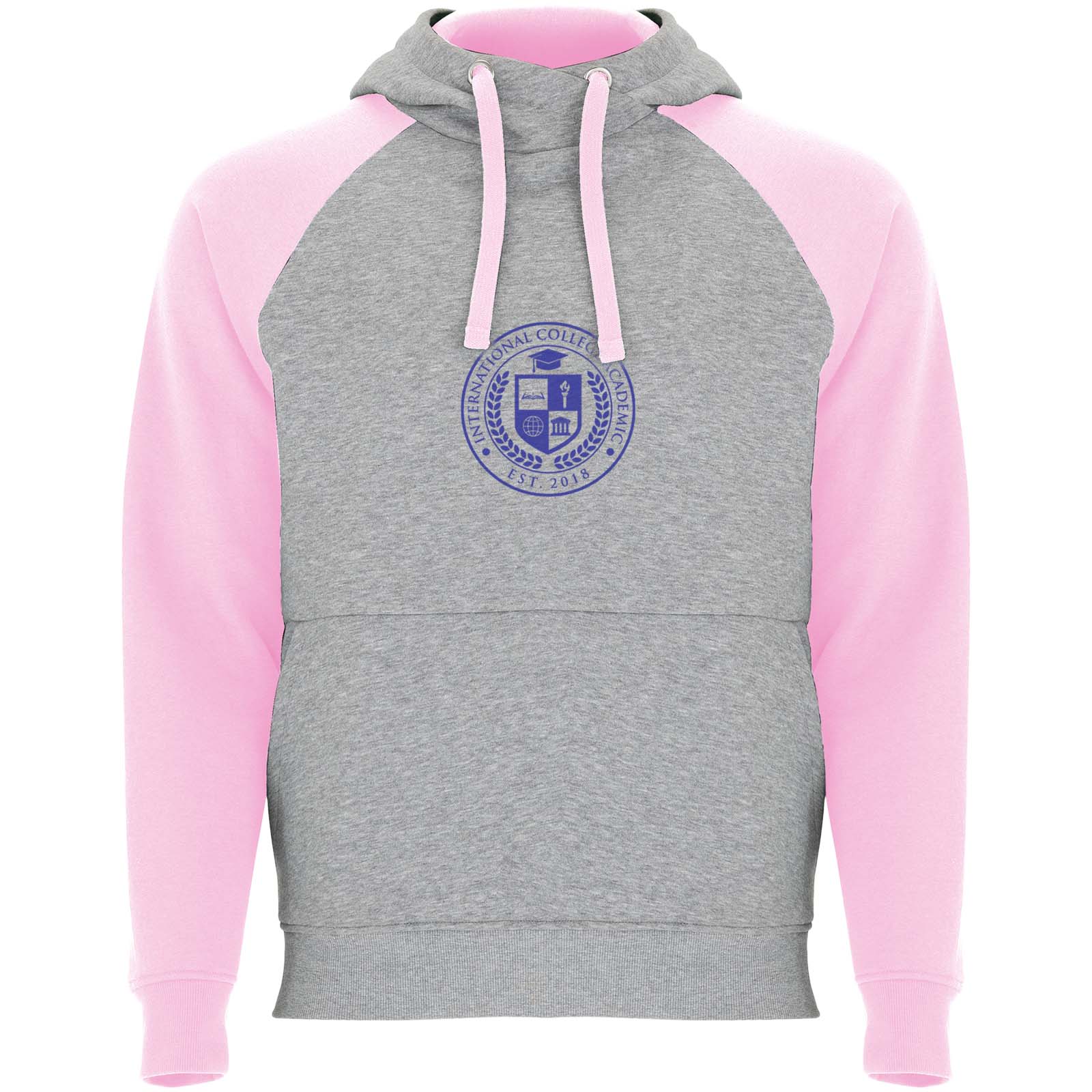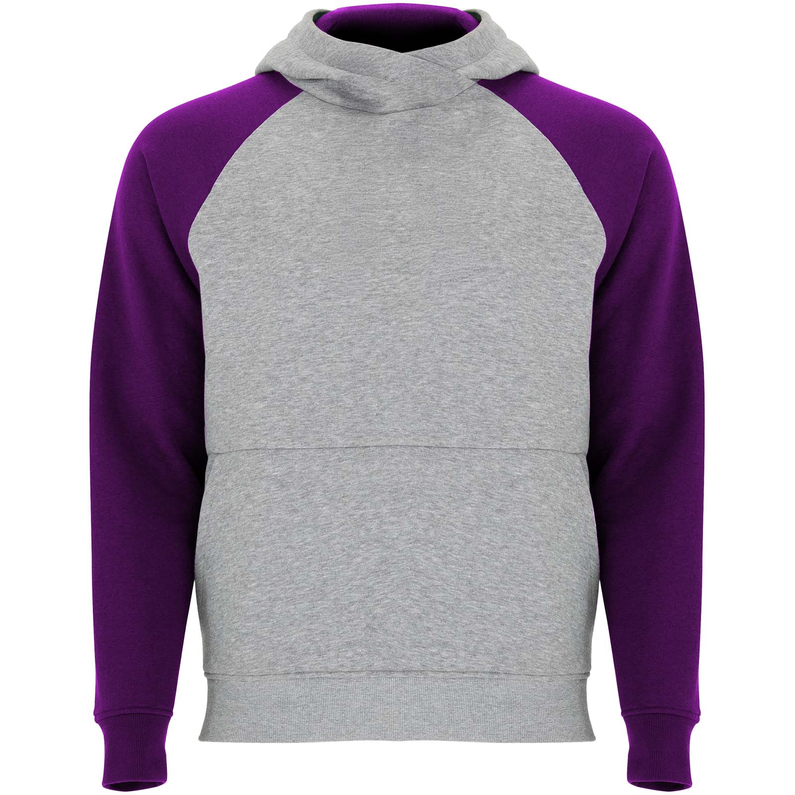 Dwukolorowa bluza z kapturem unisex. Kaptur ze skrzyżowanym dekoltem i metalowymi oczkami. Kontrastowy kaptur wewnętrzny, ściągacz i raglanowe rękawy. Kieszeń kangurka. Mankiety i dół wykonane z elastanowej dzianiny ściągaczowej 1×1. Usuwalna etykieta.
