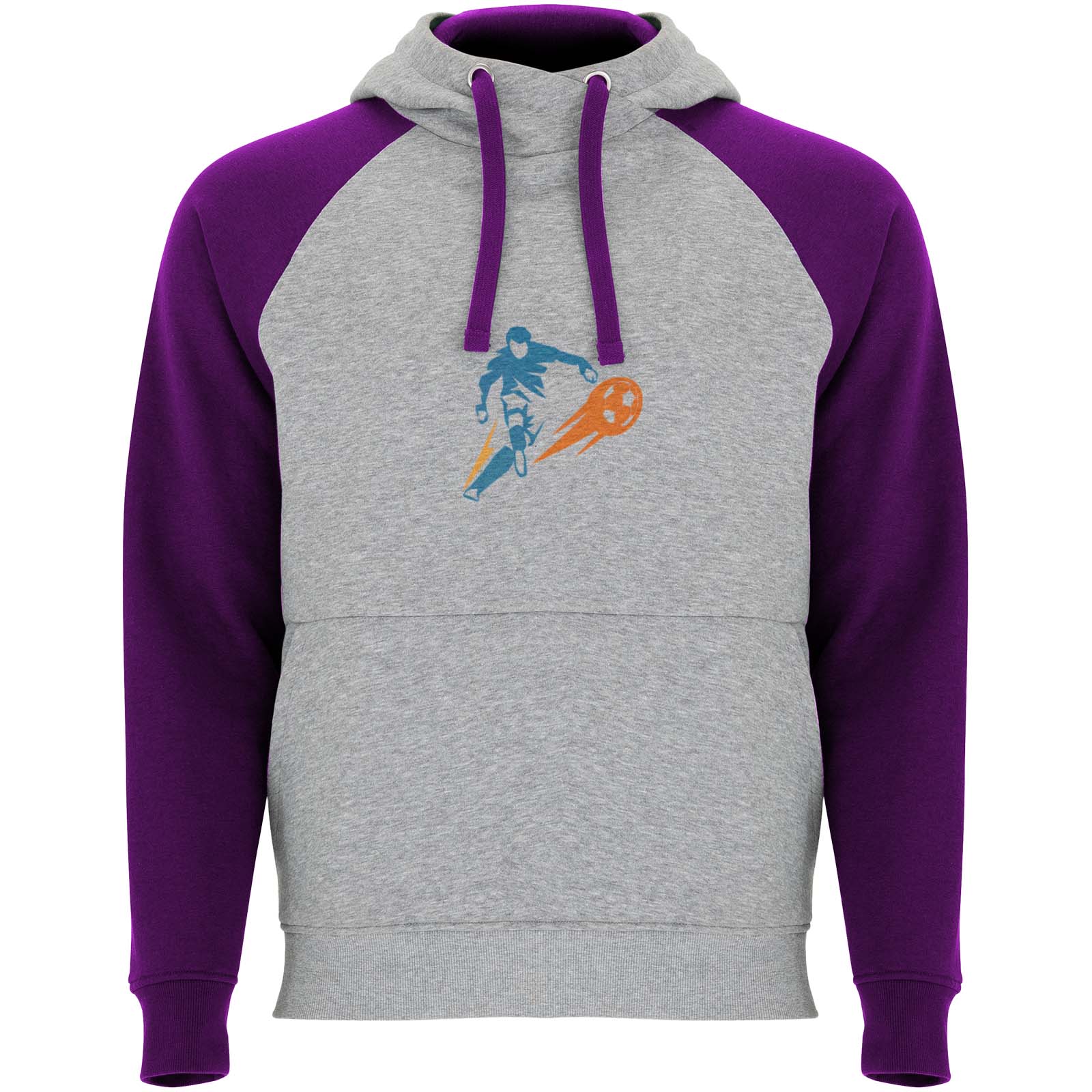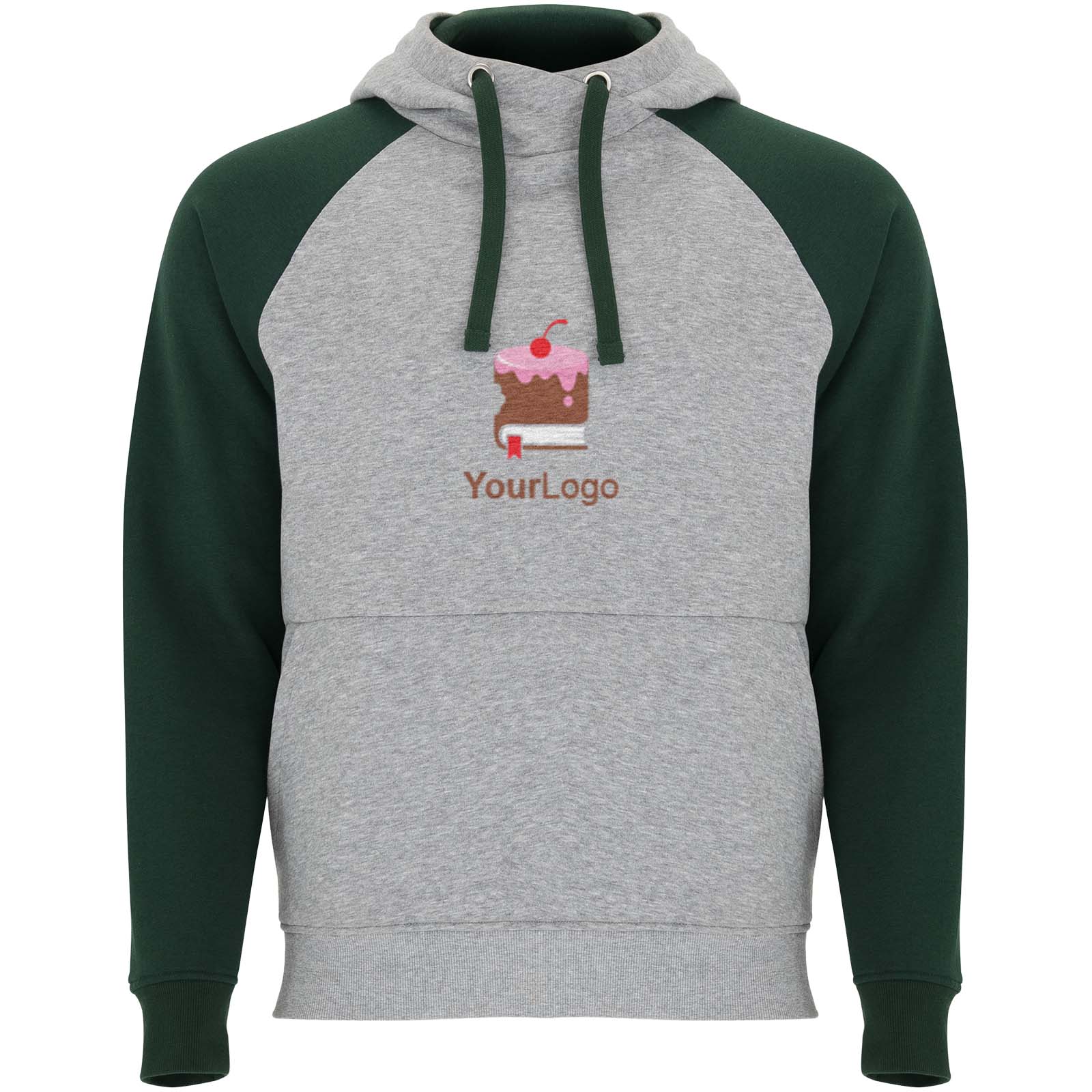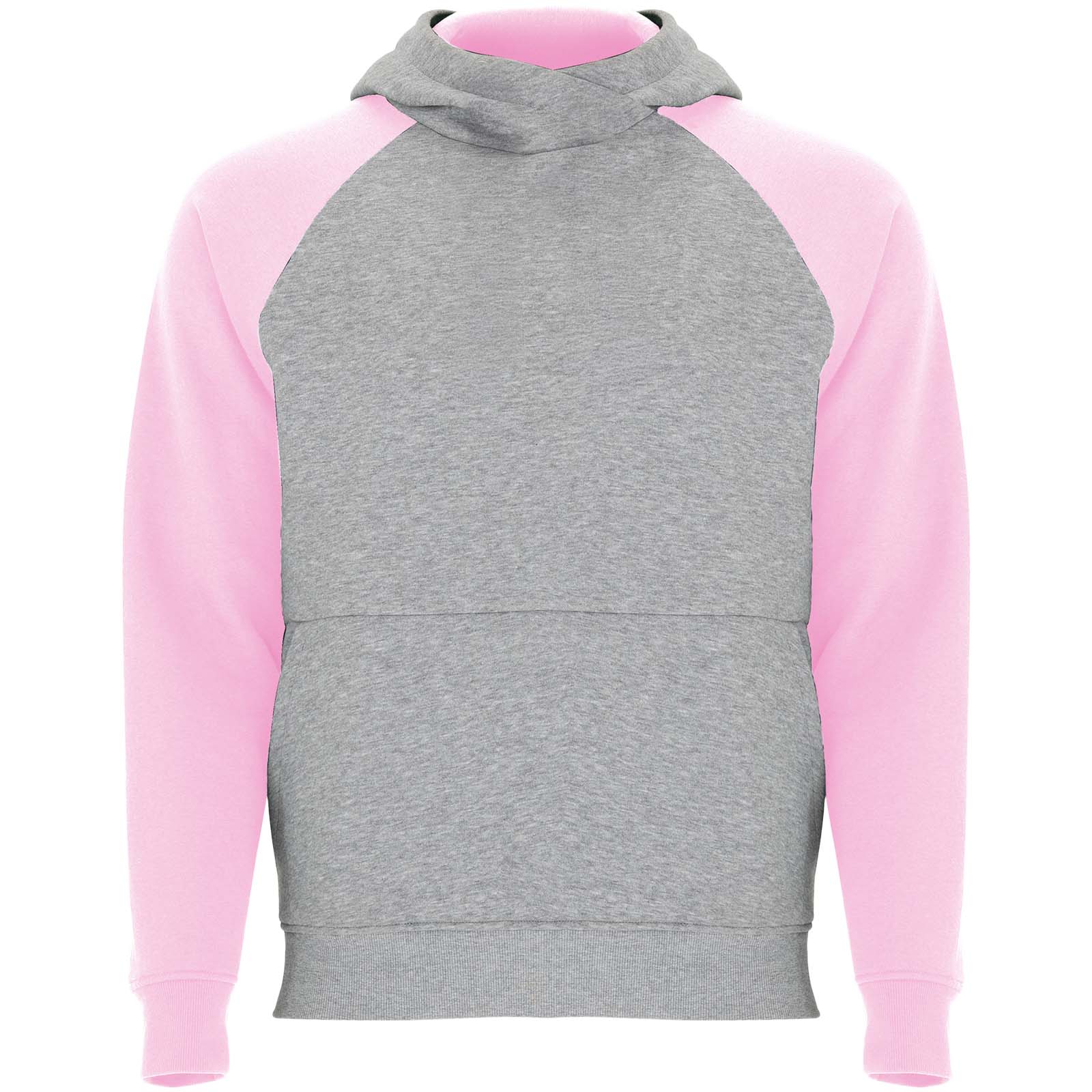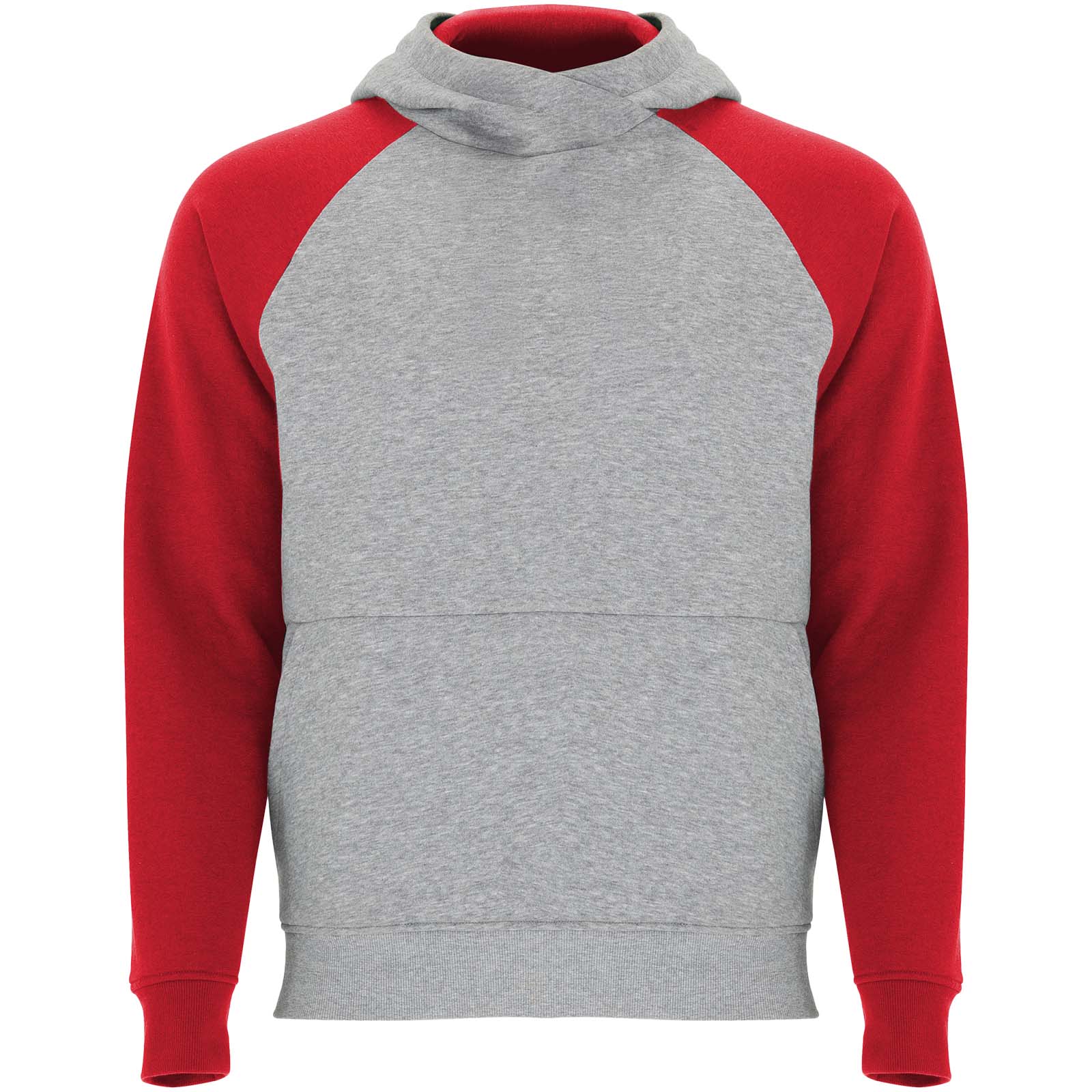 Dwukolorowa bluza z kapturem unisex. Kaptur ze skrzyżowanym dekoltem i metalowymi oczkami. Kontrastowy kaptur wewnętrzny, ściągacz i raglanowe rękawy. Kieszeń kangurka. Mankiety i dół wykonane z elastanowej dzianiny ściągaczowej 1×1. Usuwalna etykieta.