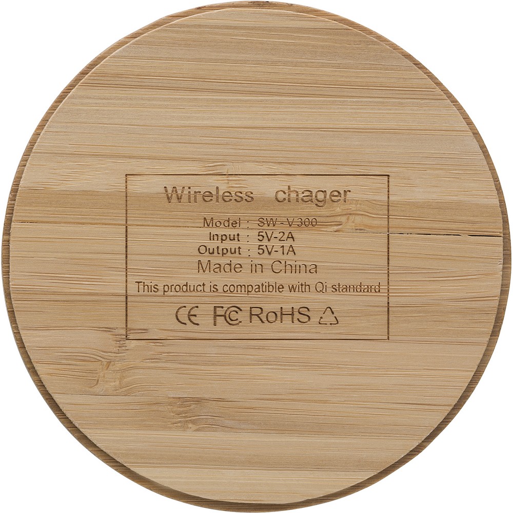 Bambusowa ładowarka bezprzewodowa, wejście: 9V-2A, wyjście: 15W, ze wskaźnikami LED i portem micro USB, kabel w zestawie