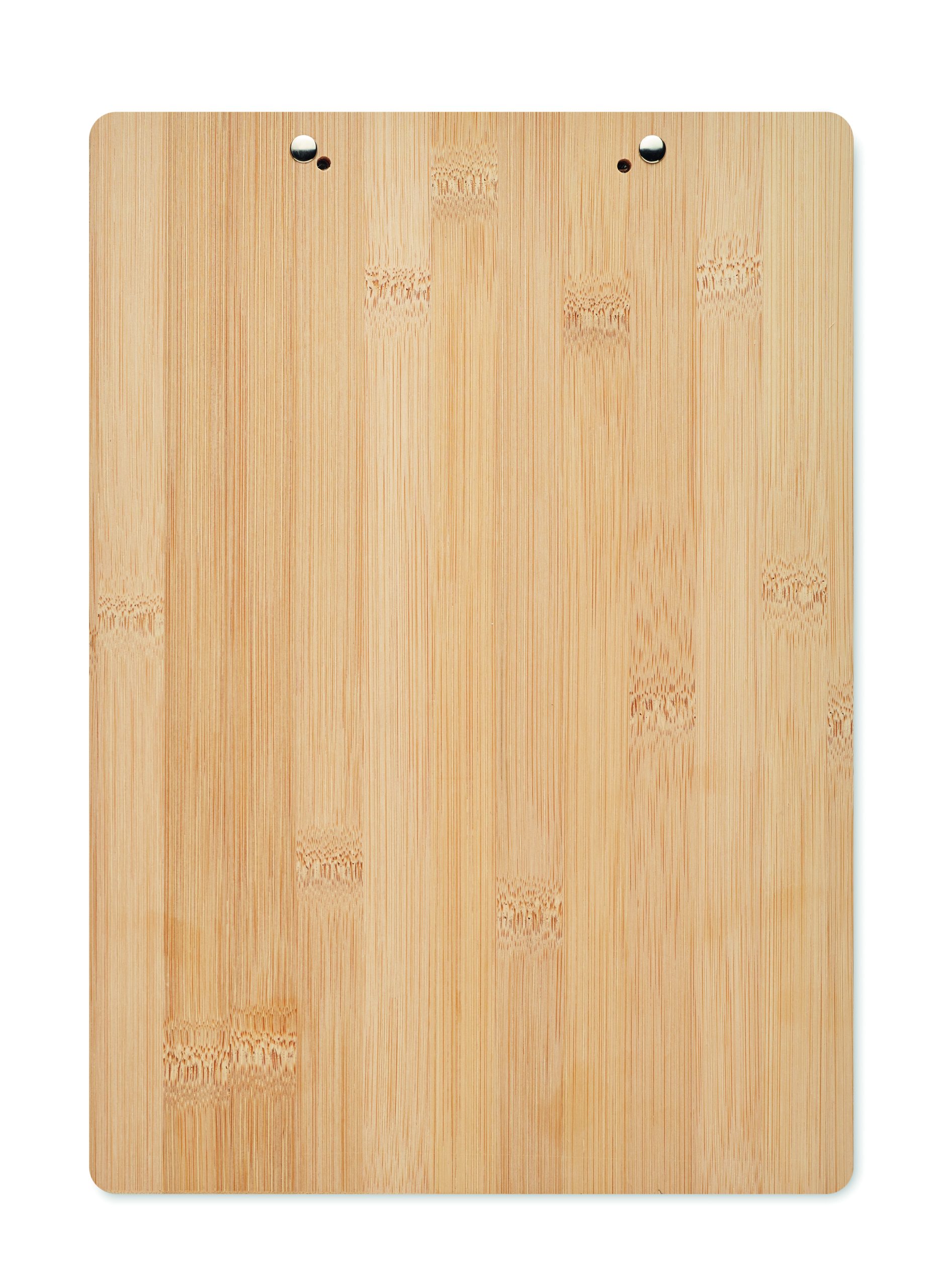Bambusowa podkładka na dokumenty A4. Ten przydatny, biurowy niezbędnik pozwoli Ci uporządkować wszystkie dokumenty. Bambusowy materiał nadaje naturalny wygląd i czyni podkładkę znacznie lepszą alternatywą dla zwykłych plastikowych. Bambus jest produktem naturalnym, mogą występować niewielkie różnice w kolorze i rozmiarze poszczególnych elementów, co może mieć wpływ na końcowy efekt dekoracji. FSC®-certified | FSC 100%, N5.7, FSC-C213206