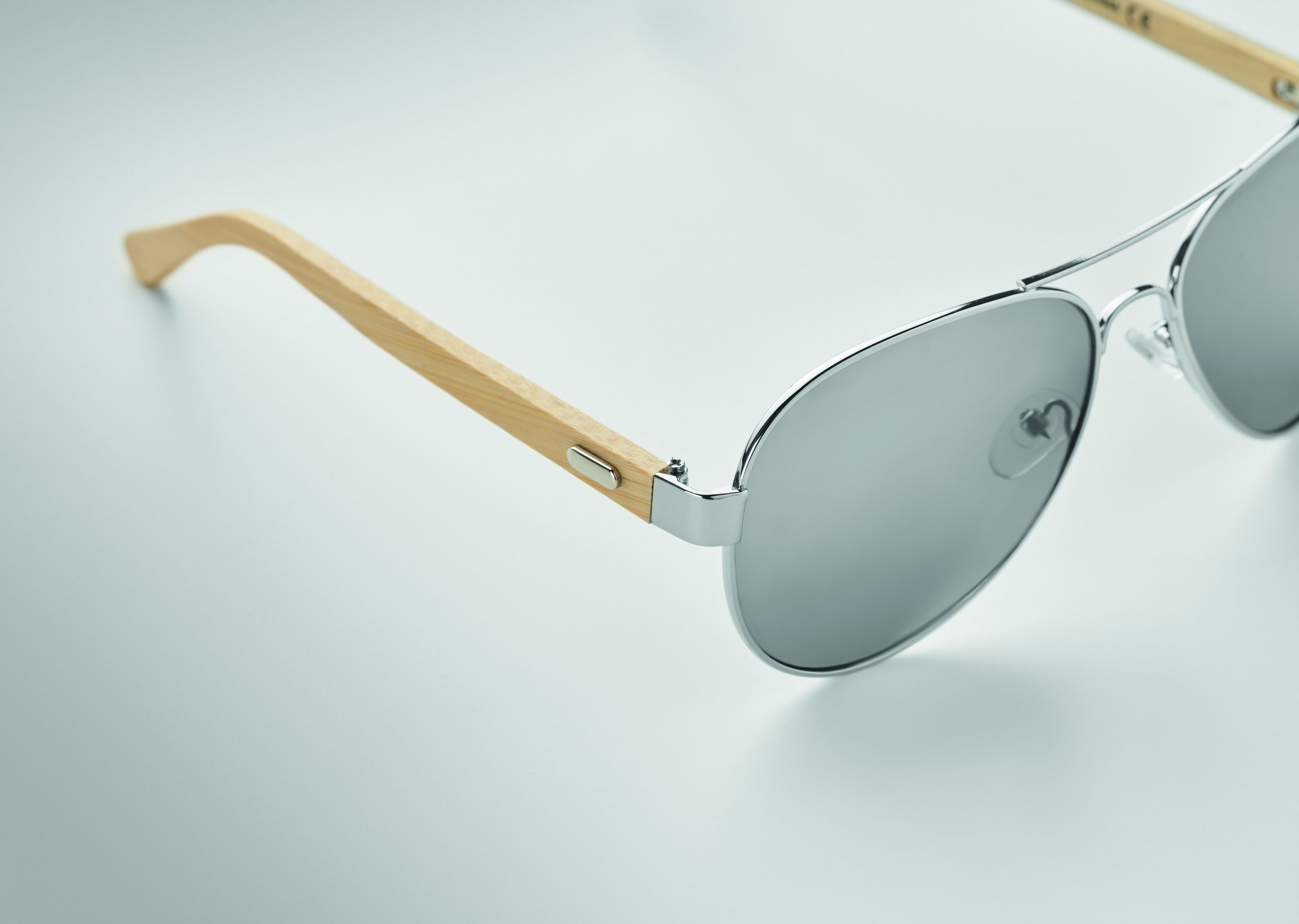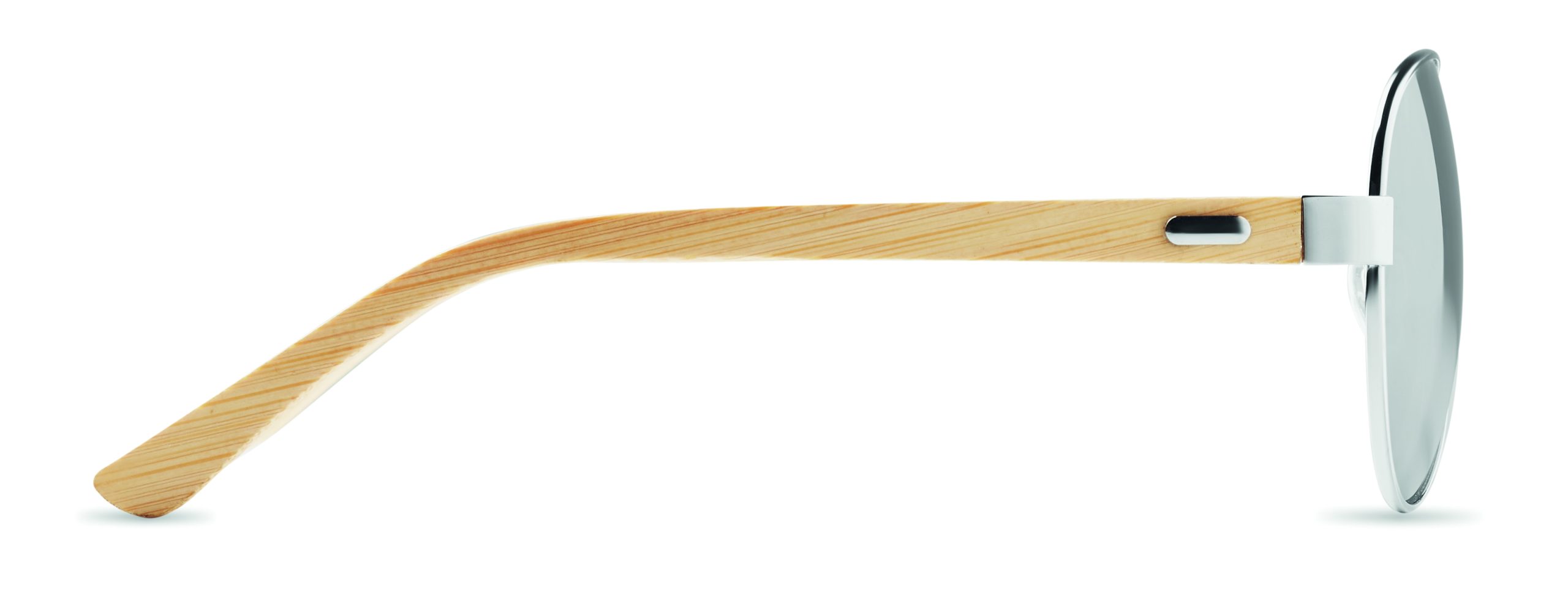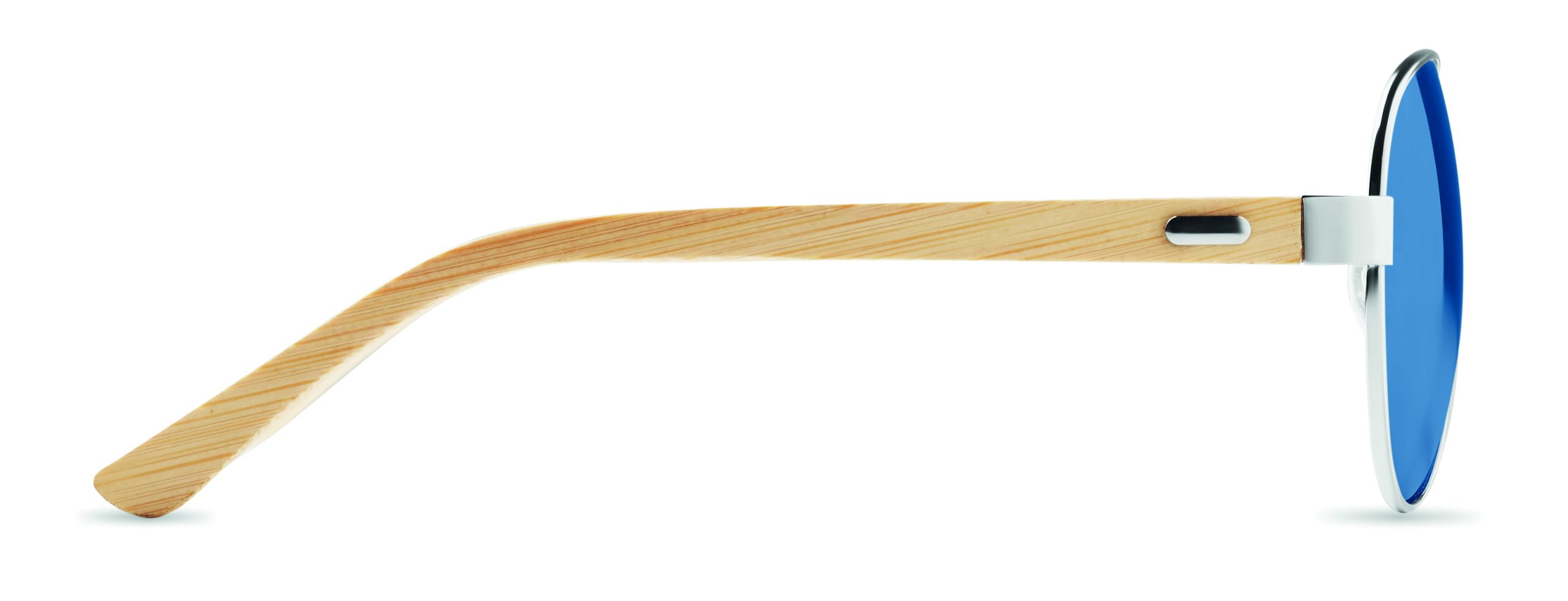 Okulary przeciwsłoneczne z bambusowymi zausznikami i kolorowymi lustrzanymi soczewkami w etui z mikrofibry. Ochrona UV400. Bambus jest produktem naturalnym, dlatego mogą wystąpić nieznaczne różnice w kolorze, wzorze i rozmiarze.