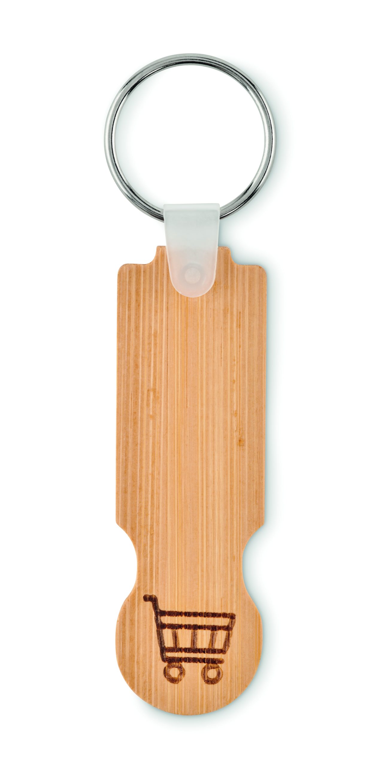 Bambusowy brelok do kluczy z żetonem euro. Bambus jest produktem naturalnym, dlatego mogą wystąpić nieznaczne różnice w kolorze, wzorze i rozmiarze.