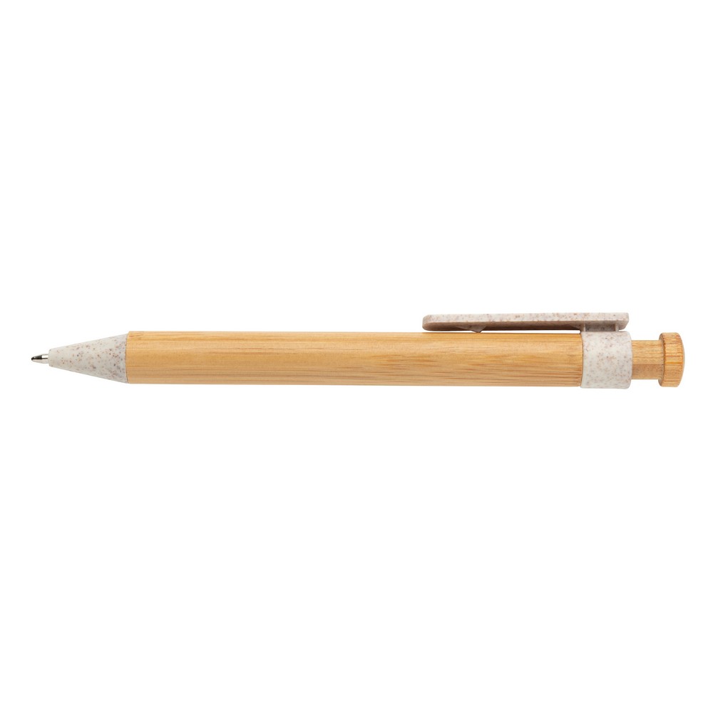 Długopis, bambusowy trzon, klip wykonany z mieszanki 40% słomy pszenicznej i 60% ABS, ślad węglowy produktu: 0,04 kg CO2