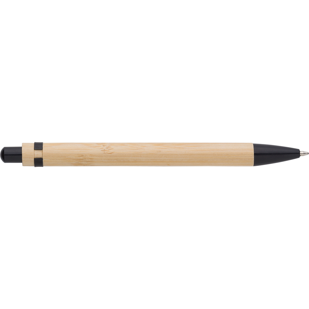 Długopis z trzonem wykonanym z bambusa, metalowe elementy, wkład w niebieskim kolorze, produkt wykonany z bambusa i metalu