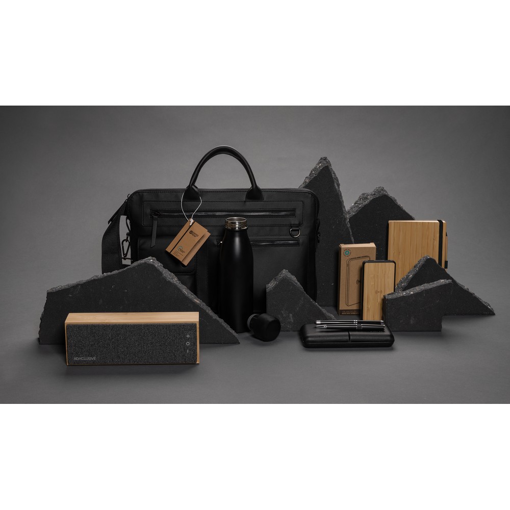 Głośnik bezprzewodowy 20W, BT 5.1, wykonany z naturalnego bambusa z certyfikatem FSC®, plastikowe elementy wykonane z ABS z recyklingu z certyfikatem RCS, zawartość materiału z recyklingu 17% obliczona na podstawie wagi całkowitej produktu, czysty dźwięk i mocny bas, funkcja odbierania połączeń, wbudowany mikrofon, wbudowany akumulator o pojemności 1200 mAh umożliwia odtwarzanie muzyki do 6 godzin, ponowne ładowanie w 3 godziny, kabel z TPE z recyklingu w komplecie, w kraftowym pudełku z certyfikatem FSC® mix, nie zawiera PVC, ślad węglowy produktu: 7,44 kg CO2