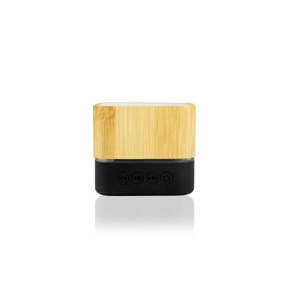 Głośnik bezprzewodowy BT 5.0 3W z bambusową obudową i kolorowym podświetleniem, DC 5V, ładowany przez USB, czytnik kart TF/micro SD, zasięg do 10 m, kabel micro USB w komplecie
