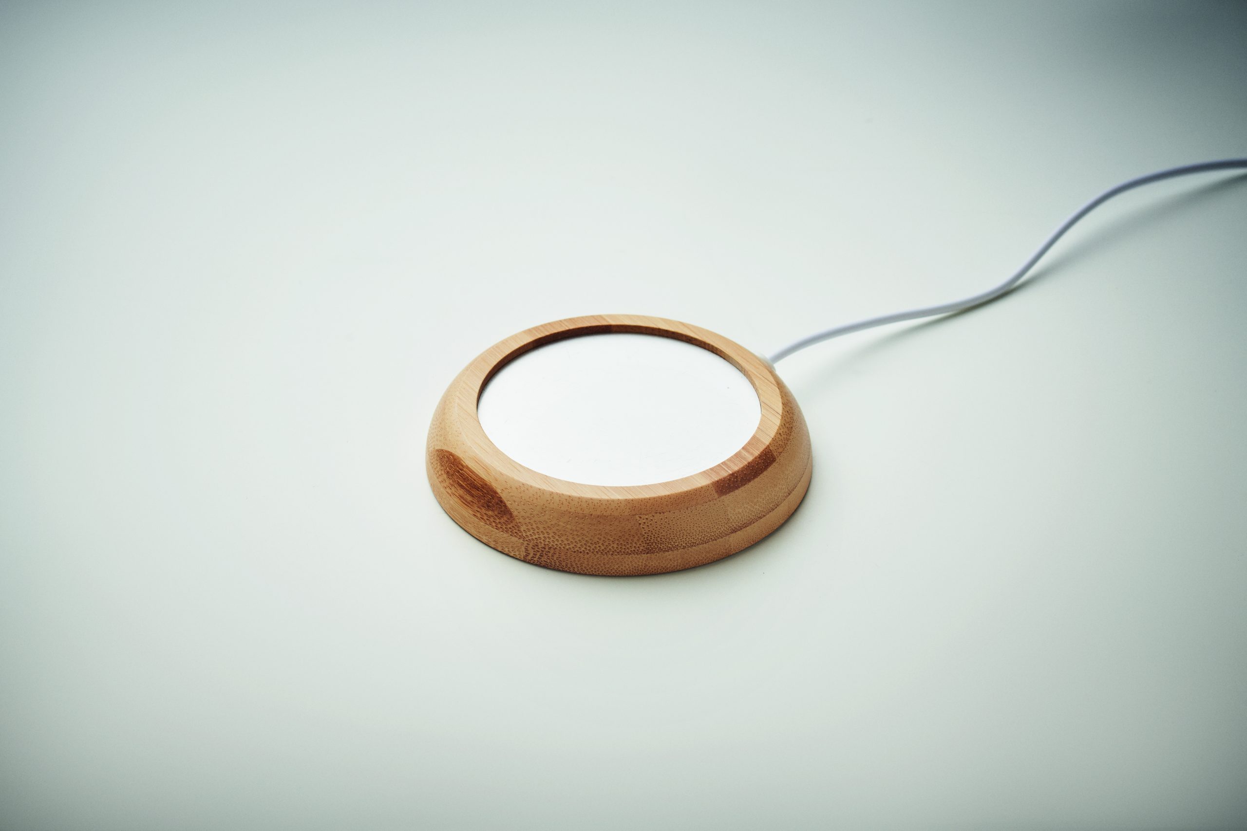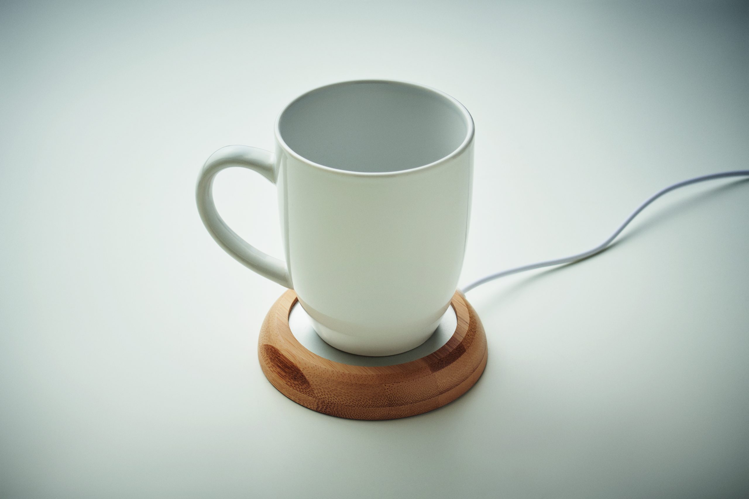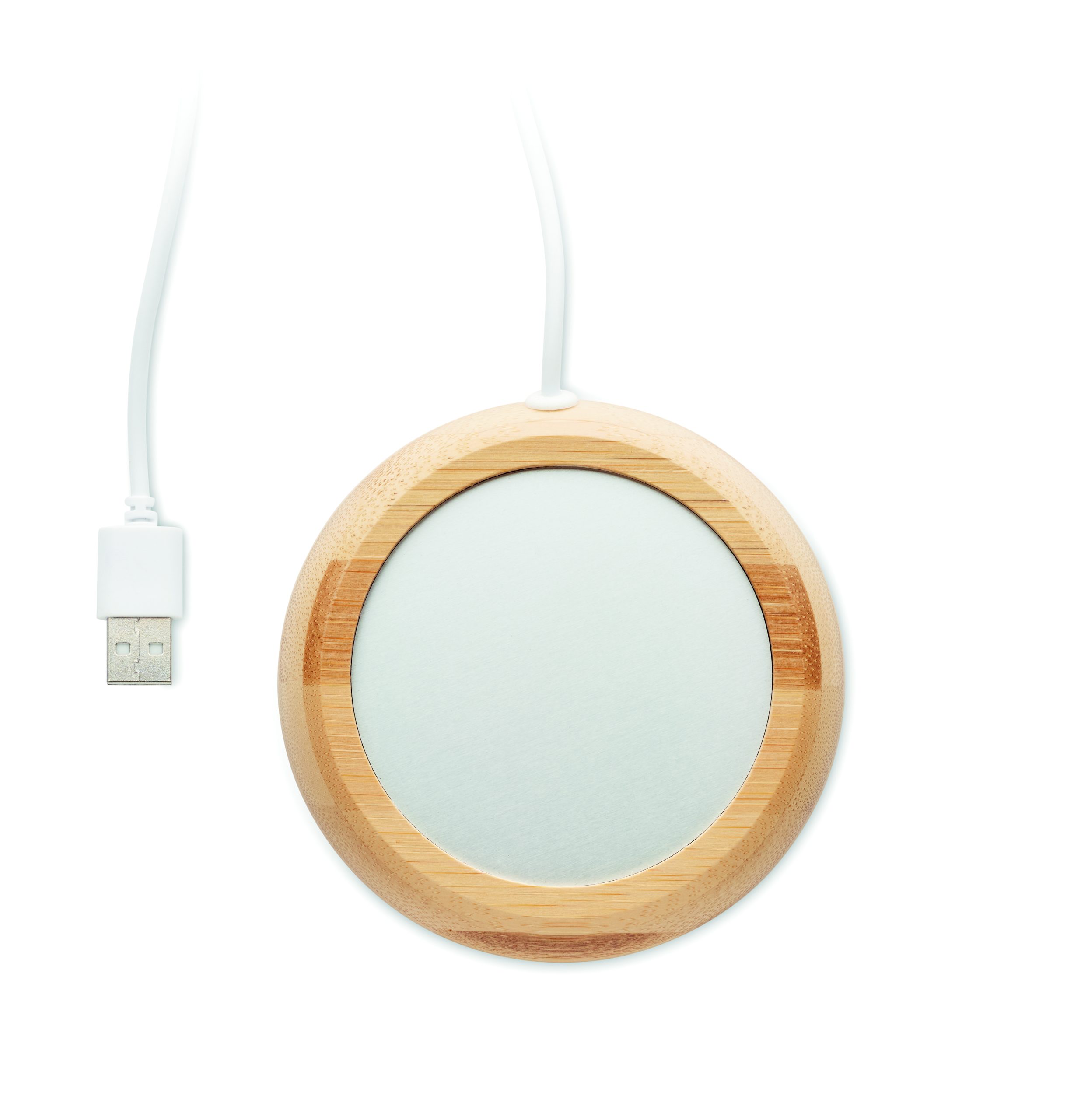 Bambusowy podgrzewacz do kubków. Utrzymuje temperaturę napojów do maksymalnie 45ºC. Posiada kabel połączeniowy USB.