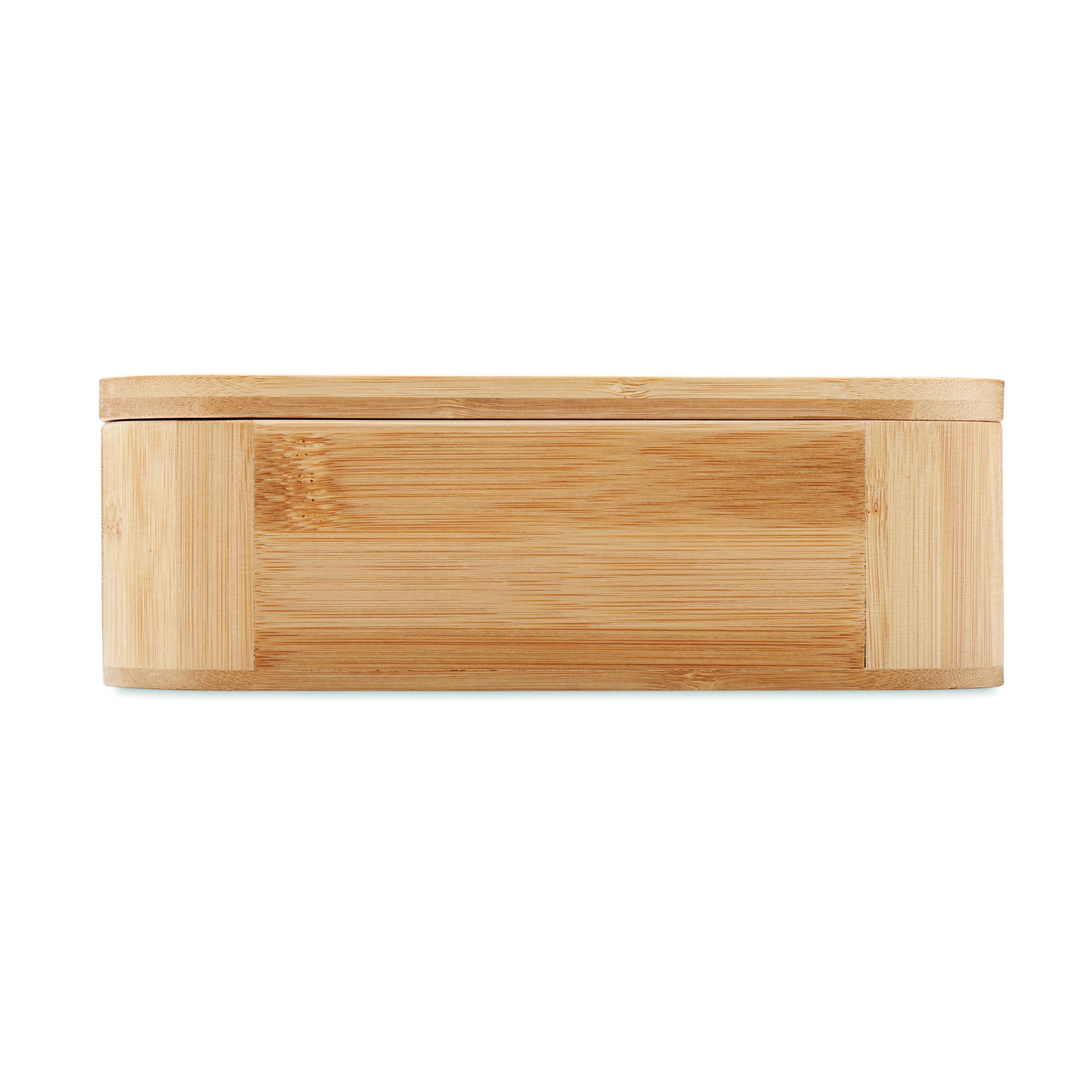 Bambusowy pojemnik na lunch z wyjmowaną przegrodą i elastycznym nylonowym paskiem. Tylko do suchej żywności. Pojemność: 1000ml. Bambus jest produktem naturalnym, dlatego mogą wystąpić nieznaczne różnice w kolorze, wzorze i rozmiarze.