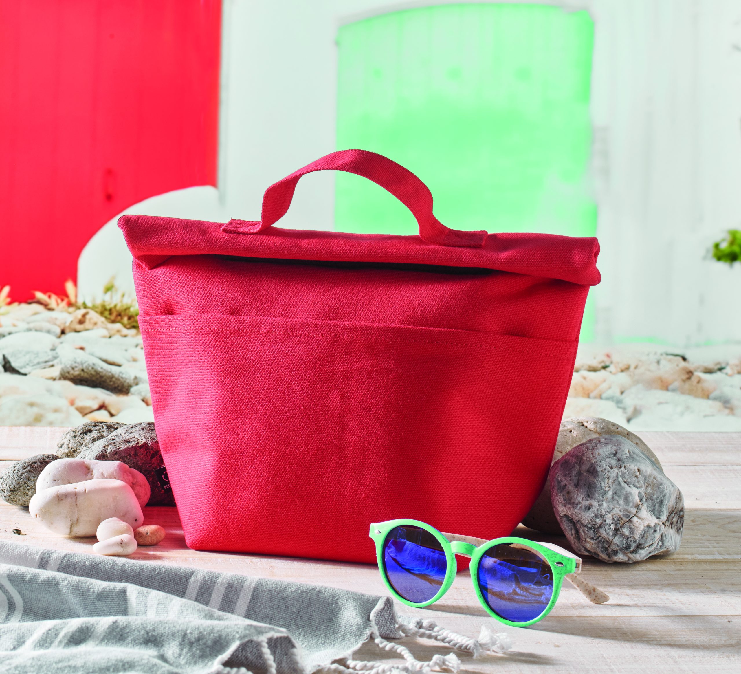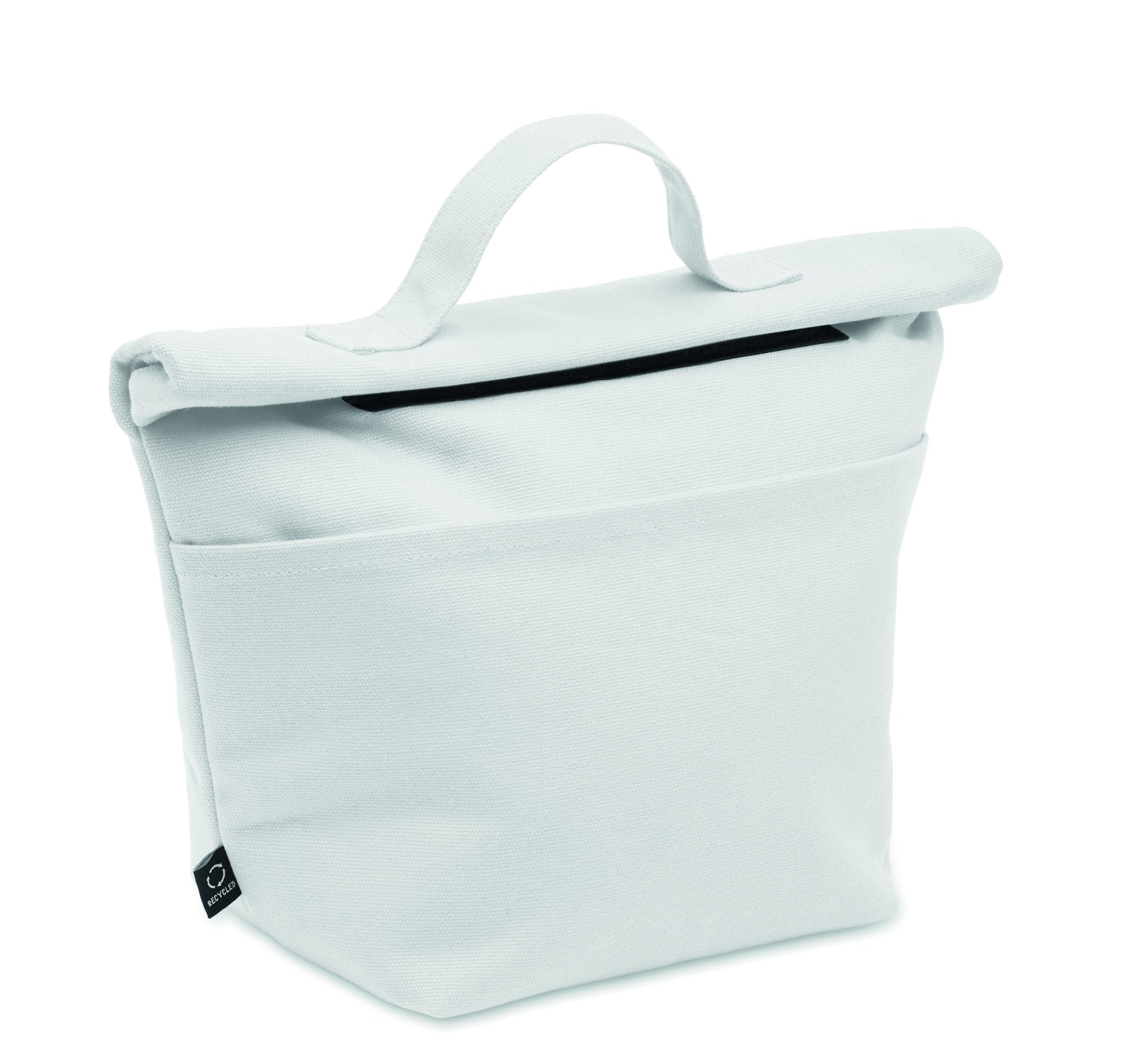 Termiczna torba izolacyjna na lunch z bawełny z recyklingu, z zapięciem na rzep. Izolacja: 3 mm pianka PE z 12C PEVA.