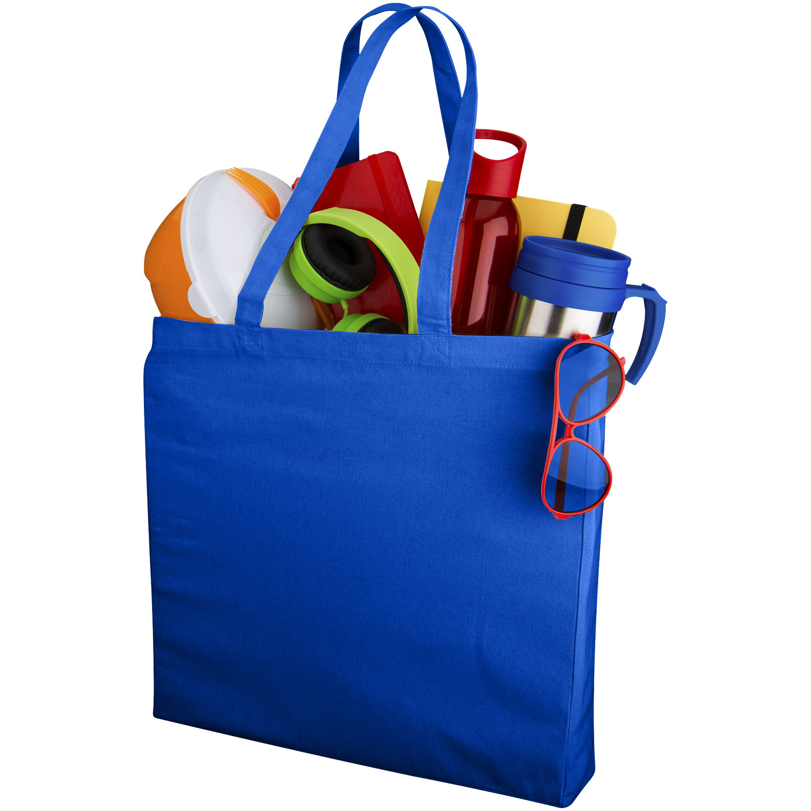 Torba Odessa nadaje się na wiele okazji, np. na zakupy spożywcze lub do noszenia ciężkich przedmiotów, takich jak katalogi, w dużej komorze głównej. Dzięki bawełnie o gramaturze 220 g/m² i klinowi, torba ta jest trwała i nadaje się do noszenia wielu kilogramów. Dzięki uchwytom na ramię o długości 30 cm torba jest łatwa do przenoszenia. Duże powierzchnie nadruku zapewniają wystarczająco dużo miejsca na umieszczenie logo lub innych informacji.