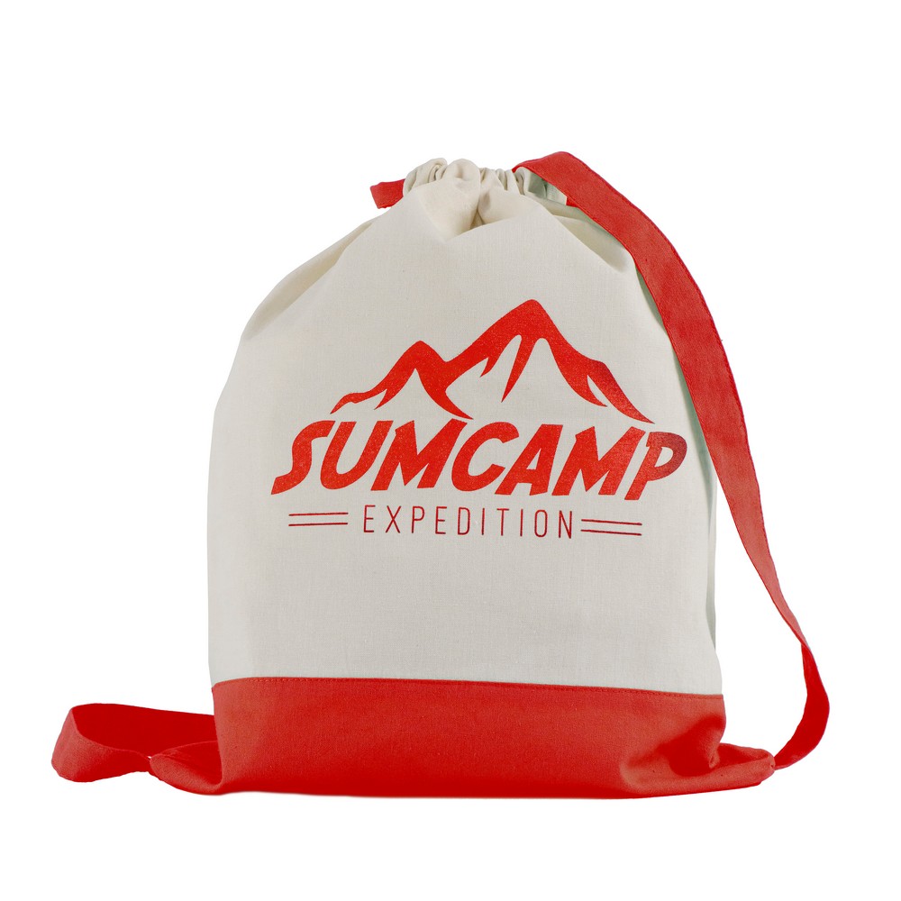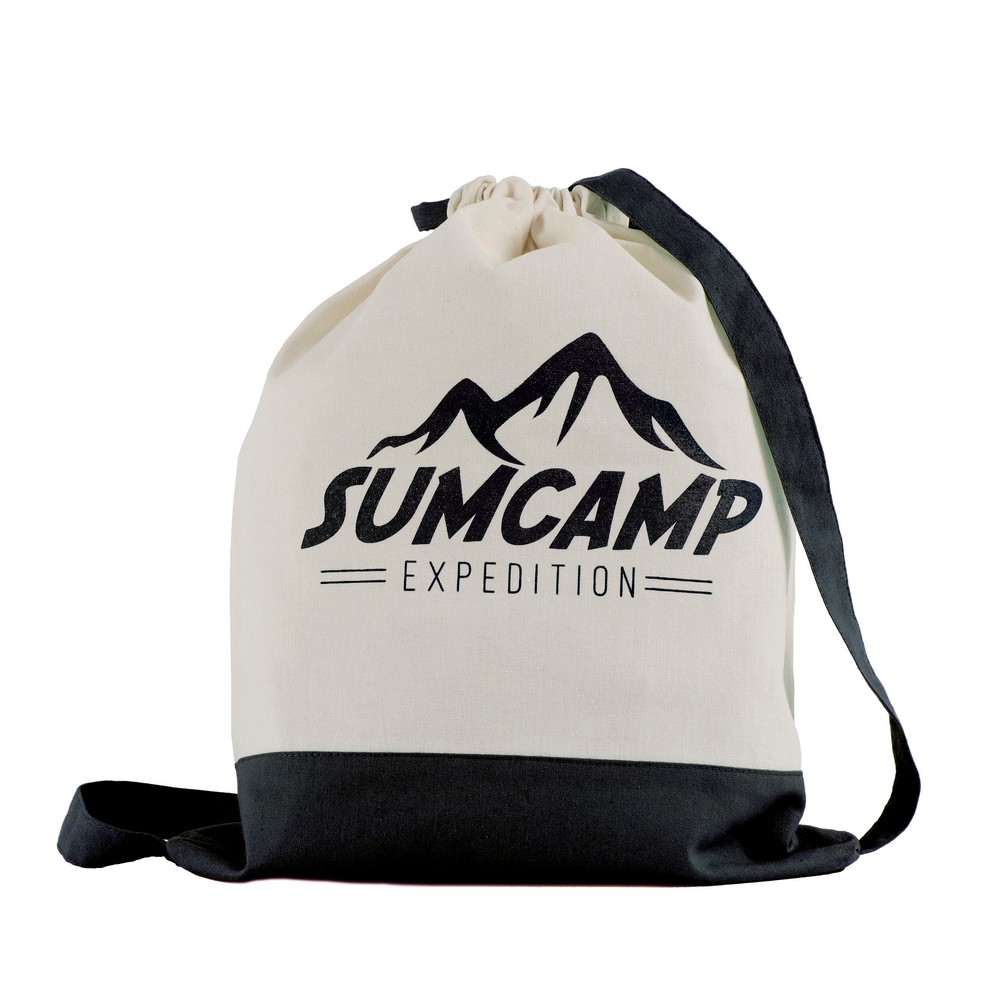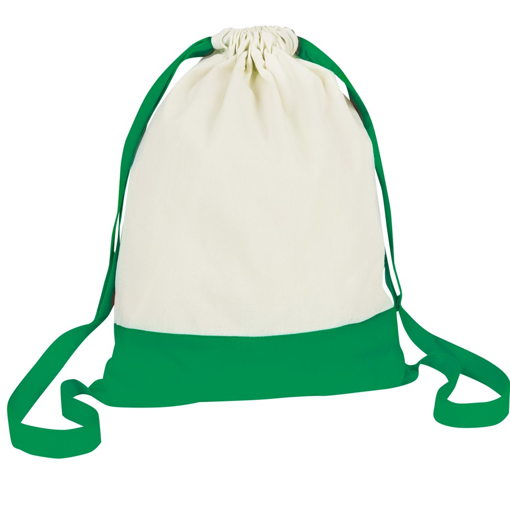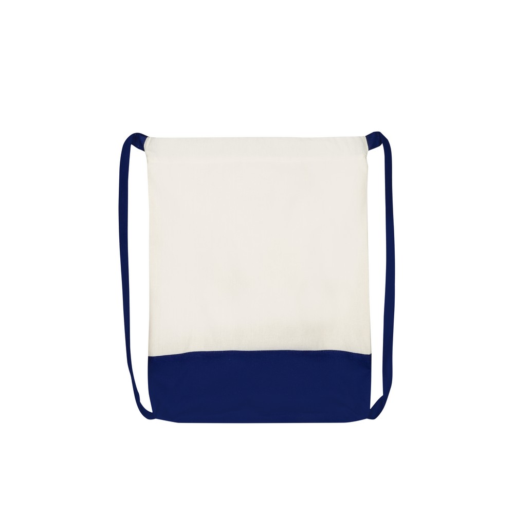 Dwukolorowy worek, posiada szerokie paski na ramię umożliwiające noszenie na plecach, pomieści drobne zakupy lub strój sportowy na siłownię, produkt wykonany z bawełny o gramaturze 140 g/m2