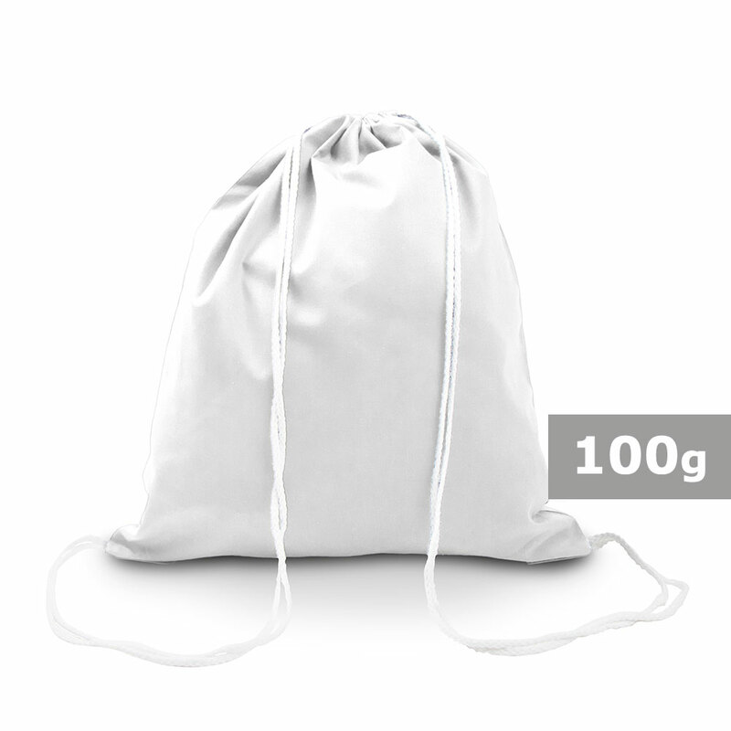 Worek ze sznurkiem umożliwiającym noszenie na plecach, pomieści drobne zakupy lub strój sportowy na siłownię, produkt wykonany z bawełny o gramaturze 100 g/m2