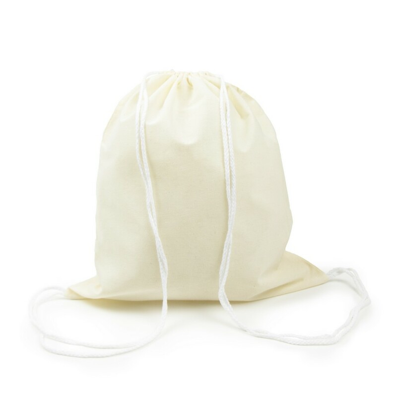 Worek ze sznurkiem umożliwiającym noszenie na plecach, pomieści drobne zakupy lub strój sportowy na siłownię, produkt wykonany z bawełny o gramaturze 100 g/m2
