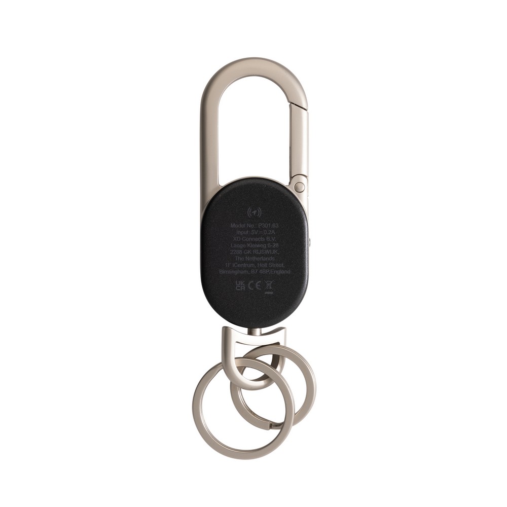 Bezprzewodowy wykrywacz kluczy, lokalizator, brelok, produkt wyposażony w długotrwałą baterię wielokrotnego ładowania, wejście USB-C, zapakowany w opakowanie prezentowe FSC® mix