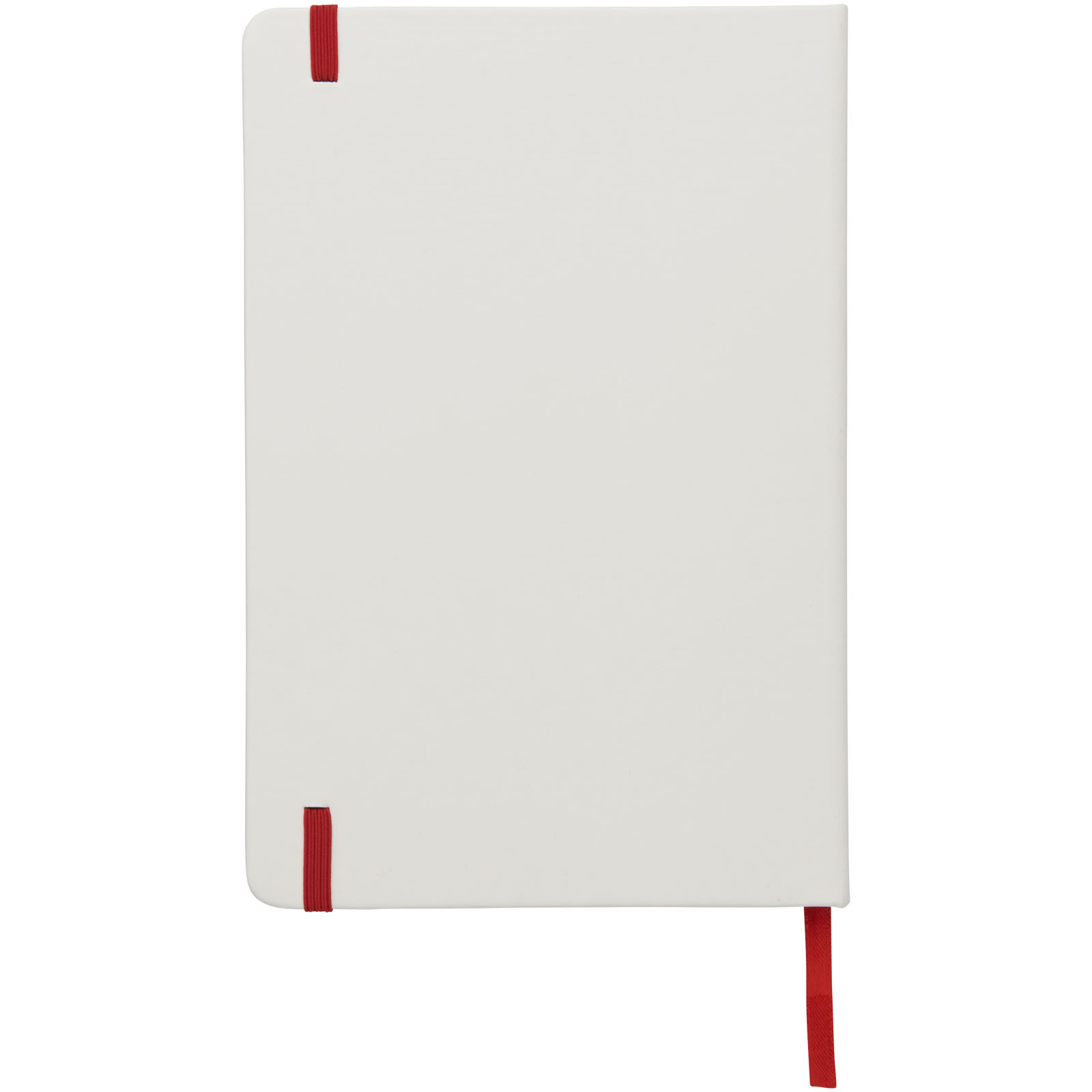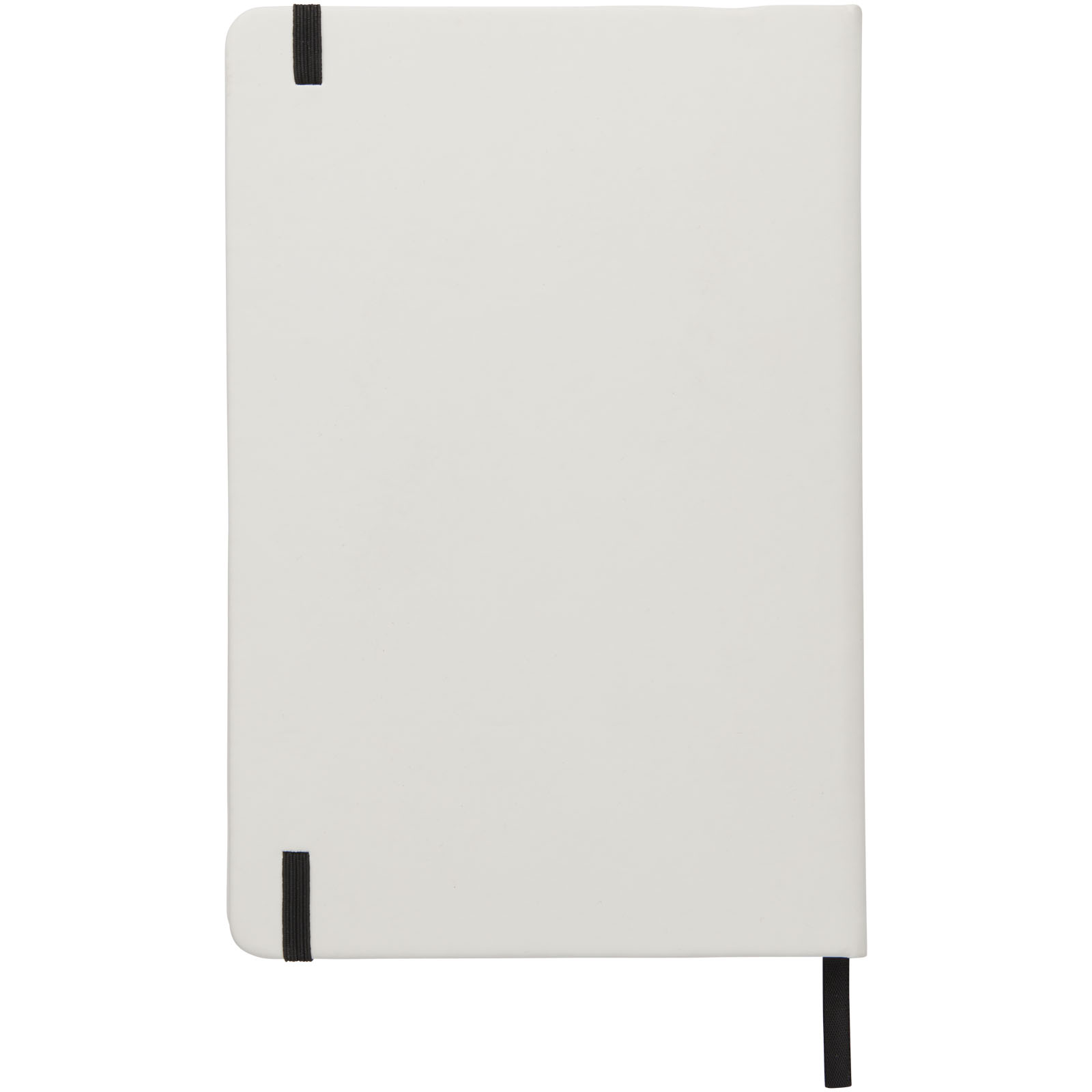 Notatnik A5 z zamknięciem na kolorową gumkę i tasiemką. 80 kartek w linie (gramatura 60 g/m²). Na okładce można wykonać zdobienie drukiem cyfrowym.