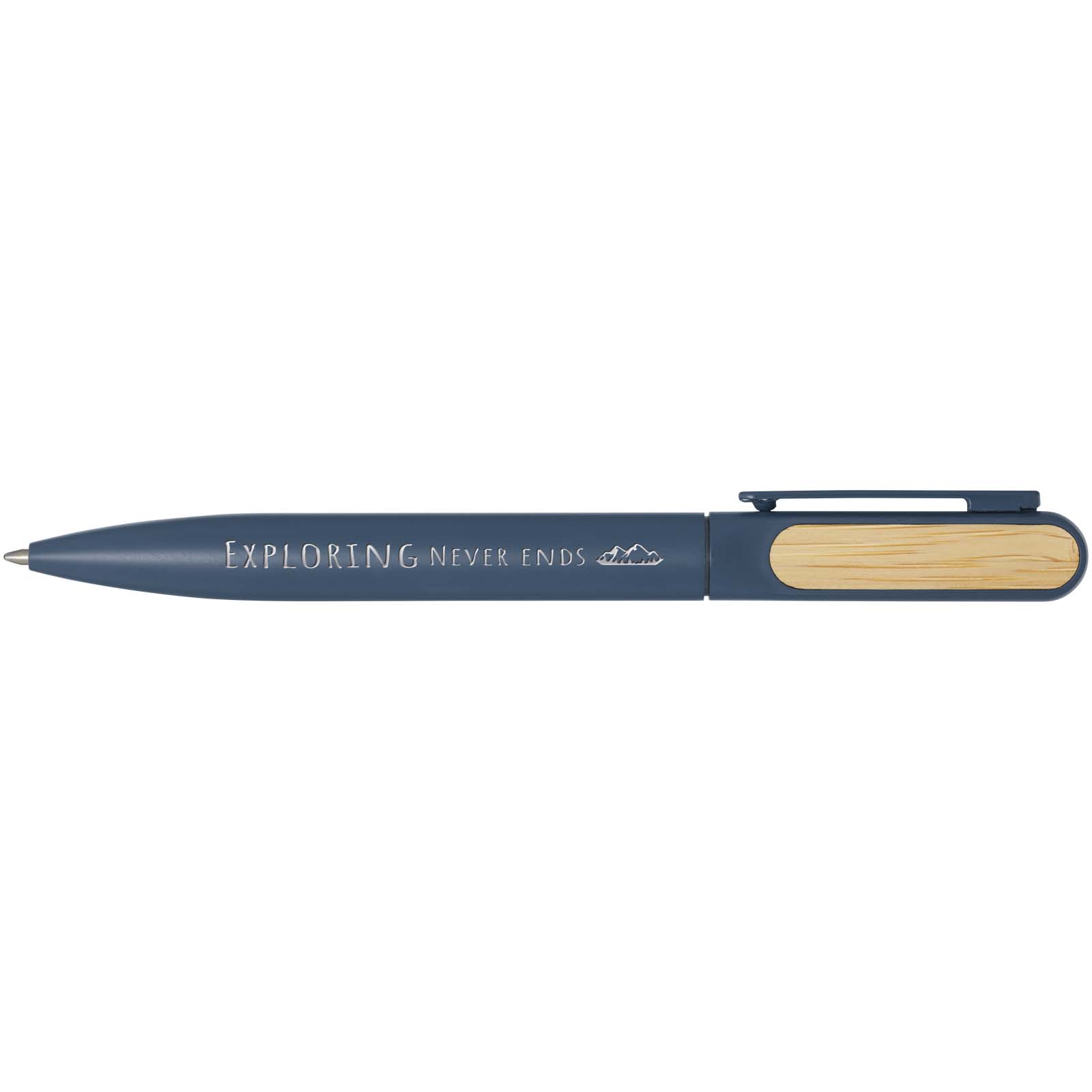 Blanca długopis o górnej części korpusu wykonanej z tworzyw sztucznych pochodzących z recyklingu pokryty kolorową powłoką natryskową z bambusowymi akcesoriami po obu stronach. Dolna część korpusu wykonana jest z aluminium pochodzącego z recyklingu, pokrytego kolorową powłoką natryskową. Kolor tuszu: Niebieski. Żywotność: 400 metrów. Rozmiar stalówki: 1,0 mm.
