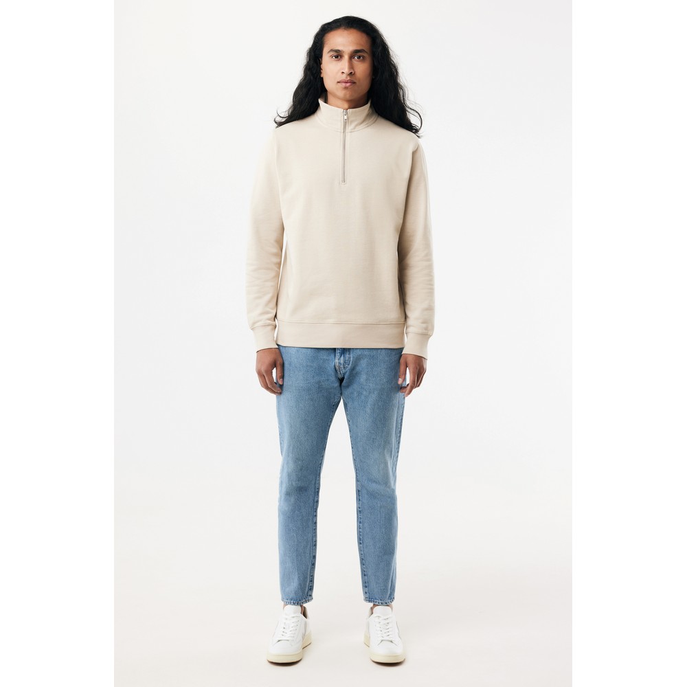 Bluza, unisex, długie rękawy, nowoczesny krój, kołnierz zapinany na zamek błyskawiczy, wykonana w 30% z bawełny z recyklingu i w 70% z bawełny organicznej o gramaturze 300 g/m2, posiada wbudowany znacznik AWARE™, który potwierdza wykorzystanie materiałów z recyklingu, posiada kod QR na metce, który prowadzi do cyfrowego paszportu produktu, 2% wpływów z każdego sprzedanego produktu jest przekazywane na rzecz Water.org