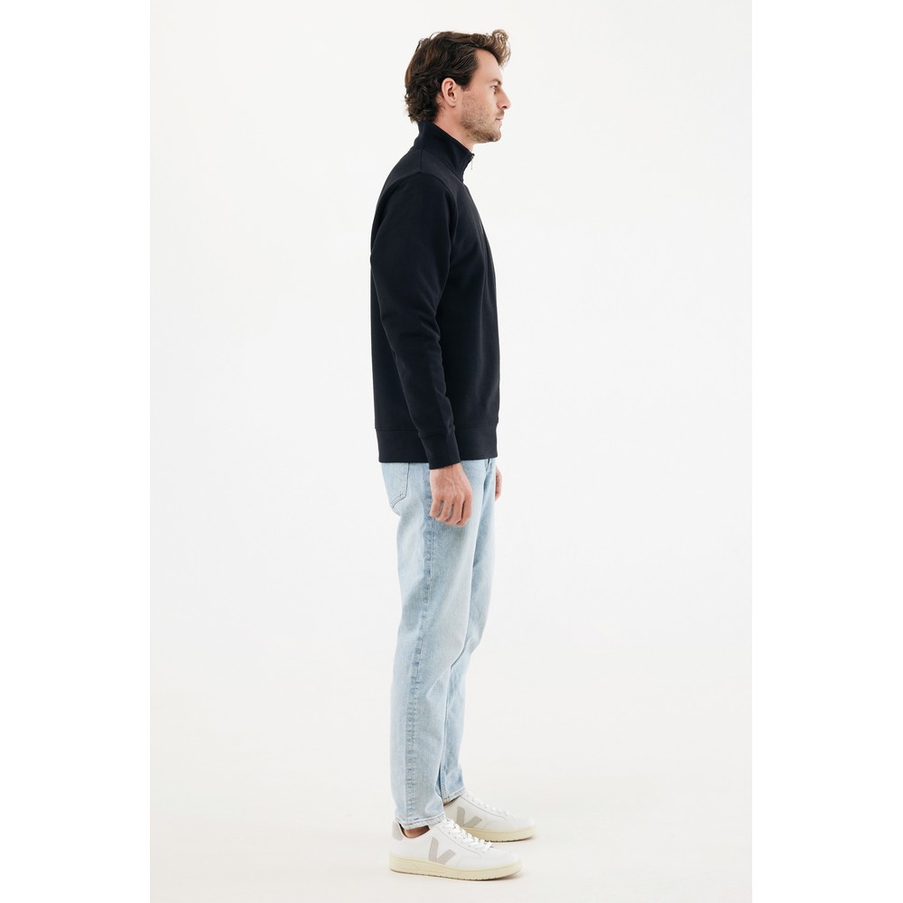 Bluza, unisex, długie rękawy, nowoczesny krój, kołnierz zapinany na zamek błyskawiczy, wykonana w 30% z bawełny z recyklingu i w 70% z bawełny organicznej o gramaturze 300 g/m2, posiada wbudowany znacznik AWARE™, który potwierdza wykorzystanie materiałów z recyklingu, posiada kod QR na metce, który prowadzi do cyfrowego paszportu produktu, 2% wpływów z każdego sprzedanego produktu jest przekazywane na rzecz Water.org