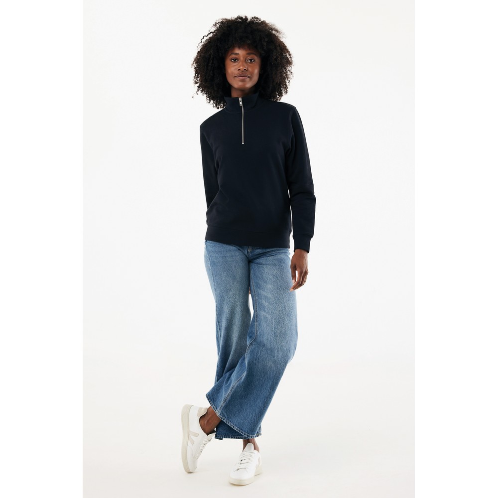 Bluza, unisex, długie rękawy, nowoczesny krój, kołnierz zapinany na zamek błyskawiczy, wykonana w 30% z bawełny z recyklingu i w 70% z bawełny organicznej o gramaturze 300 g/m2, posiada wbudowany znacznik AWARE™, który potwierdza wykorzystanie materiałów z recyklingu, posiada kod QR na metce, który prowadzi do cyfrowego paszportu produktu, 2% wpływów z każdego sprzedanego produktu jest przekazywane na rzecz Water.org