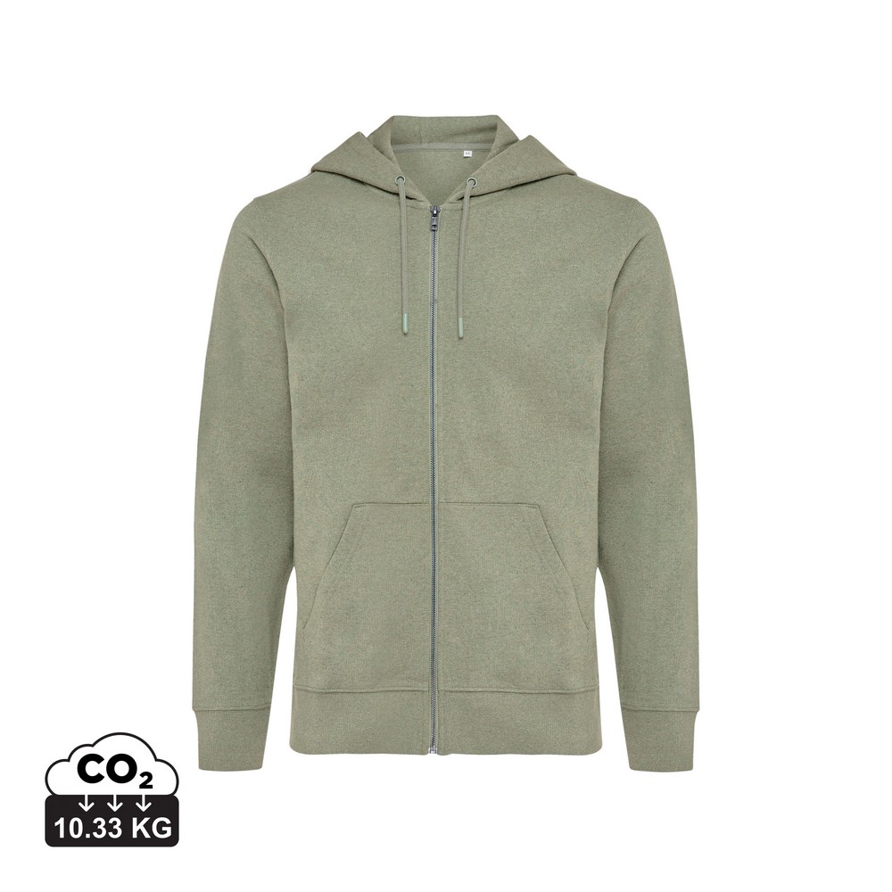 Bluza z kapturem, zapinana na zamek, unisex, regularny krój, splot Brushed Sweat, długie rękawy, dwuwarstwowy kaptur, wykonana w 50% z bawełny z recyklingu i w 50% z bawełny organicznej o gramaturze 340 g/m2, bez dodatku poliestru, posiada wbudowany znacznik AWARE™, który potwierdza wykorzystanie materiałów z recyklingu, posiada kod QR na metce, który prowadzi do cyfrowego paszportu produktu, 2% wpływów z każdego sprzedanego produktu z kolekcji Impact jest przekazywane na rzecz Water.org