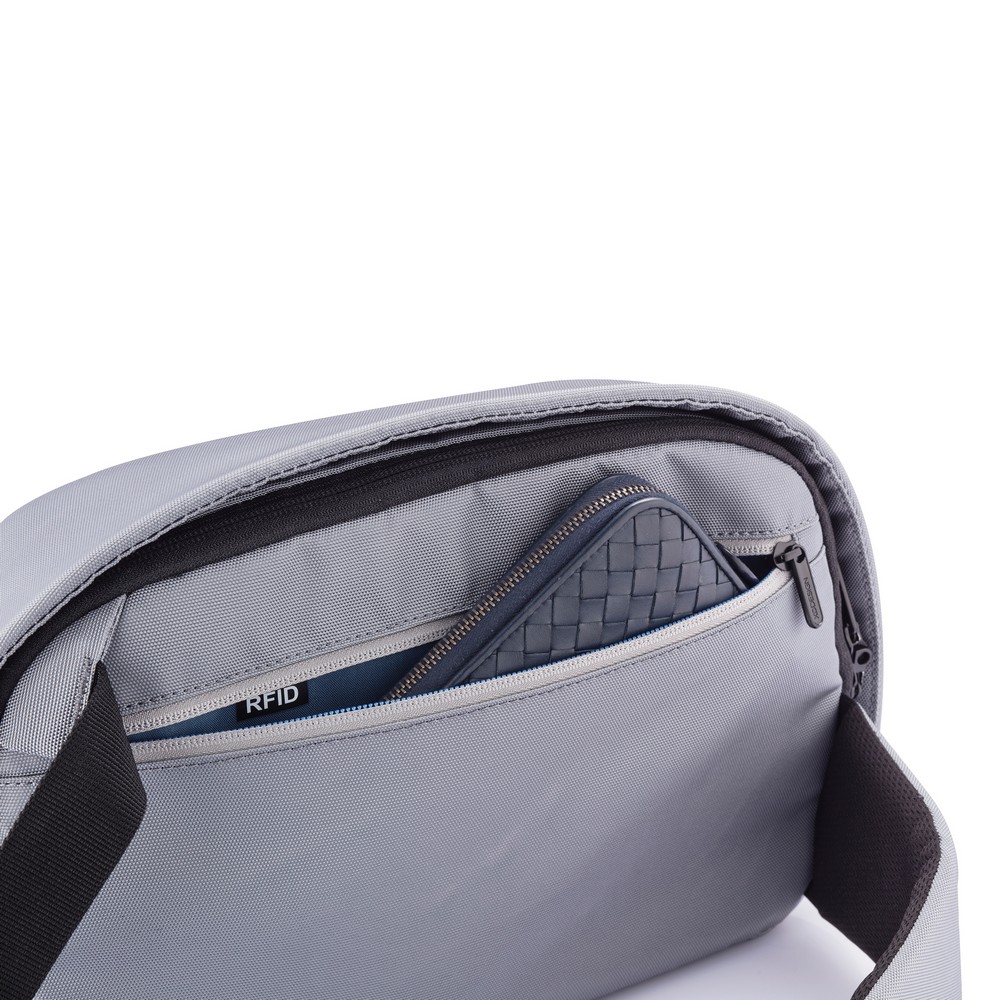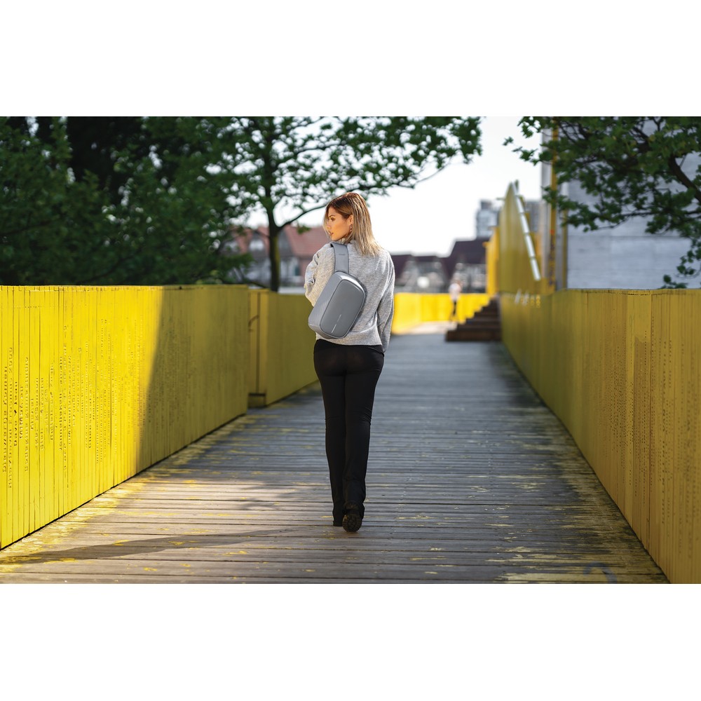 Plecak chroniący przed kieszonkowcami Bobby Sling z miękkim paskiem na ramię, wodoodporny i odporny na przecięcia materiał, 3 punktowa klamra bezpieczeństwa, zintegrowany port USB do ładowania telefonów (power-bank nie jest dołączony), kieszeń RFID, ukryte zamki i kieszenie, ślad węglowy produktu: 3,38 kg CO2