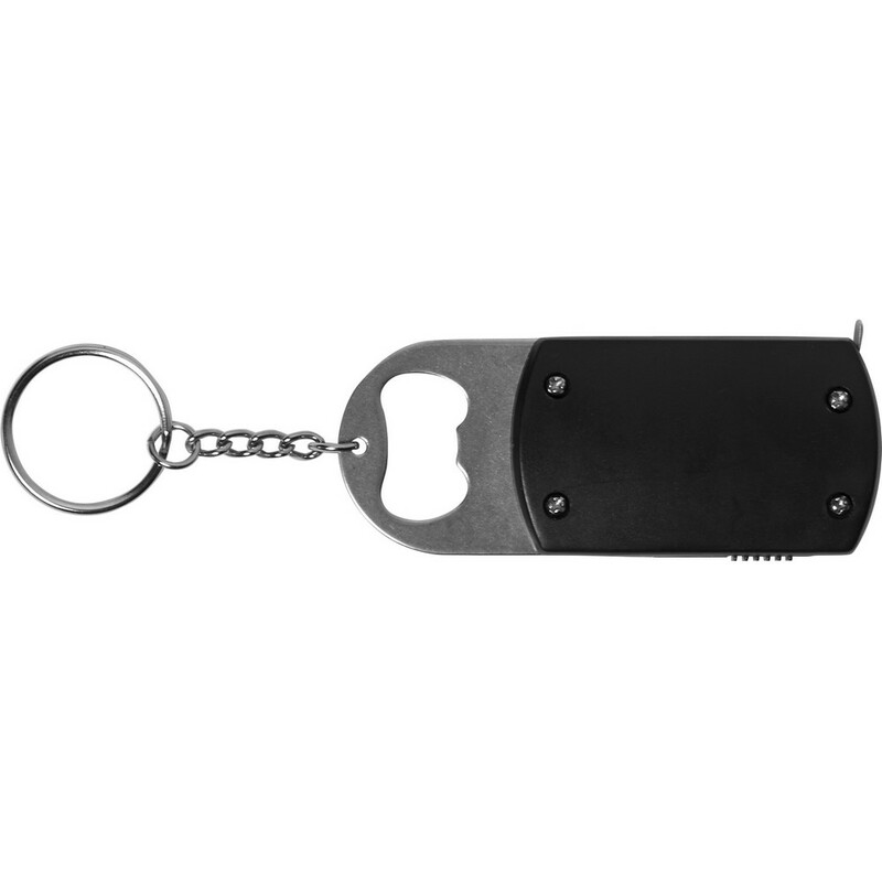 Brelok do kluczy, lampka LED, otwieracz do butelek, miara 1m