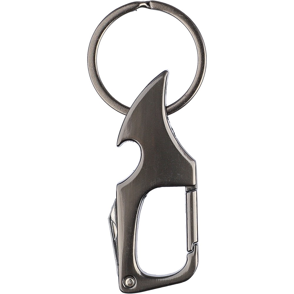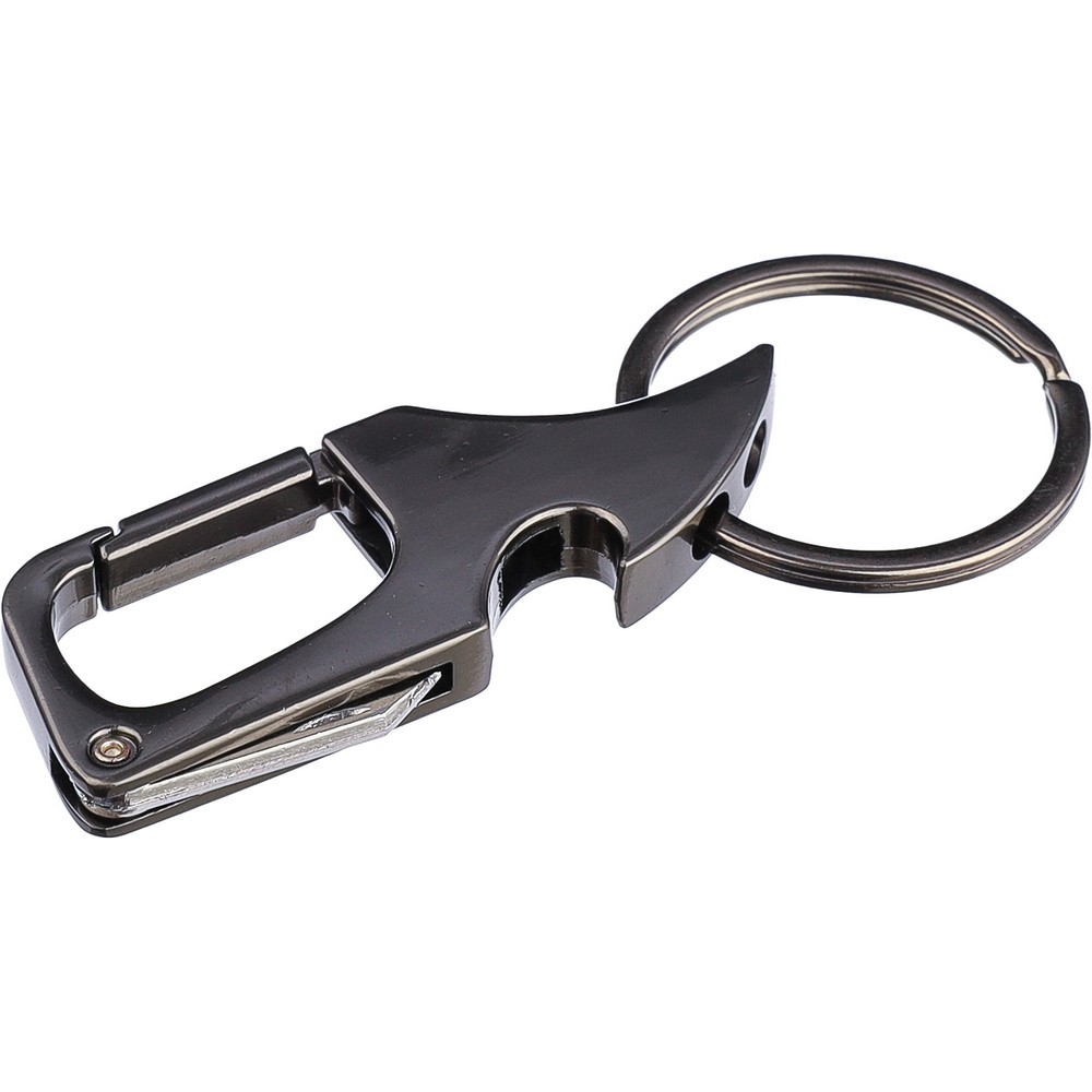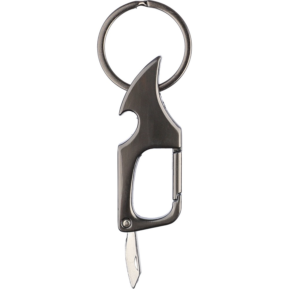 Brelok do kluczy, otwieracz do butelek z karabińczykiem umożliwiającym przypinanie, wyposażony w mały nóż, który sprawdzi się przy otwieraniu pudełek, zapakowany w brązową kopertę kartonową, produkt wykonany z metalu
