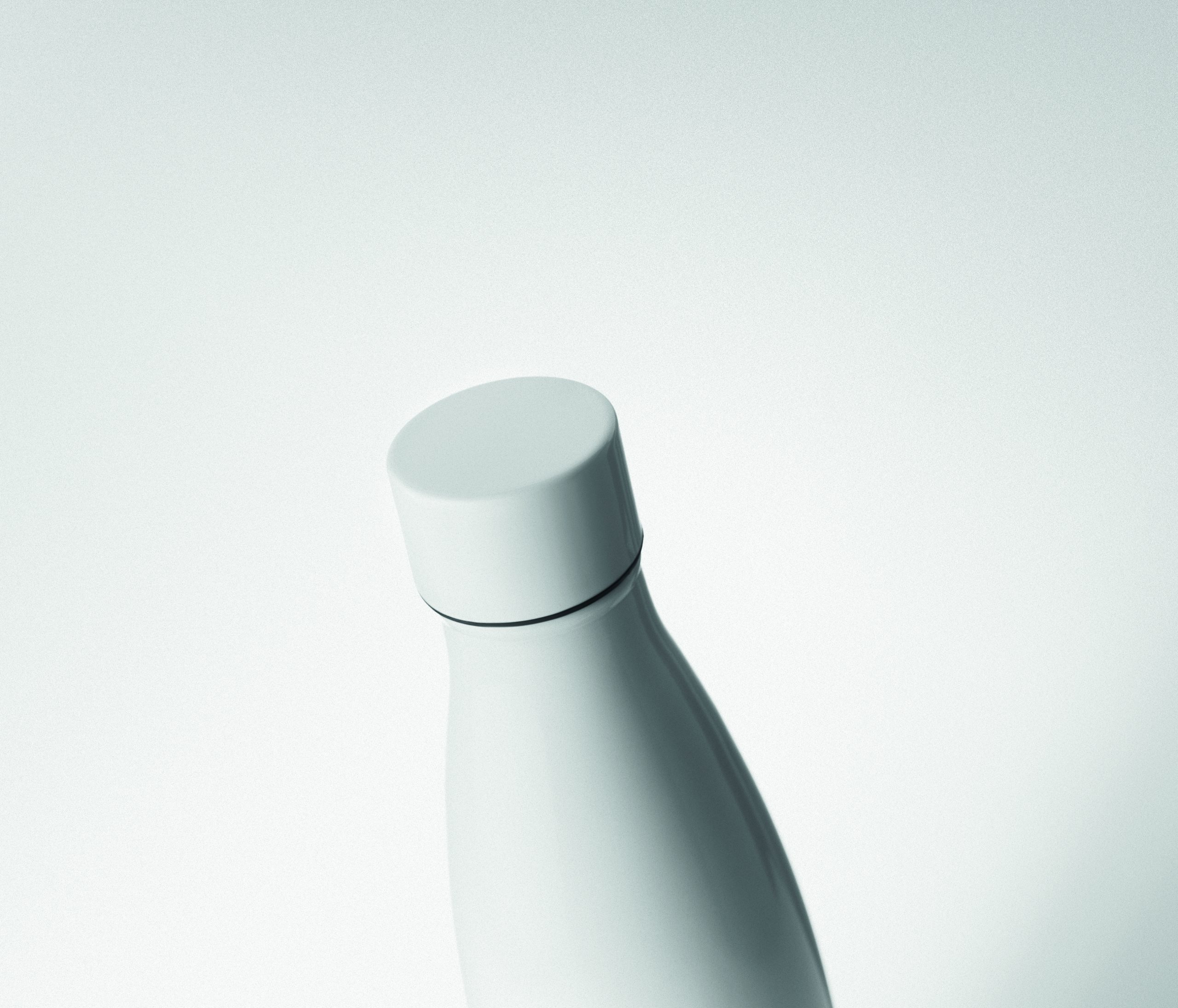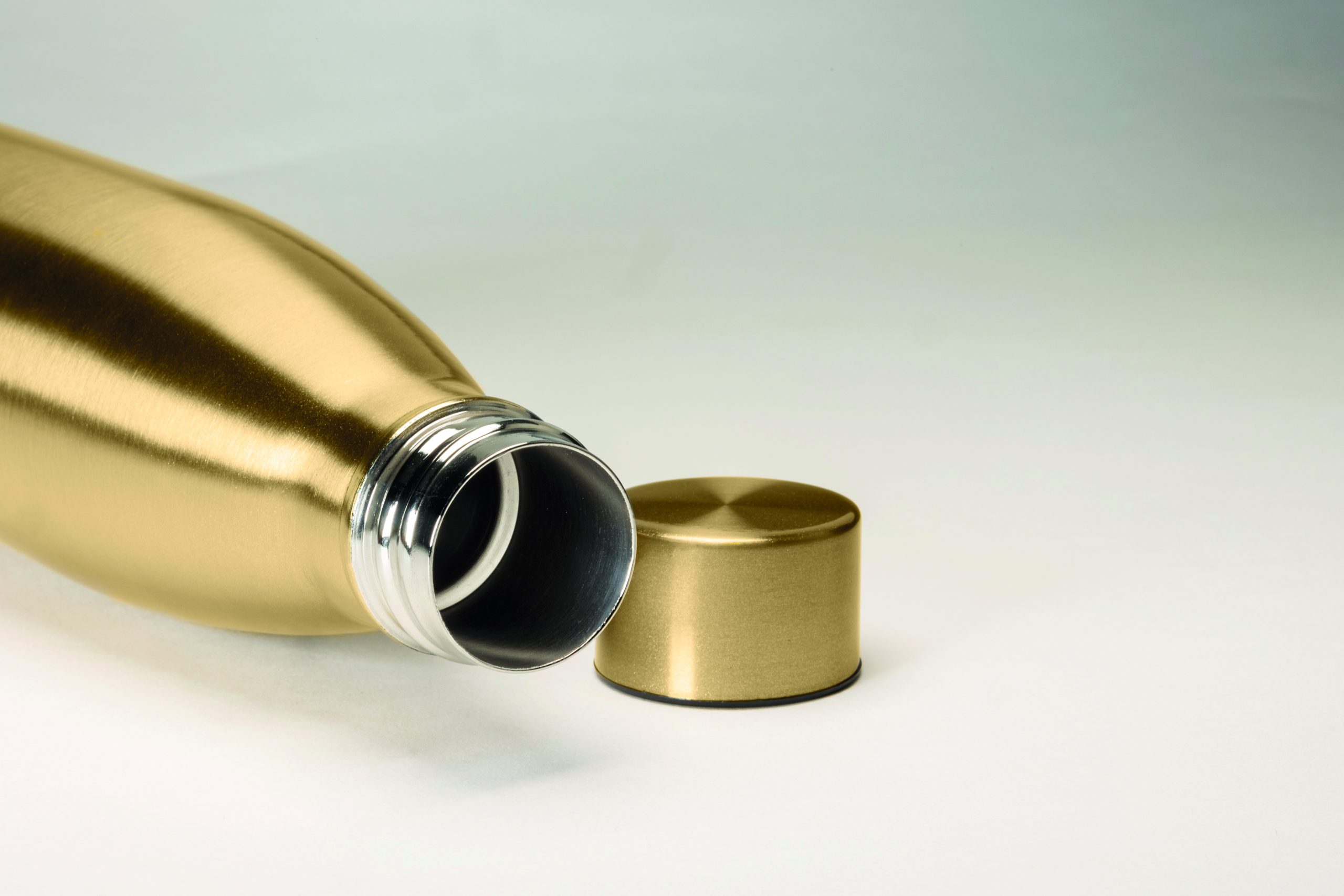 Butelka ze stali nierdzewnej, posiada podwójne ścianki między którymi znajduje się izolacyjna komora próżniowa. Pojemność 500 ml. Szczelna.