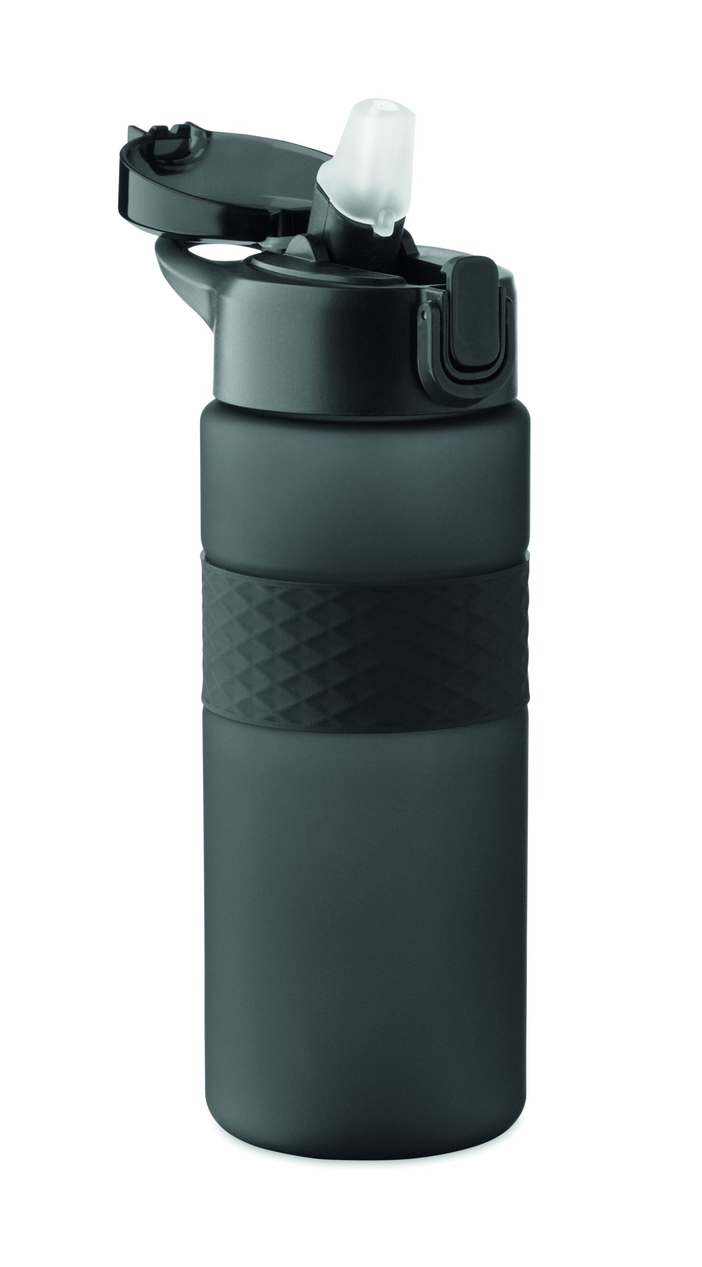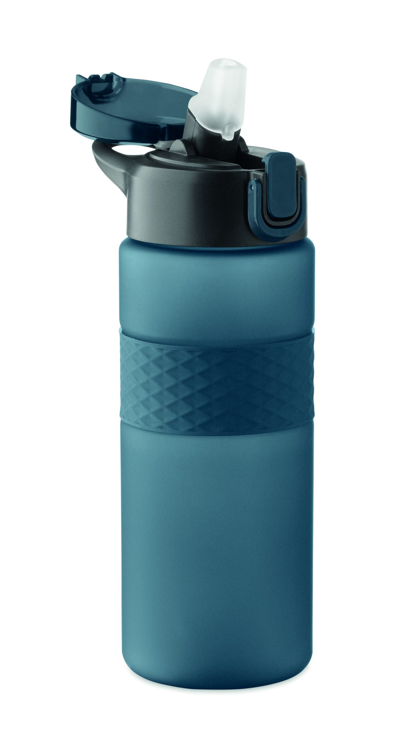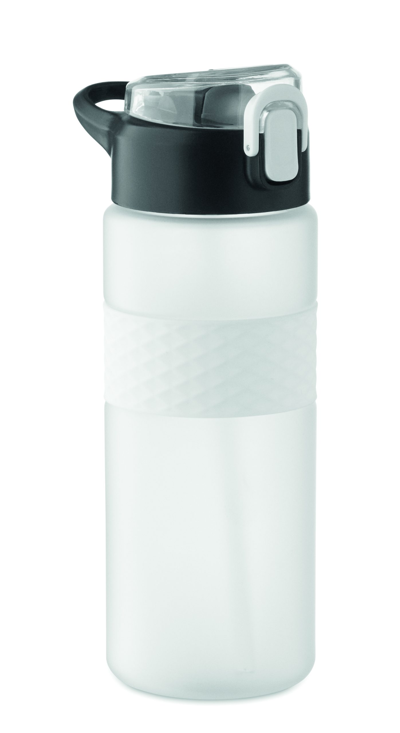Butelka do picia wykonana z RPET z silikonowym uchwytem, pokrywką z PP i bezpiecznym zamknięciem. Zawiera zintegrowaną słomkę. Nie przecieka. Pojemność: 700 ml.