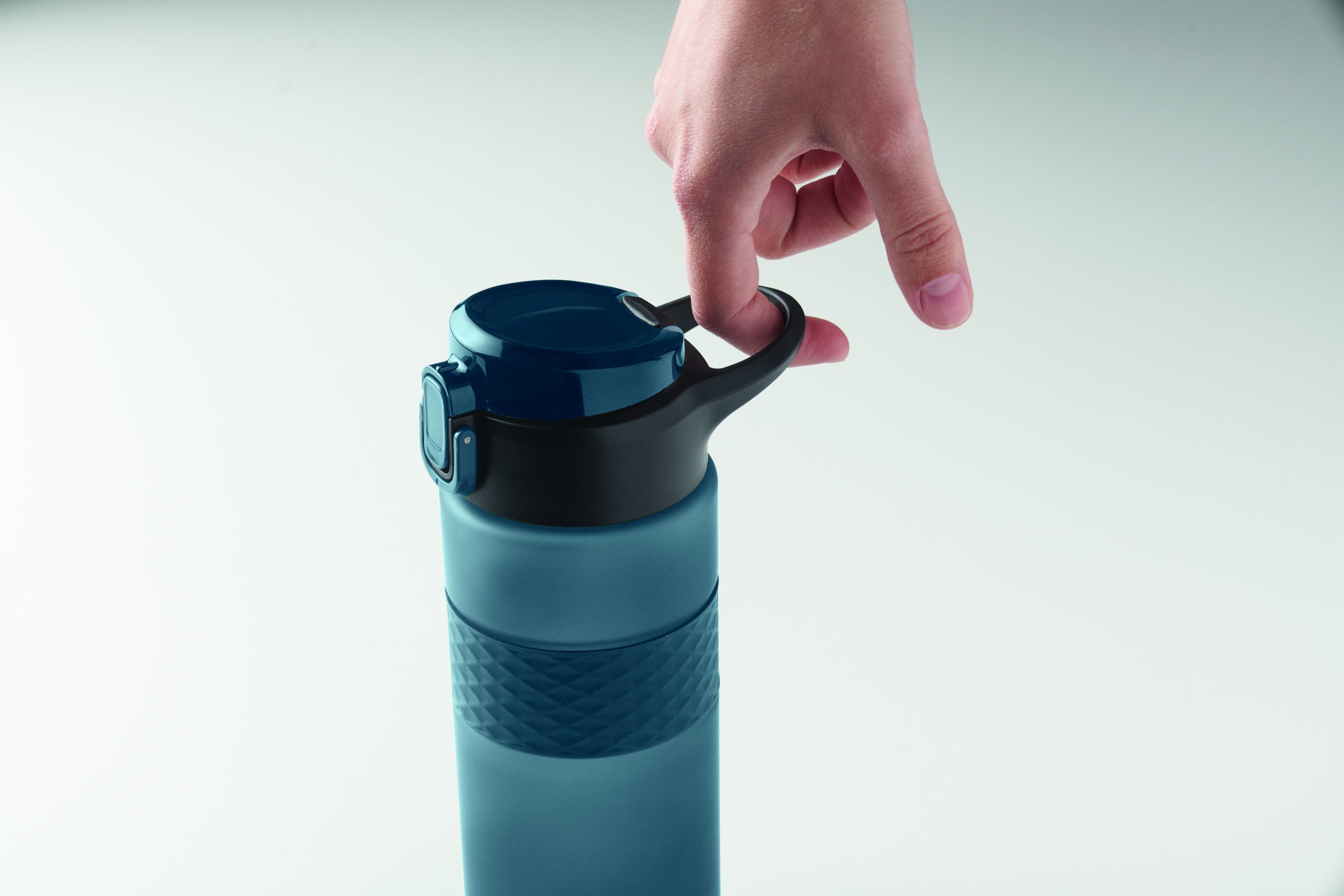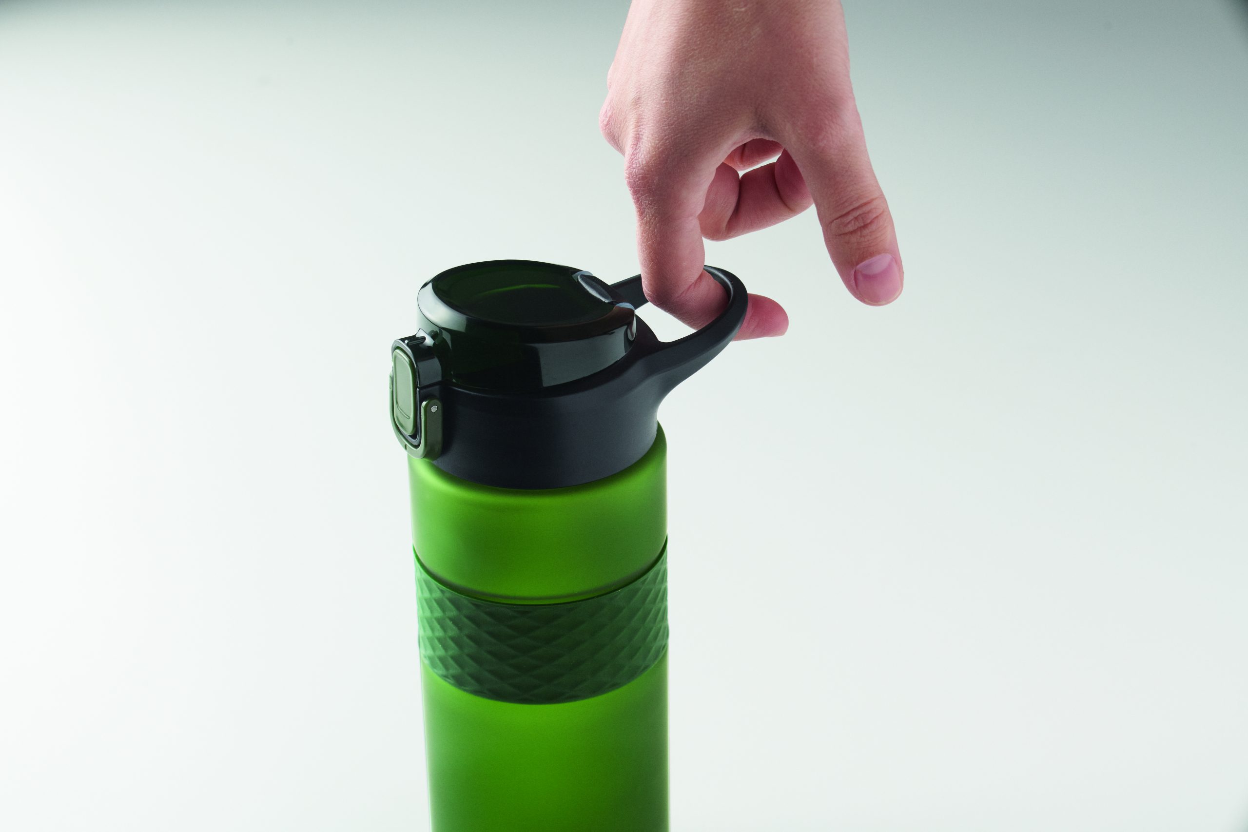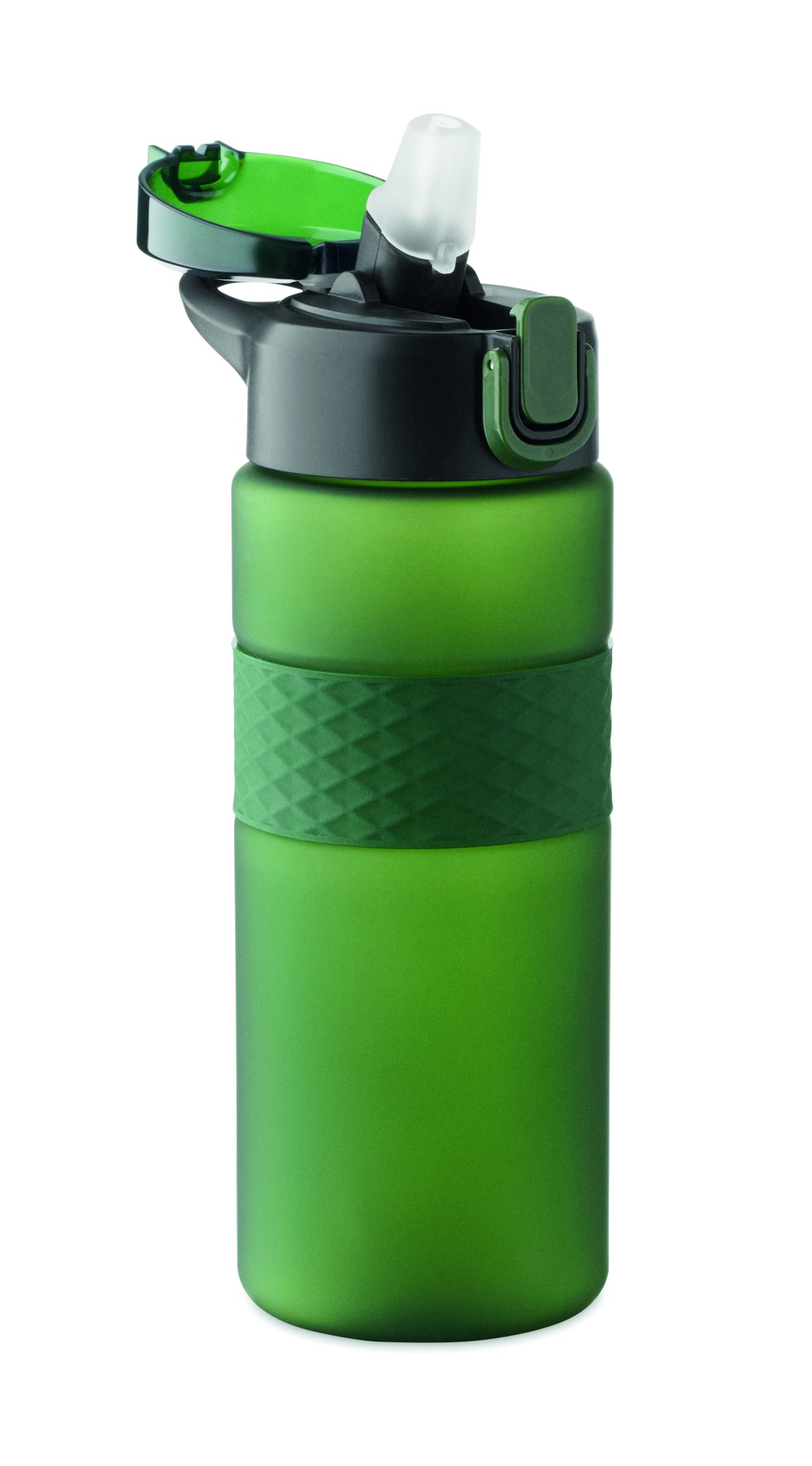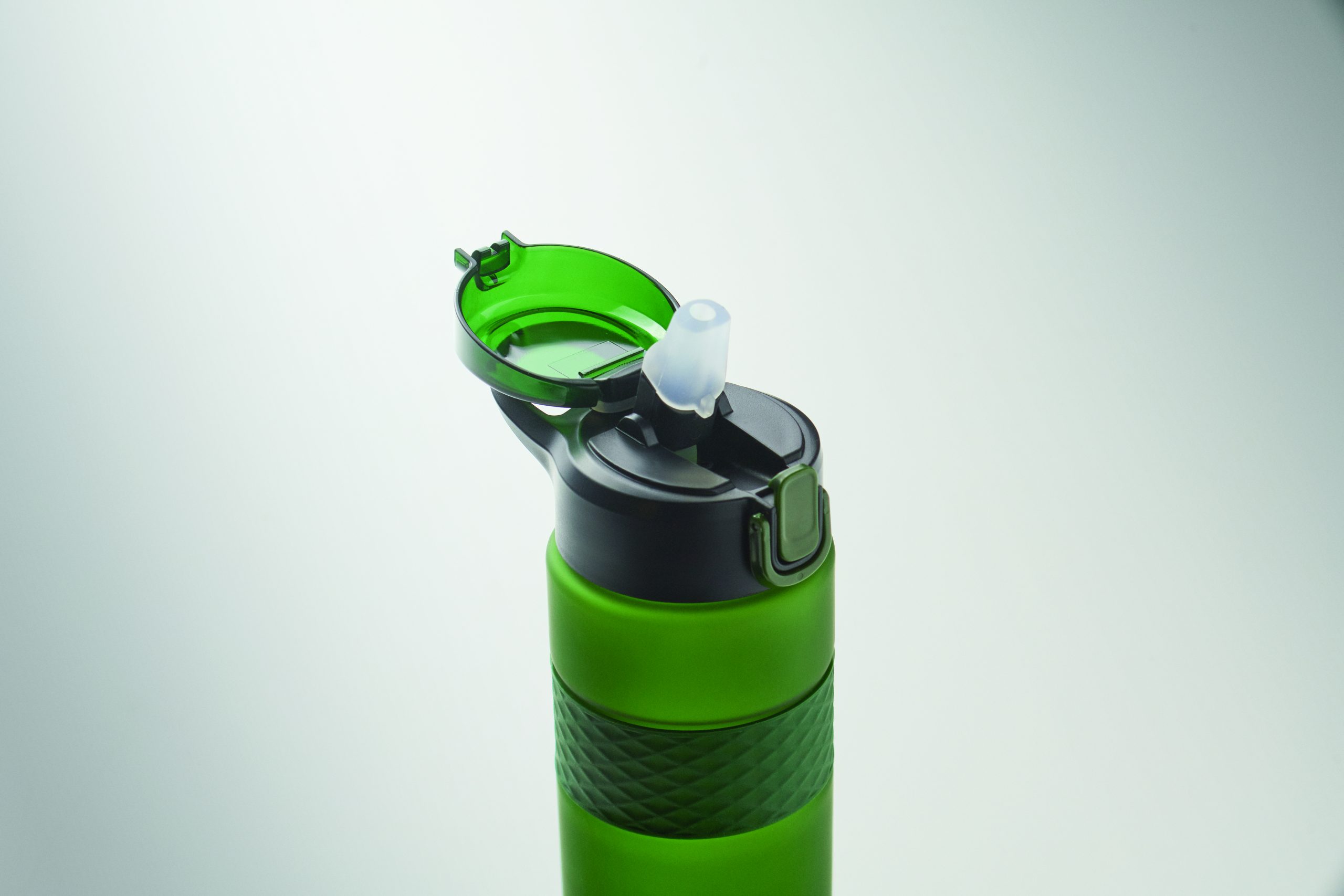 Butelka do picia wykonana z RPET z silikonowym uchwytem, pokrywką z PP i bezpiecznym zamknięciem. Zawiera zintegrowaną słomkę. Nie przecieka. Pojemność: 700 ml.