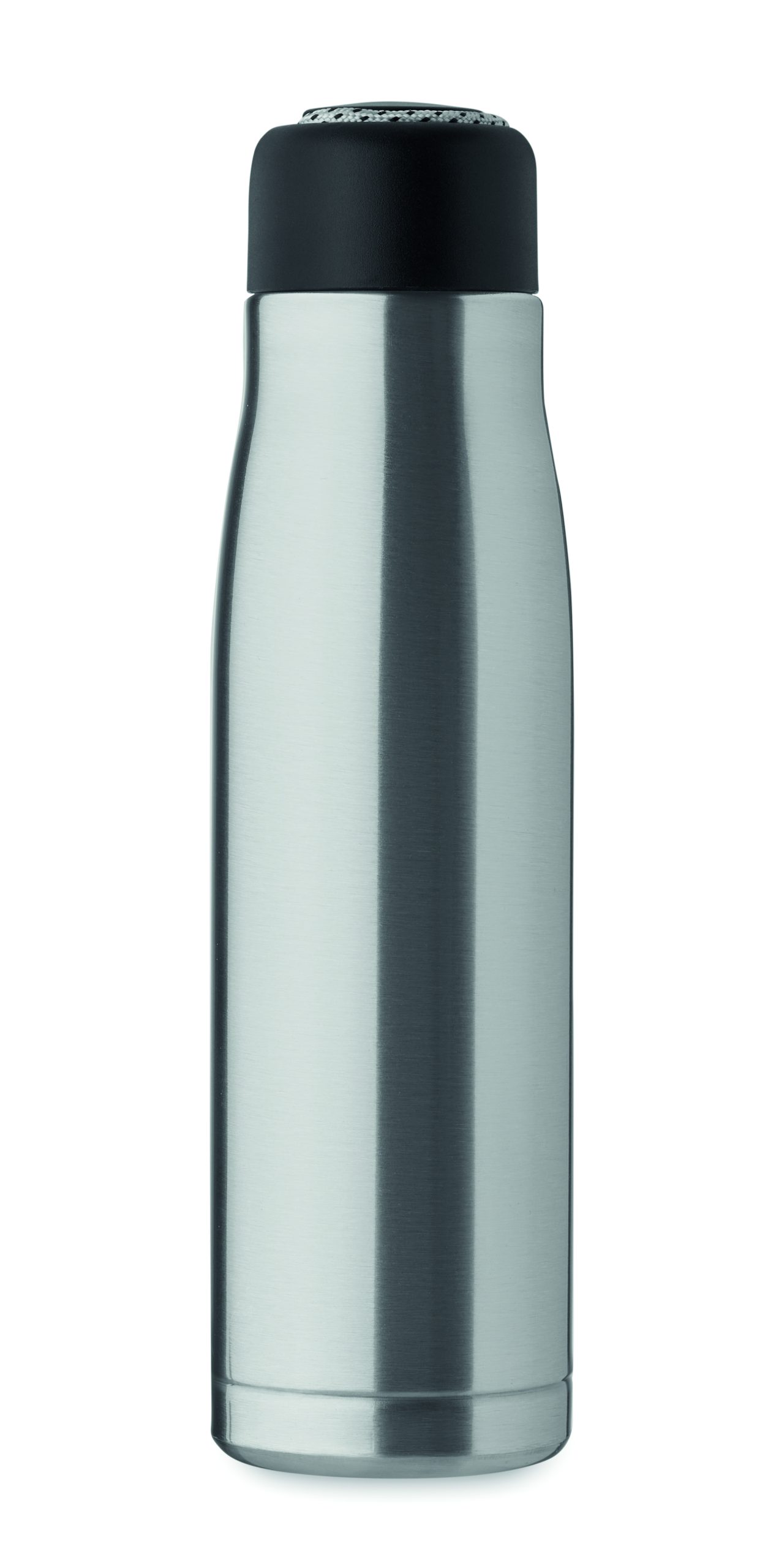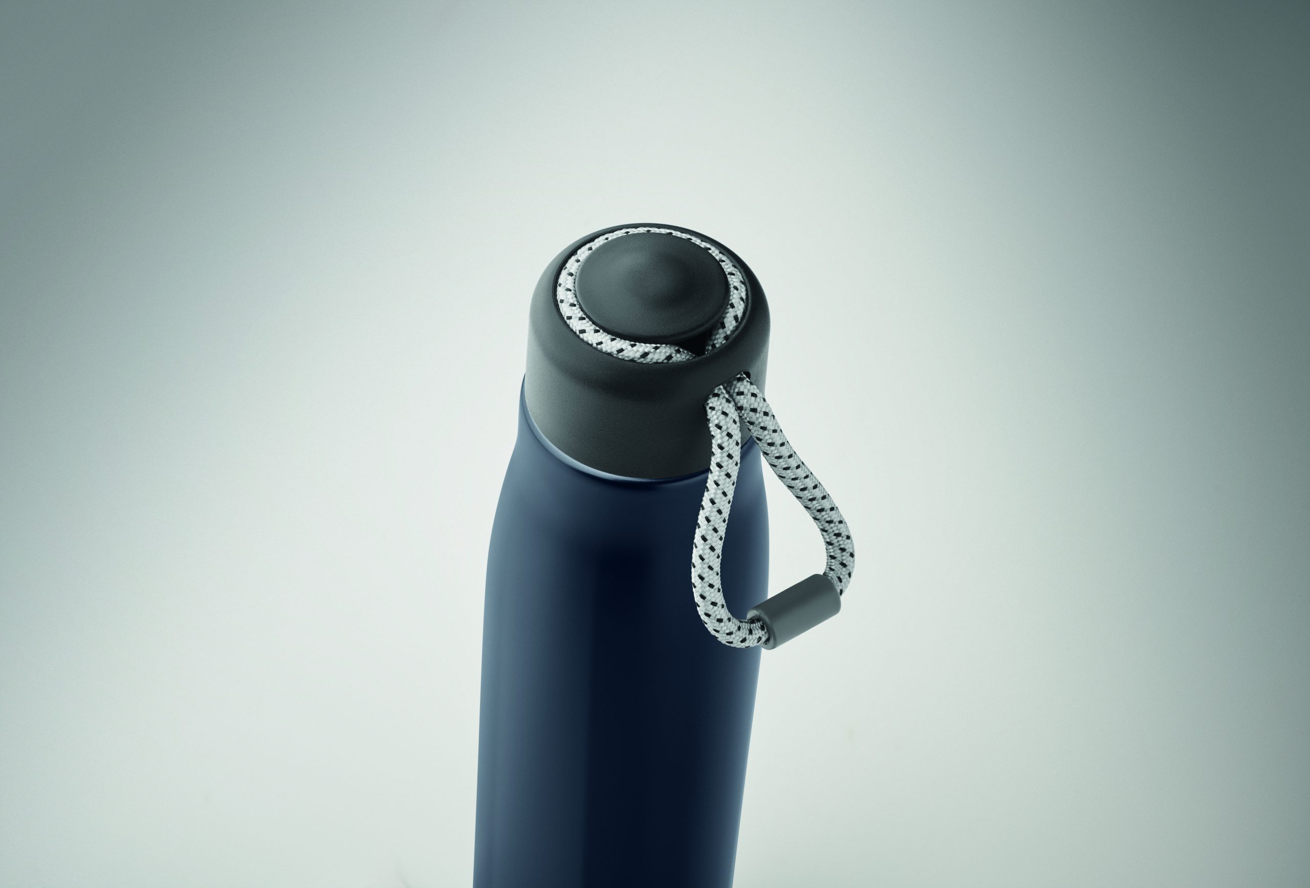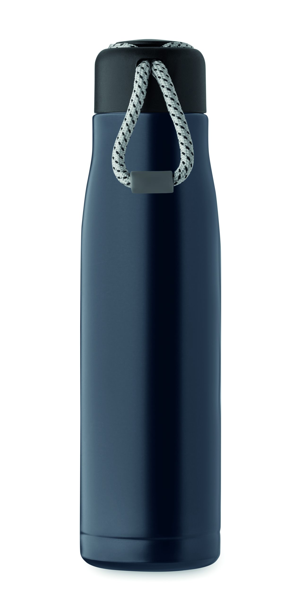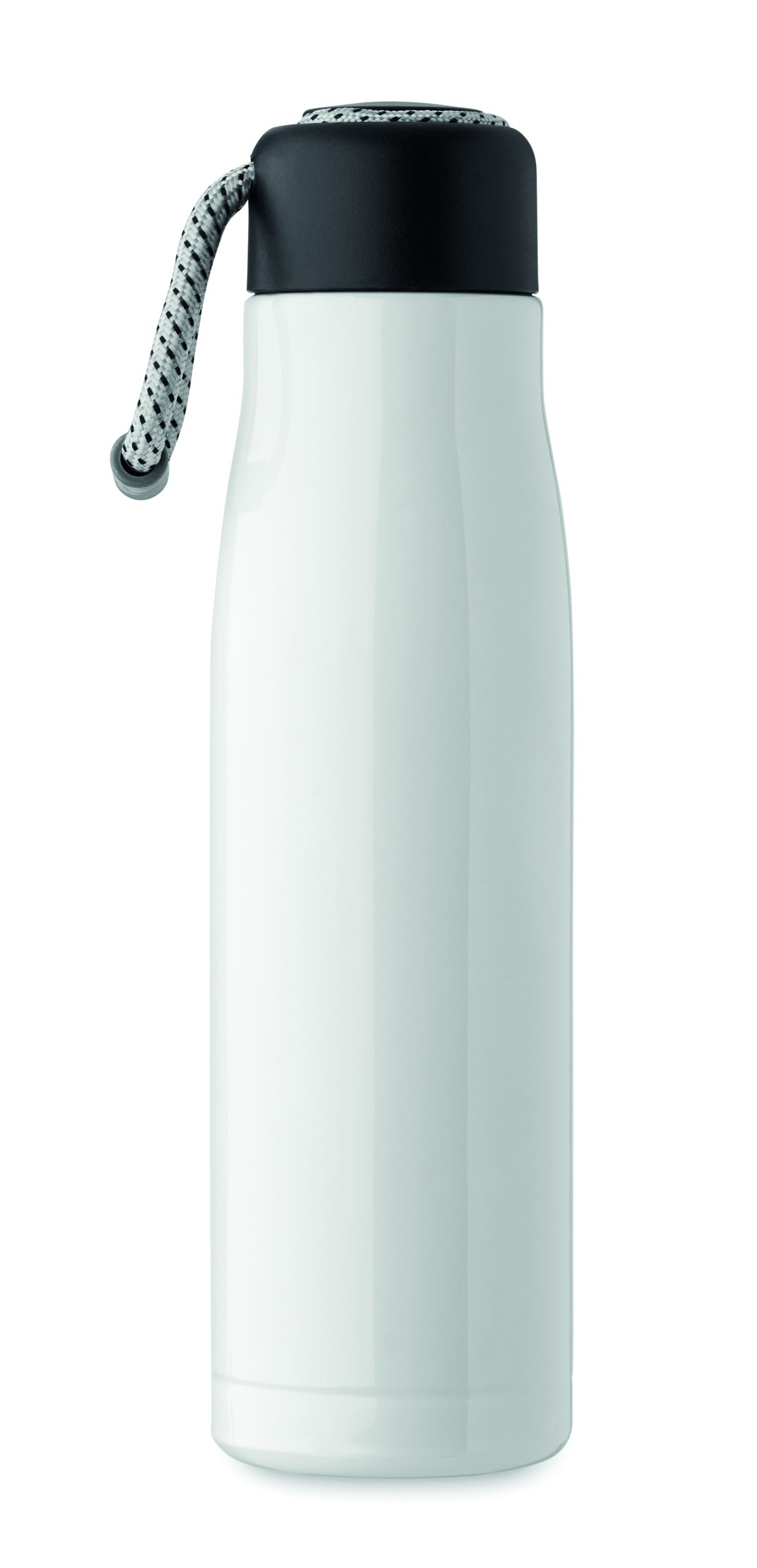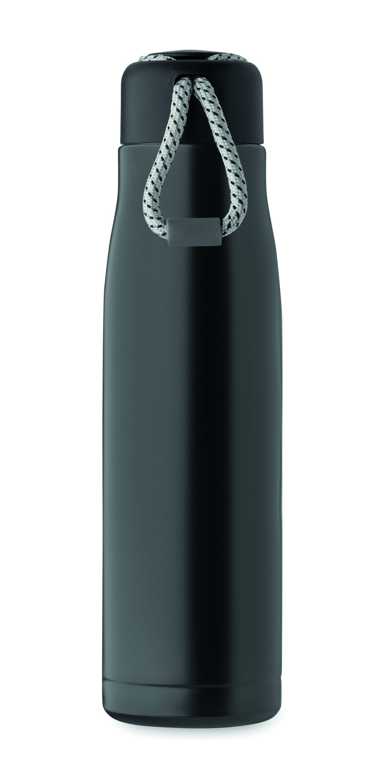 Izolowana próżniowo butelka z podwójnymi ściankami z recyklingowanej stali nierdzewnej (90% z recyklingowanej stali nierdzewnej i 10% ze stali nierdzewnej) ze zintegrowanym uchwytem sznurkowym w zakrętce z PP. Nie przecieka. Pojemność: 500 ml.