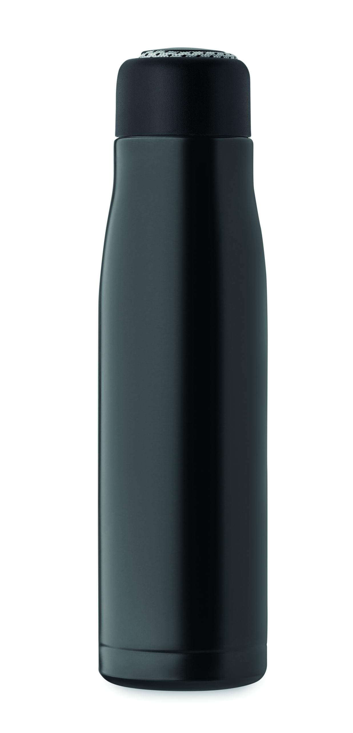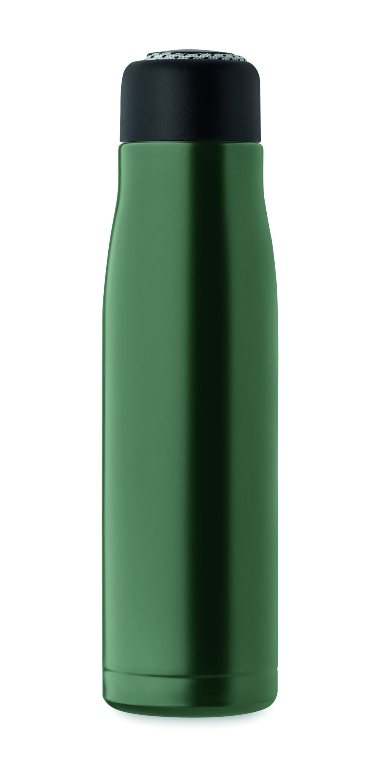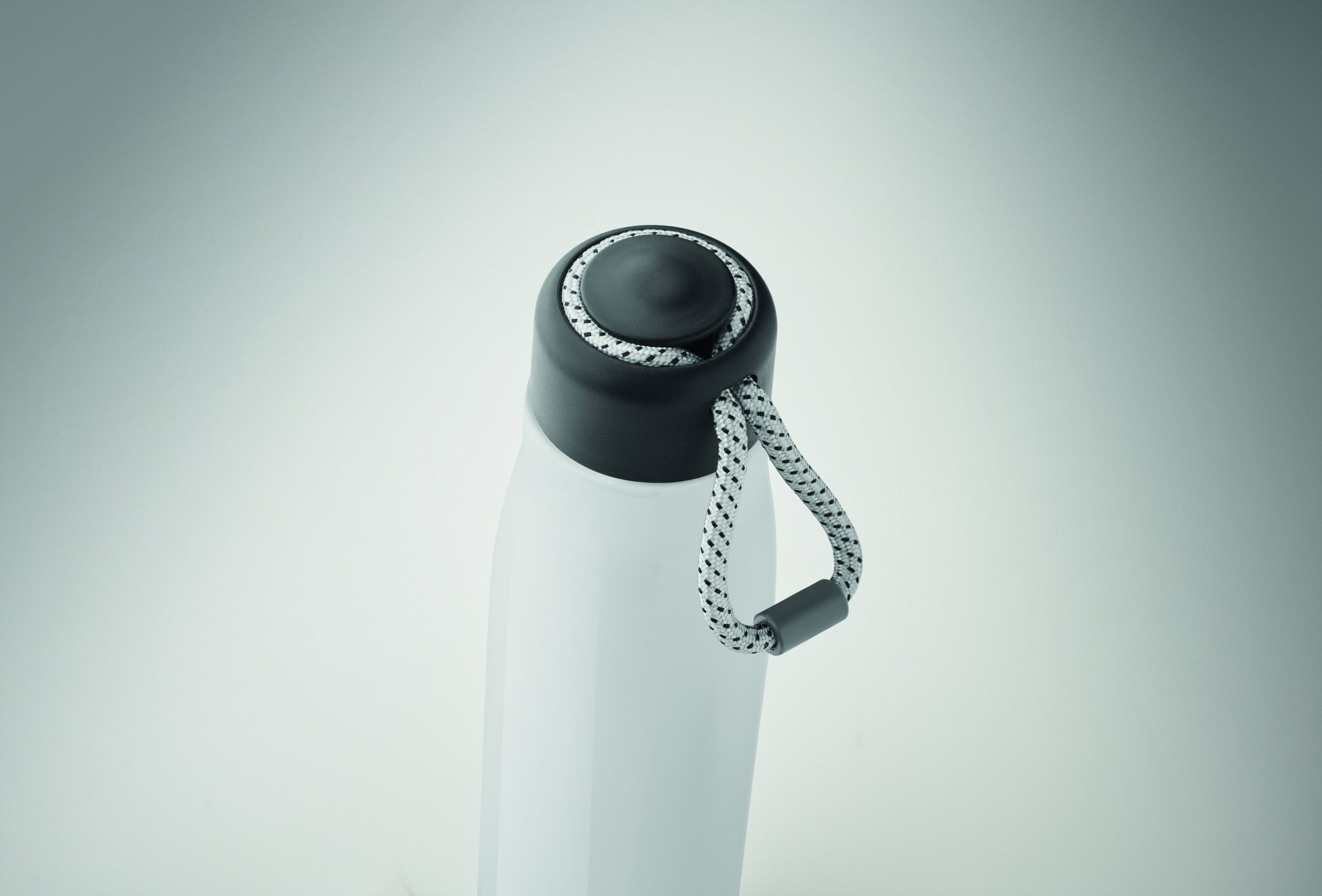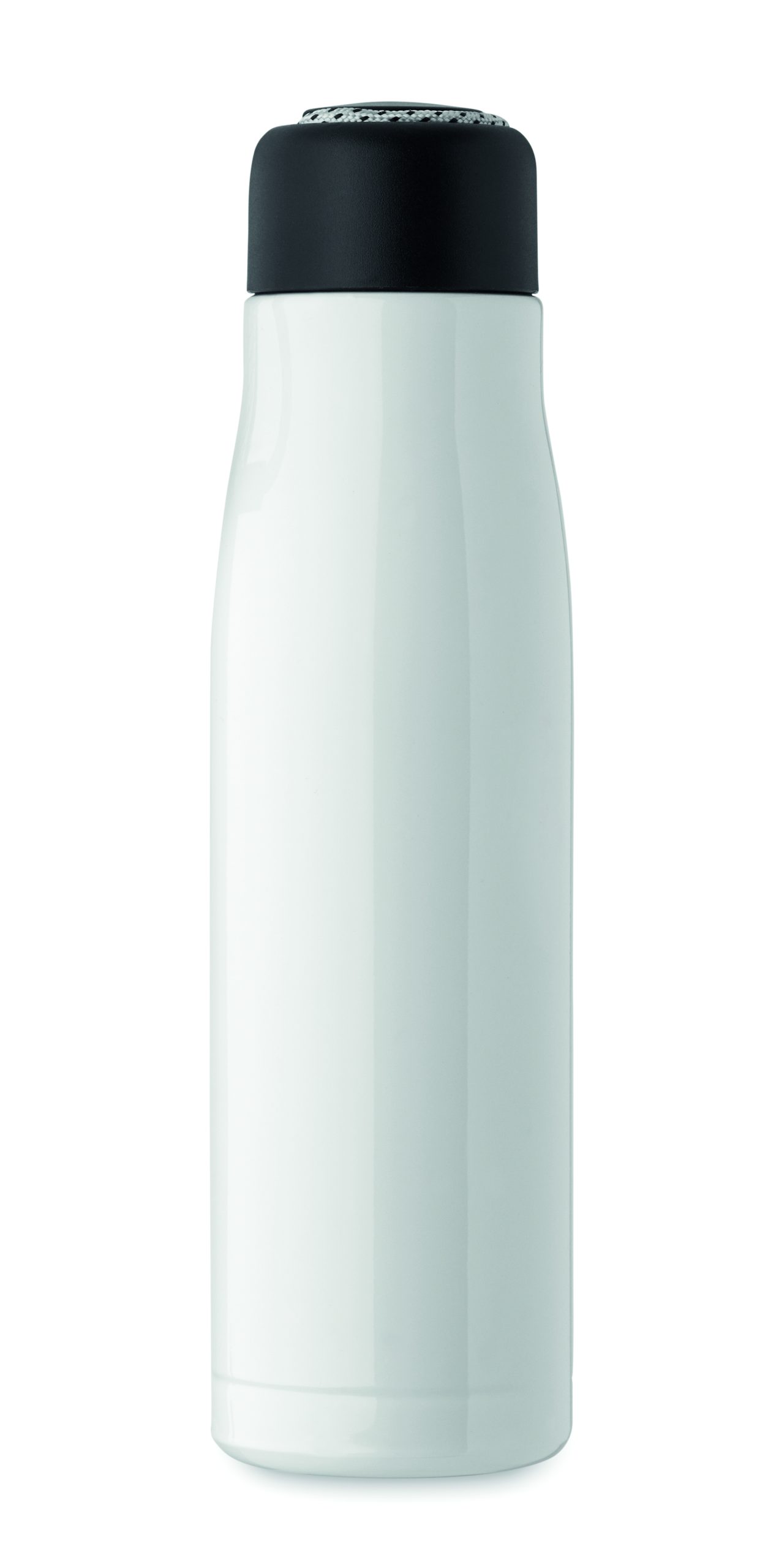 Izolowana próżniowo butelka z podwójnymi ściankami z recyklingowanej stali nierdzewnej (90% z recyklingowanej stali nierdzewnej i 10% ze stali nierdzewnej) ze zintegrowanym uchwytem sznurkowym w zakrętce z PP. Nie przecieka. Pojemność: 500 ml.