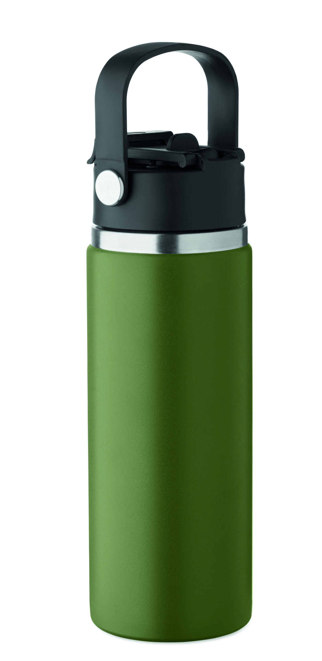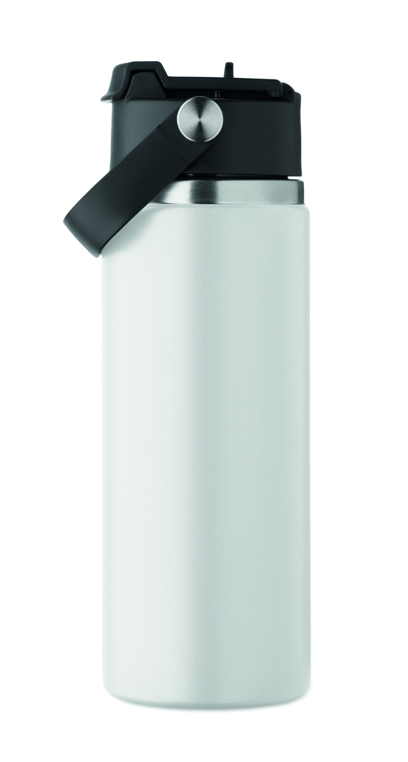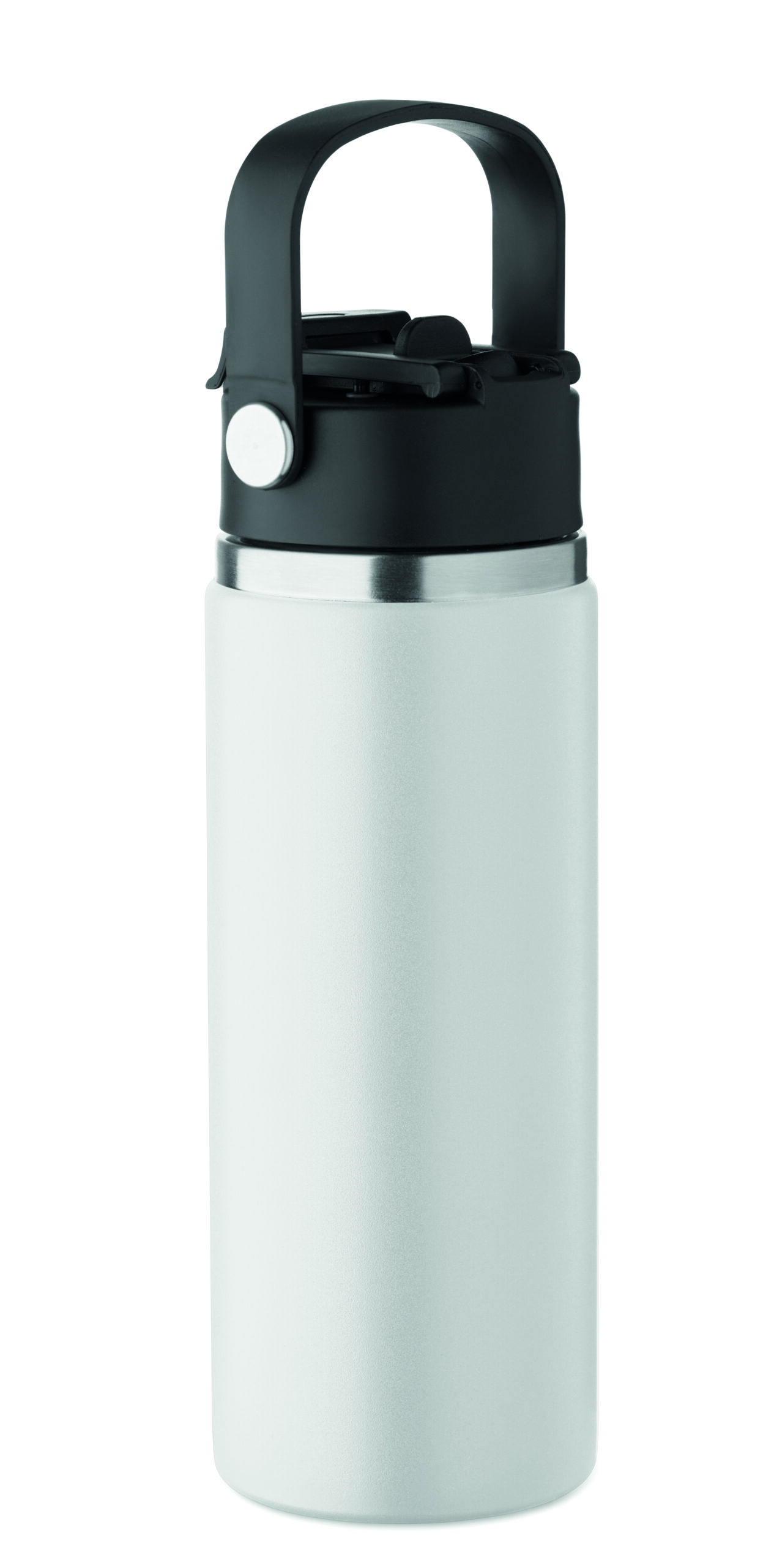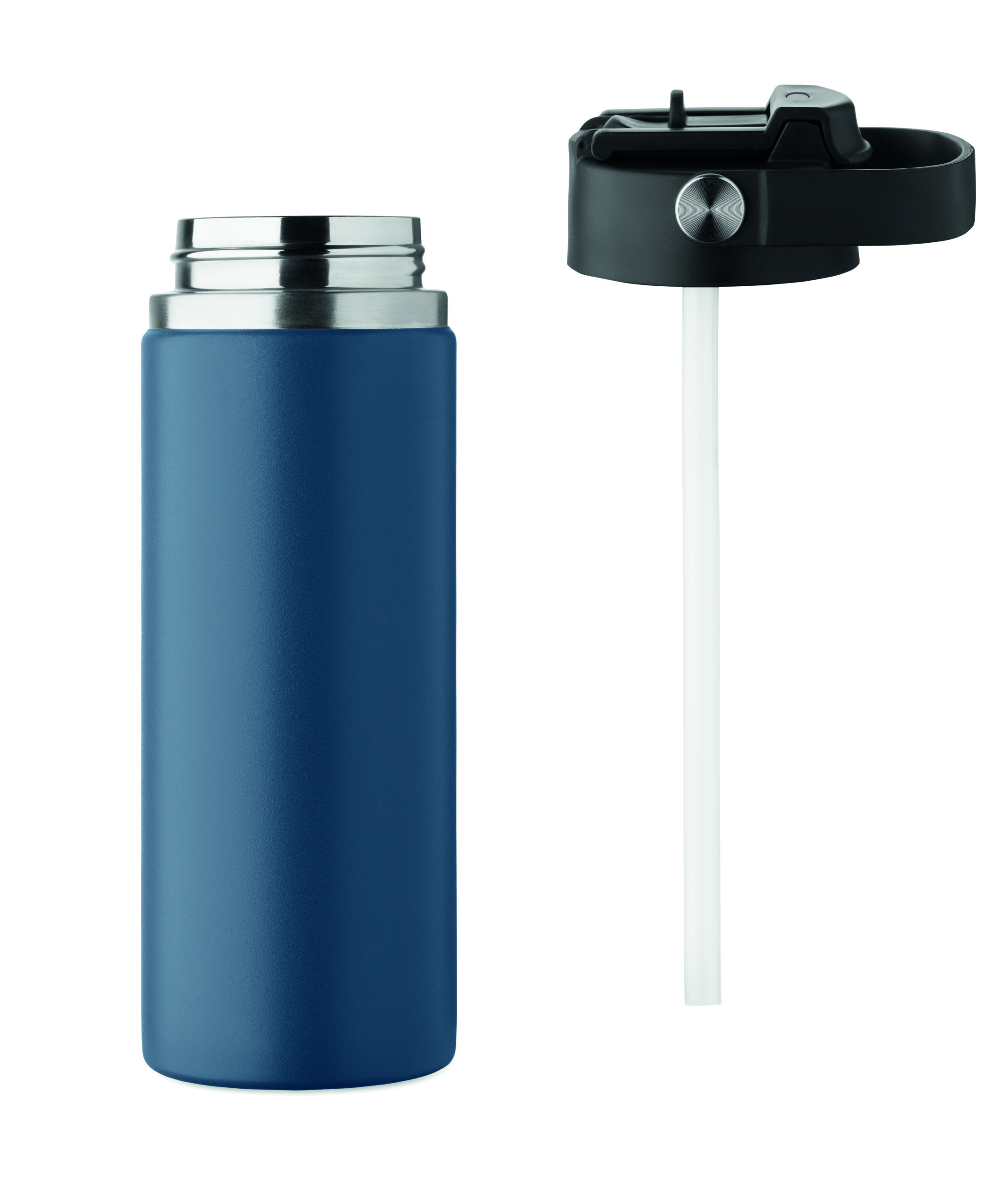 Butelka z podwójnymi ścianami z recyklingowanej stali nierdzewnej (90% z recyklingu stali nierdzewnej i 10% ze stali nierdzewnej) ze słomką i pokrywką z uchwytem. Nie przecieka. Pojemność: 500 ml.