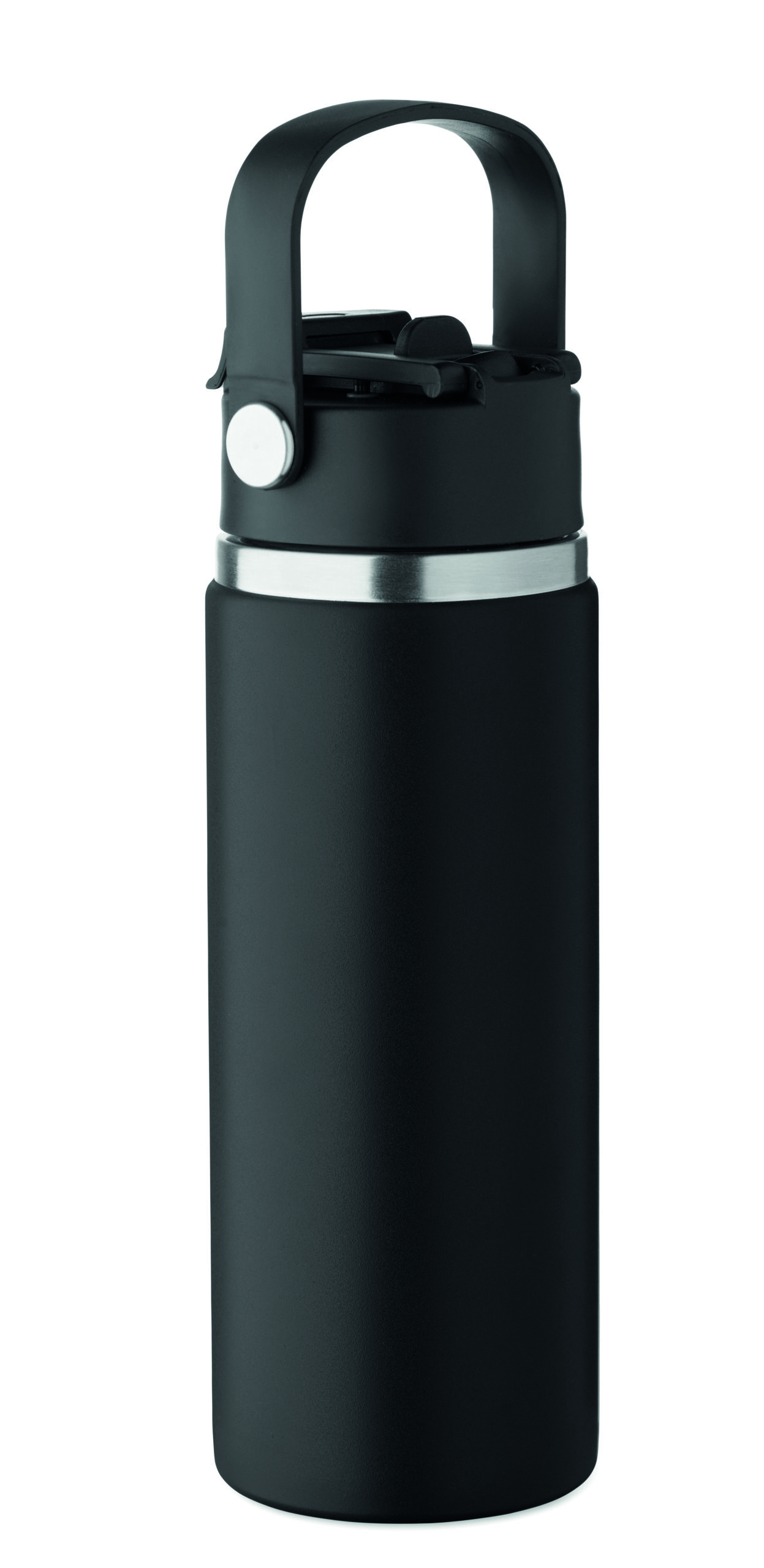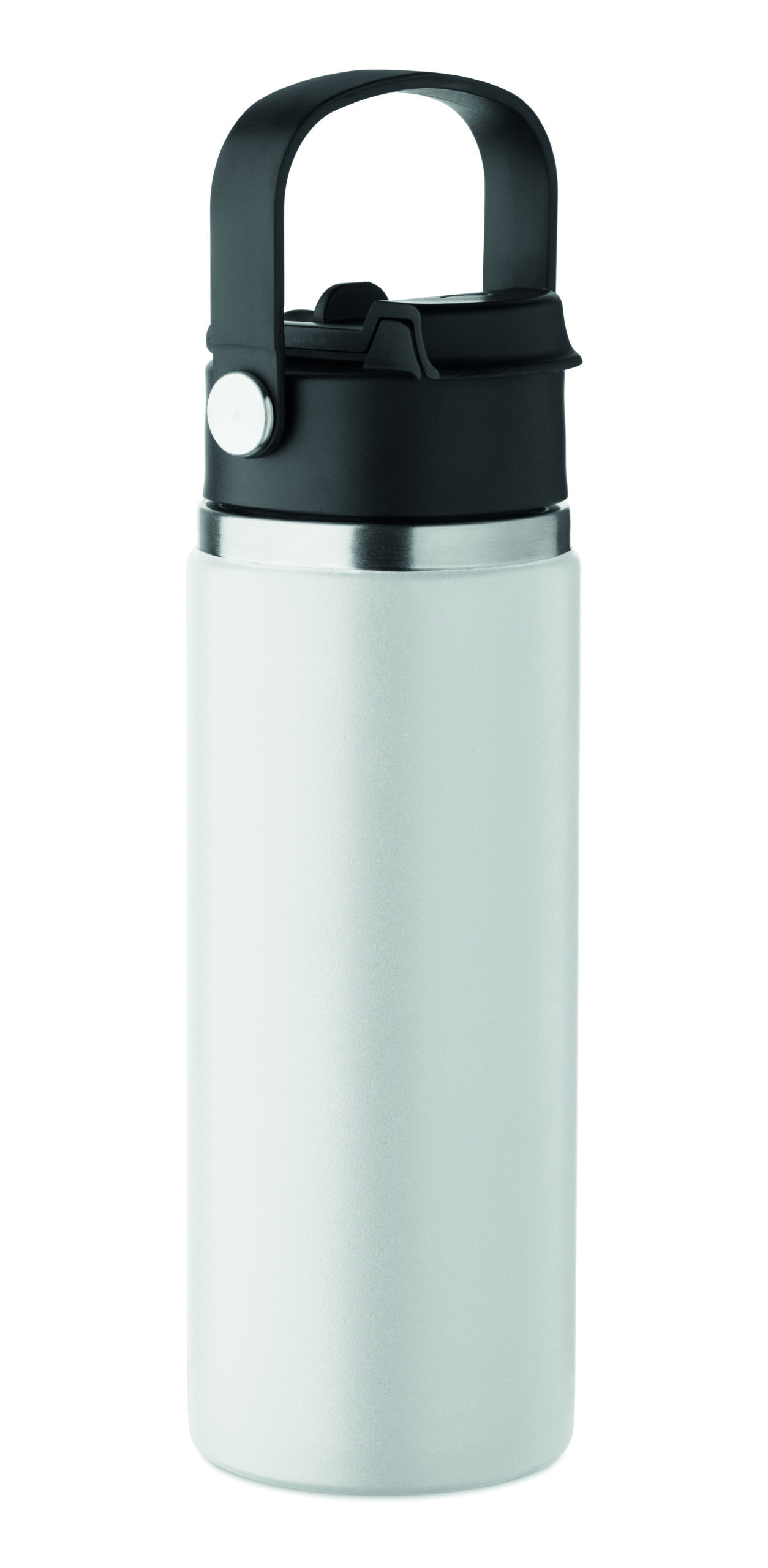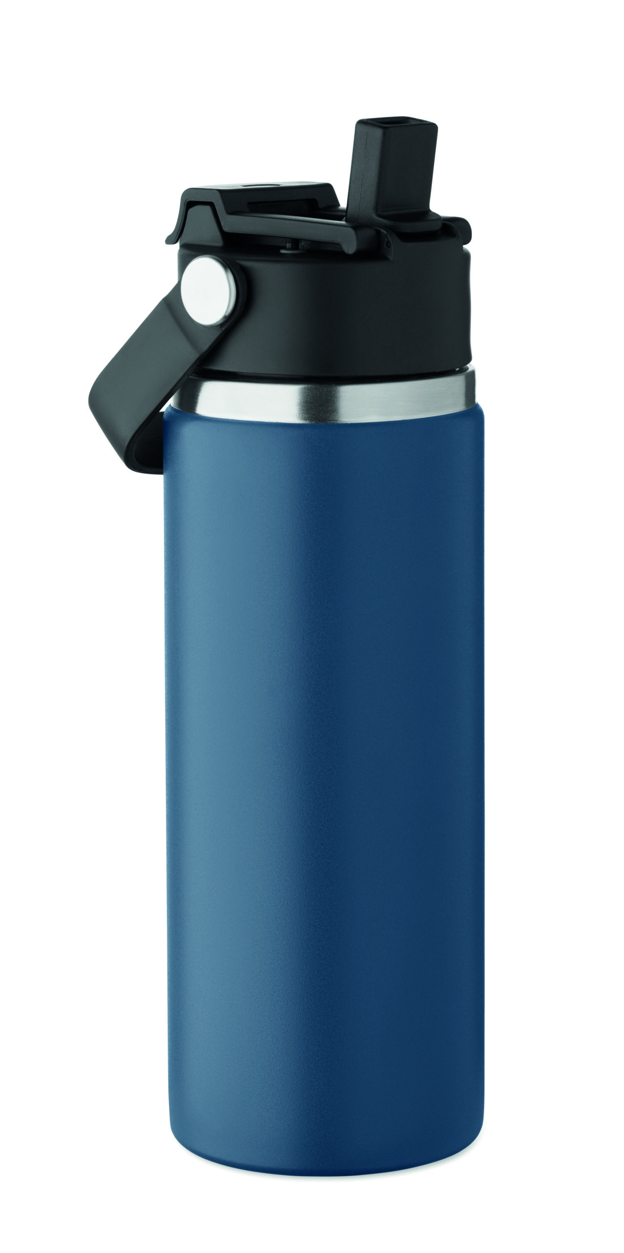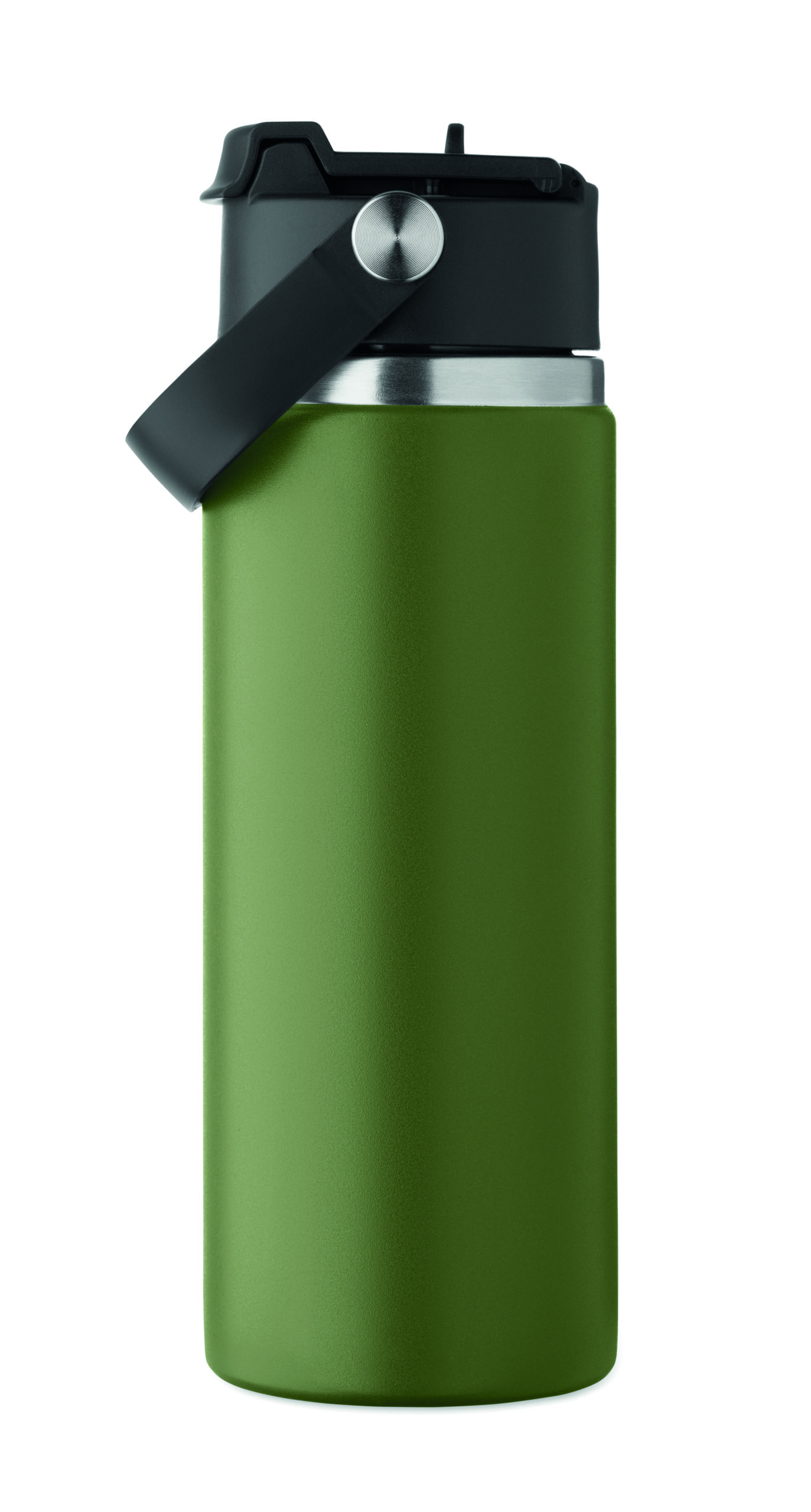 Butelka z podwójnymi ścianami z recyklingowanej stali nierdzewnej (90% z recyklingu stali nierdzewnej i 10% ze stali nierdzewnej) ze słomką i pokrywką z uchwytem. Nie przecieka. Pojemność: 500 ml.