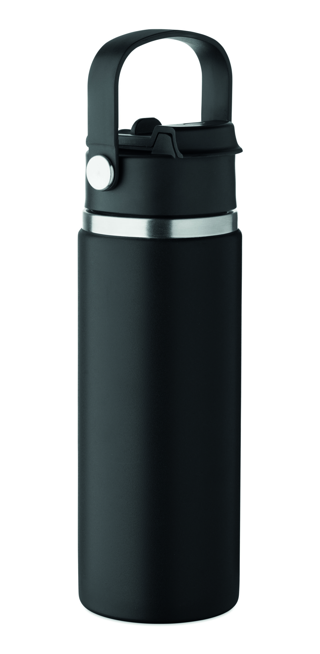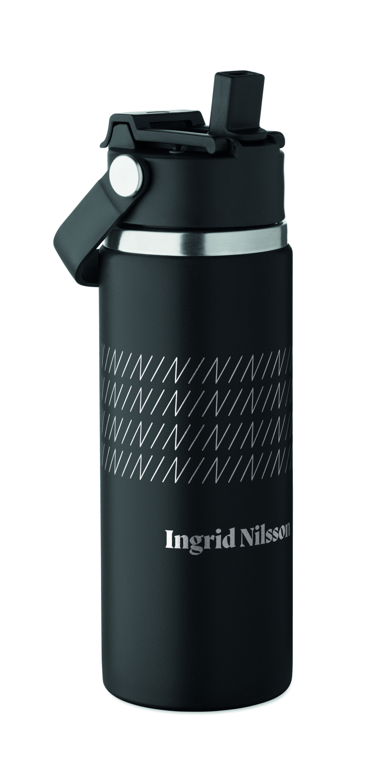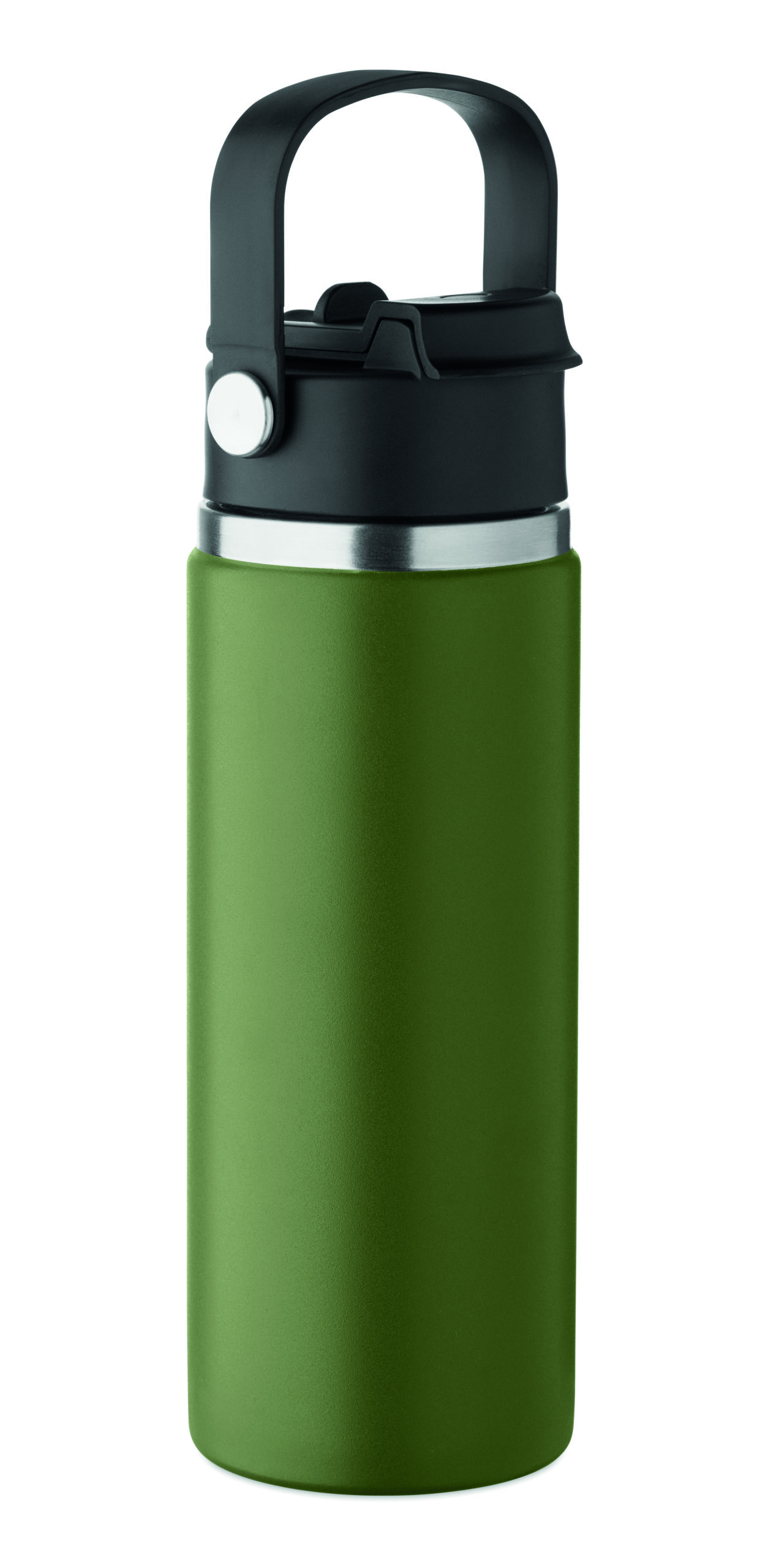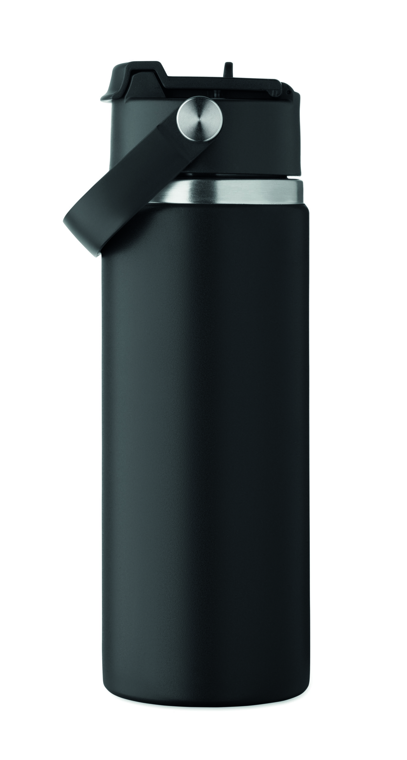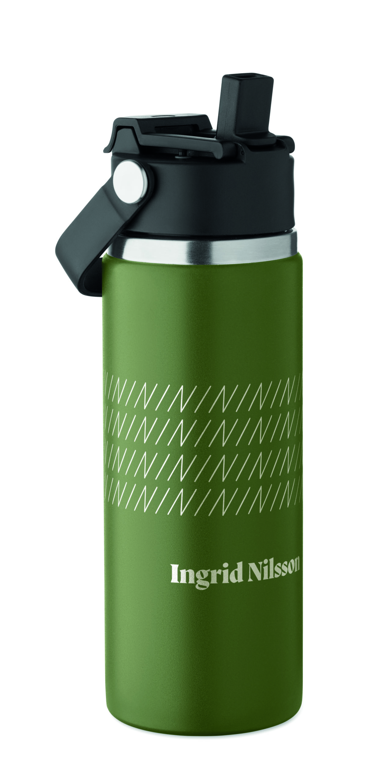 Butelka z podwójnymi ścianami z recyklingowanej stali nierdzewnej (90% z recyklingu stali nierdzewnej i 10% ze stali nierdzewnej) ze słomką i pokrywką z uchwytem. Nie przecieka. Pojemność: 500 ml.