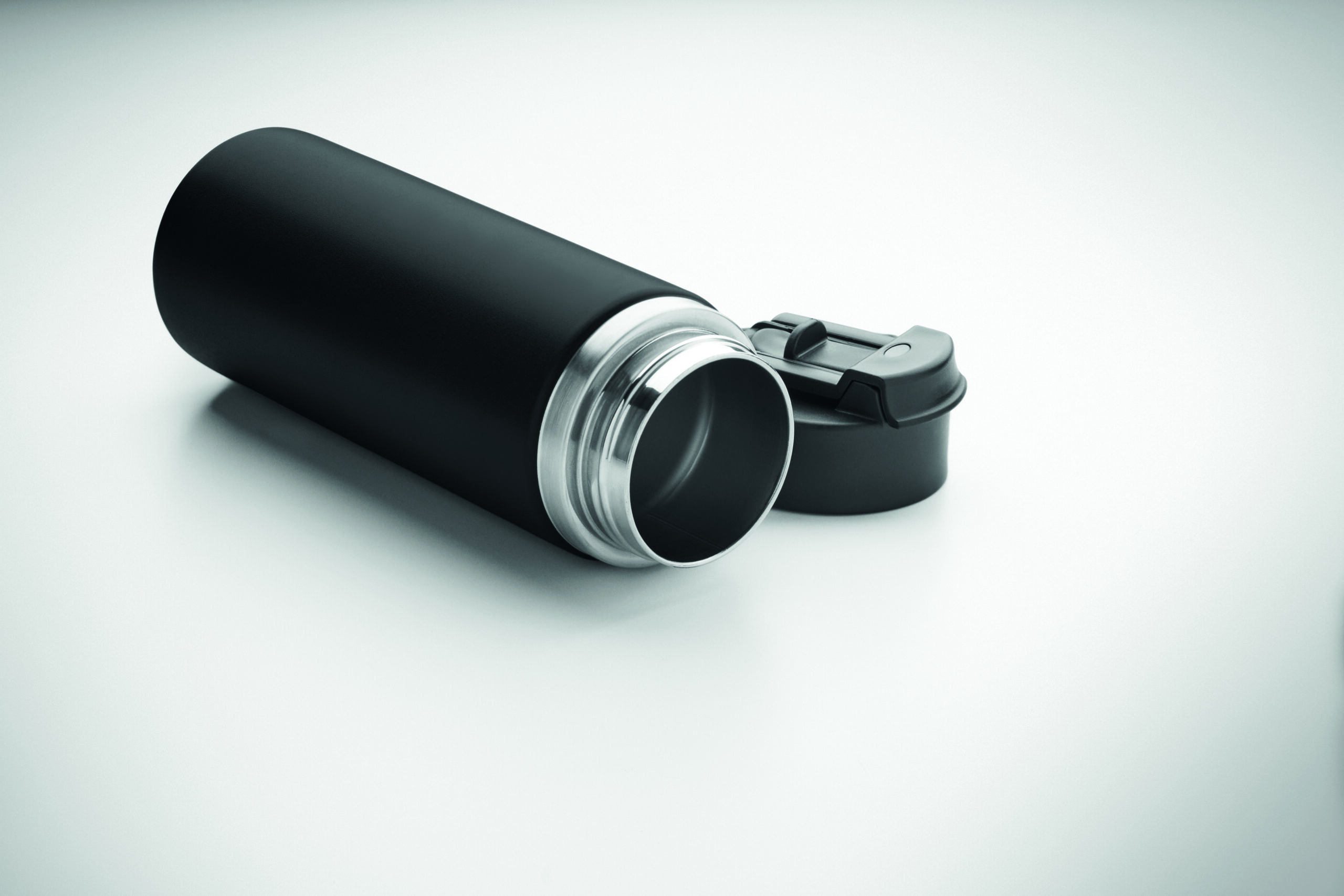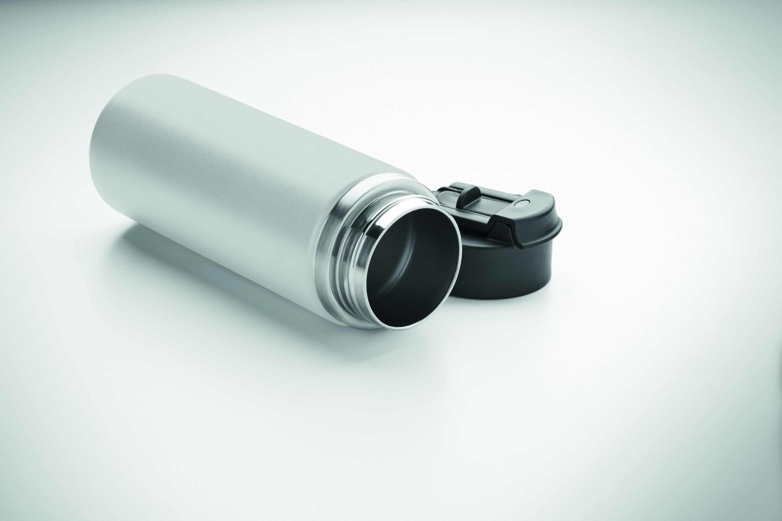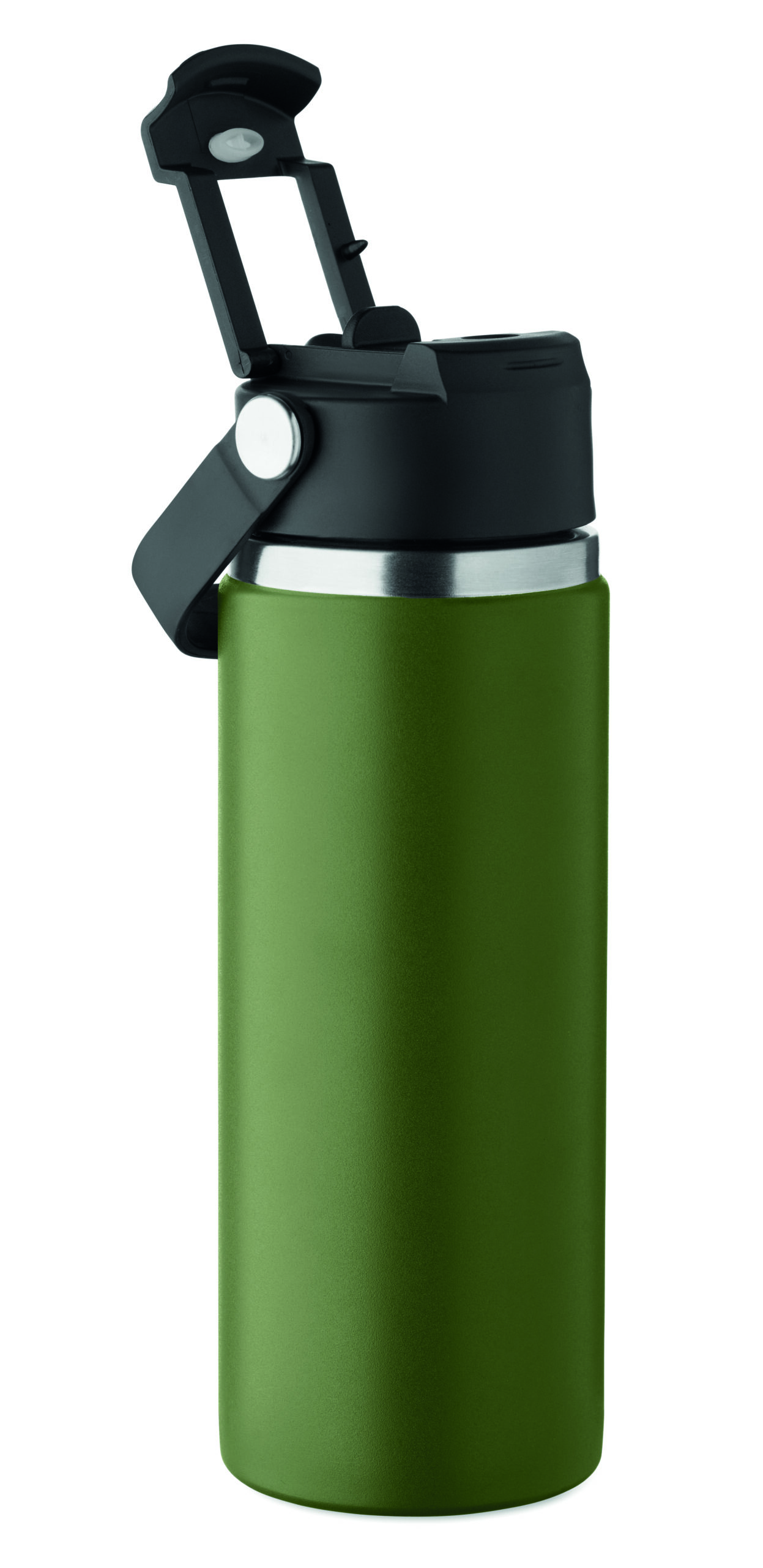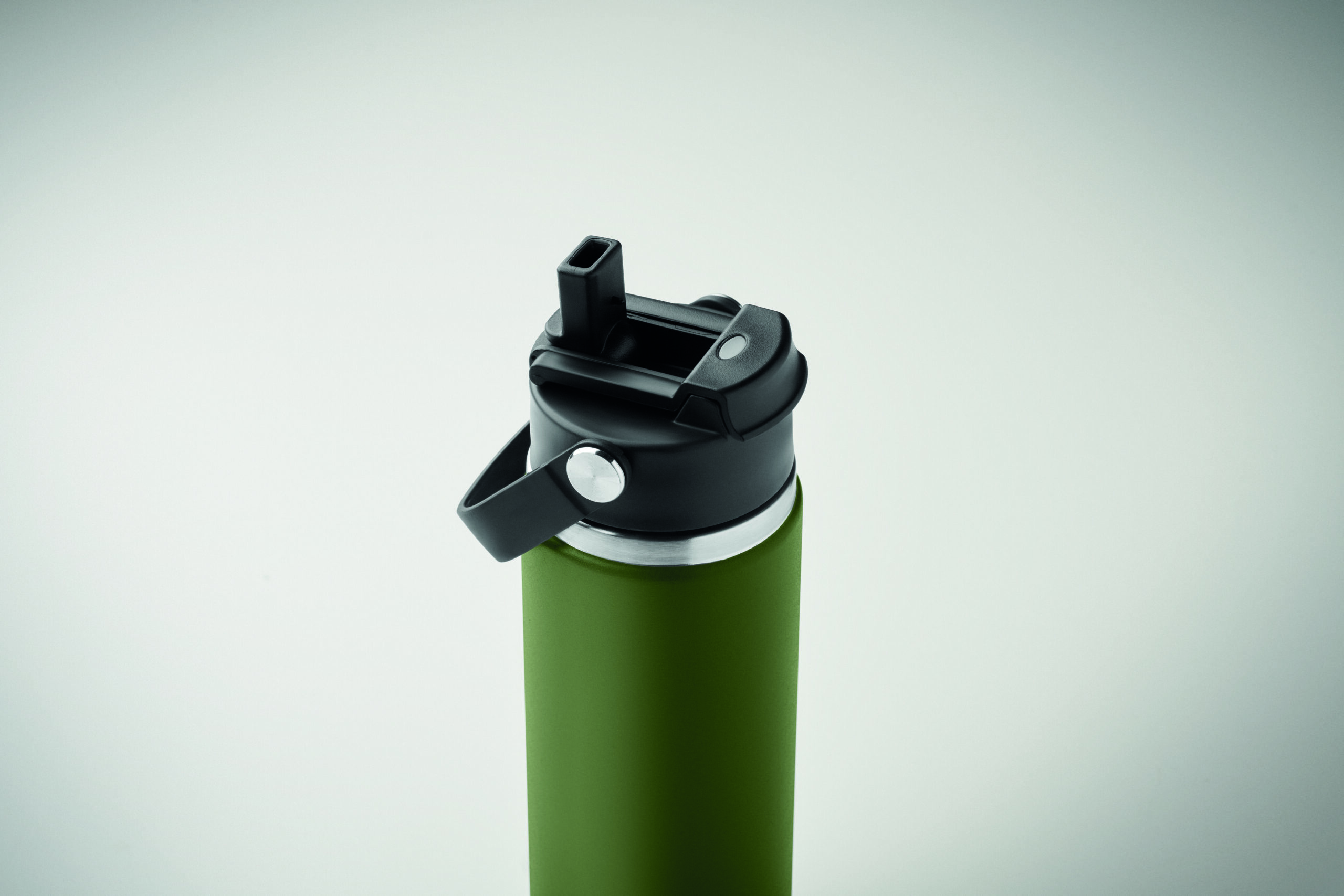 Butelka z podwójnymi ścianami z recyklingowanej stali nierdzewnej (90% z recyklingu stali nierdzewnej i 10% ze stali nierdzewnej) ze słomką i pokrywką z uchwytem. Nie przecieka. Pojemność: 500 ml.