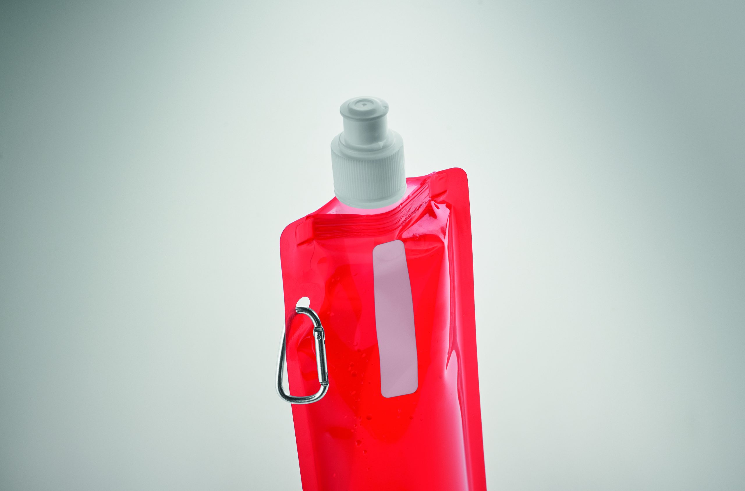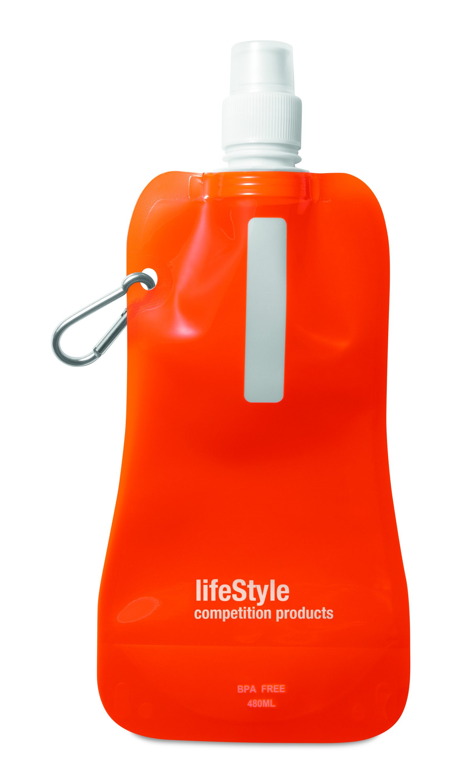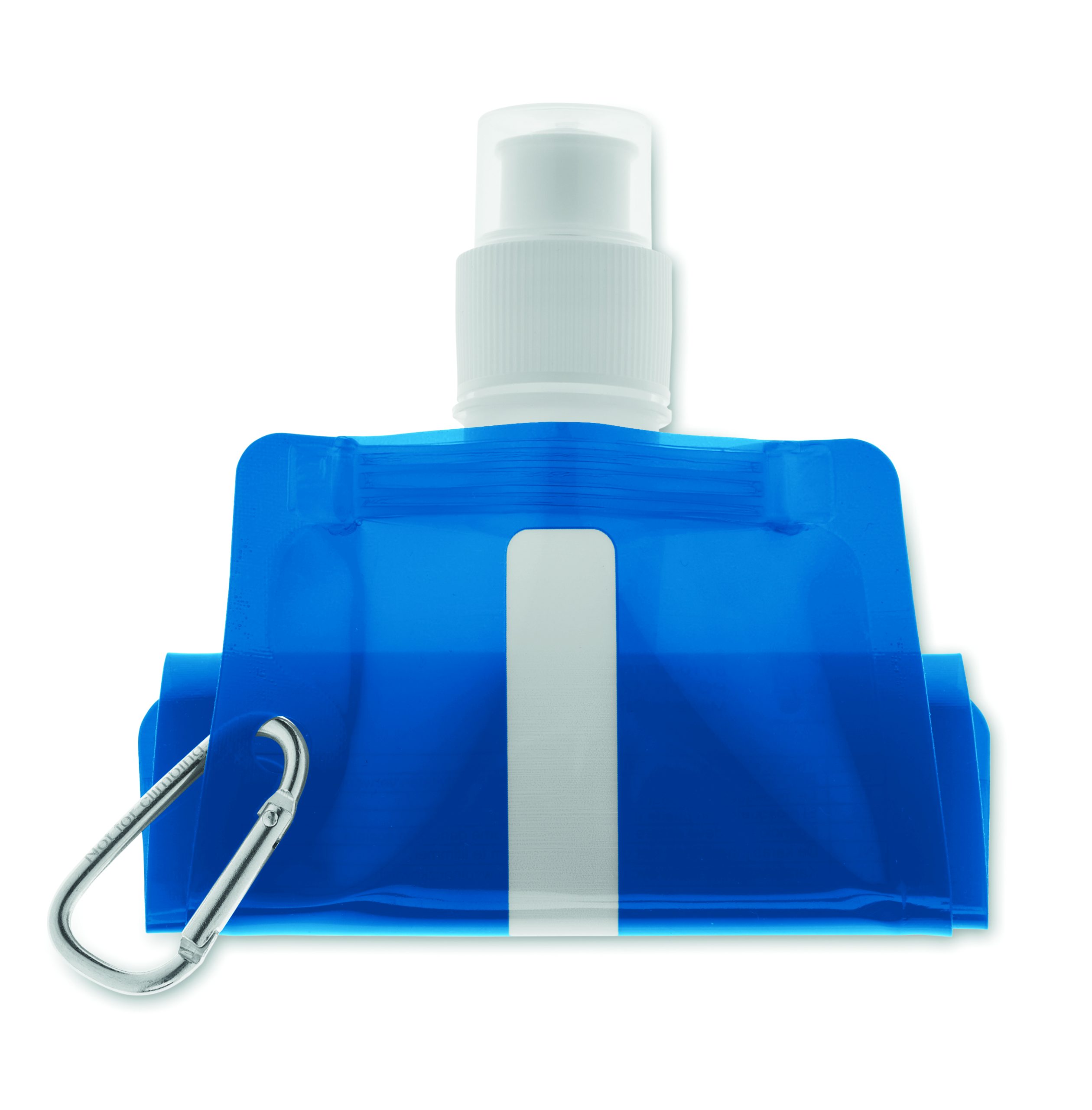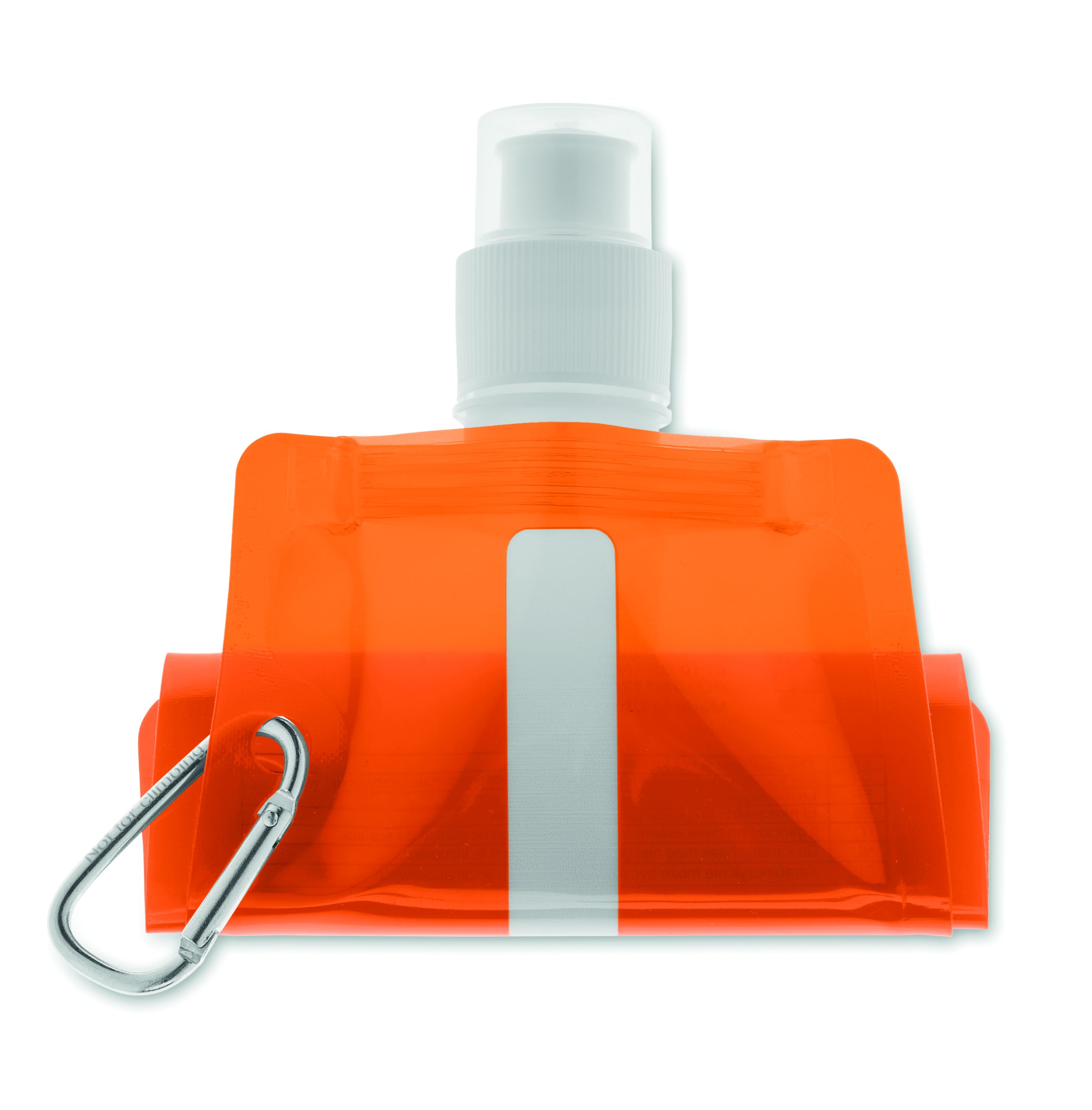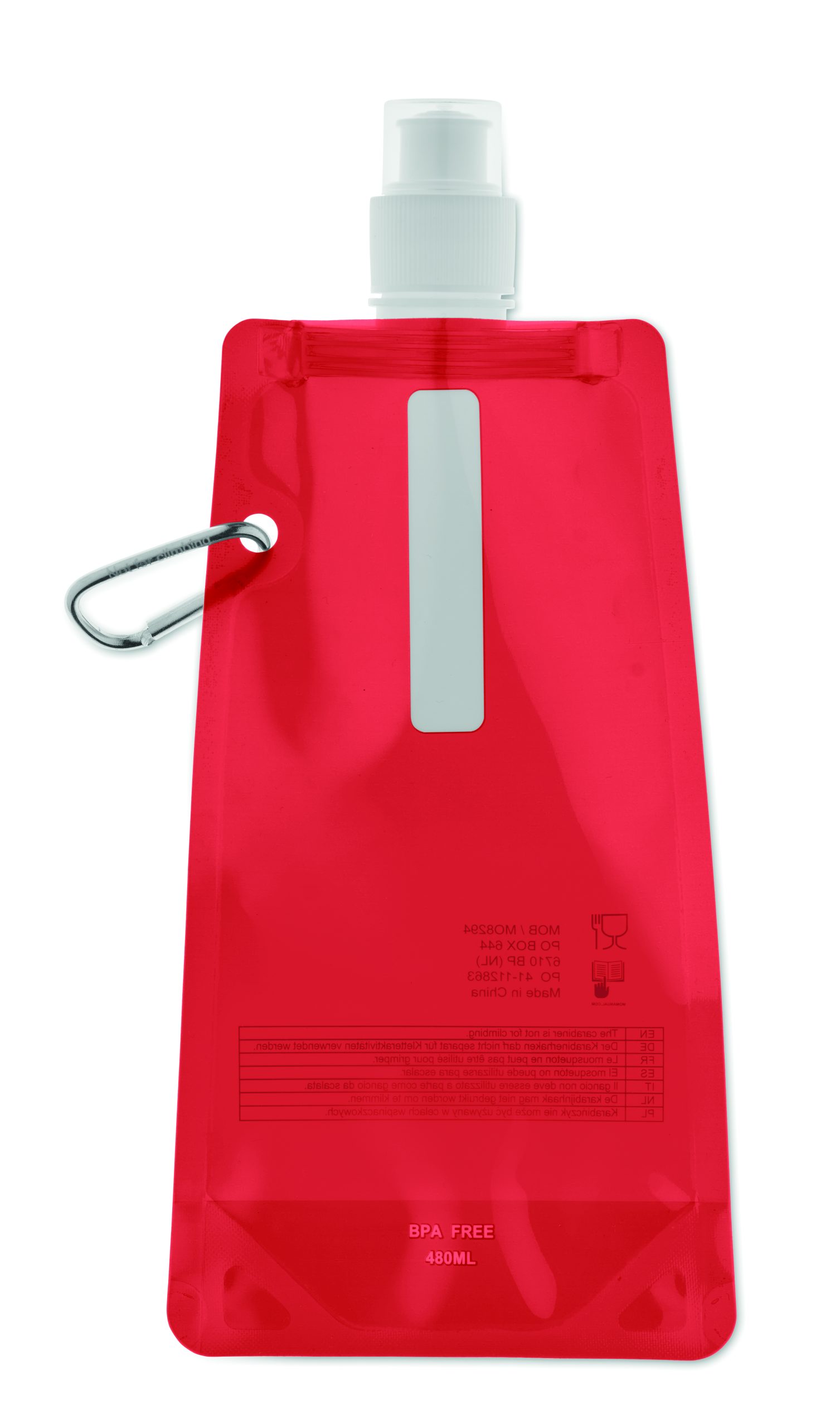 Składany plastikowy pojemnik na wodę z PET (nie zawiera BPA), z aluminiowym karabinkiem. Pojemność 480ml. Szczelna.