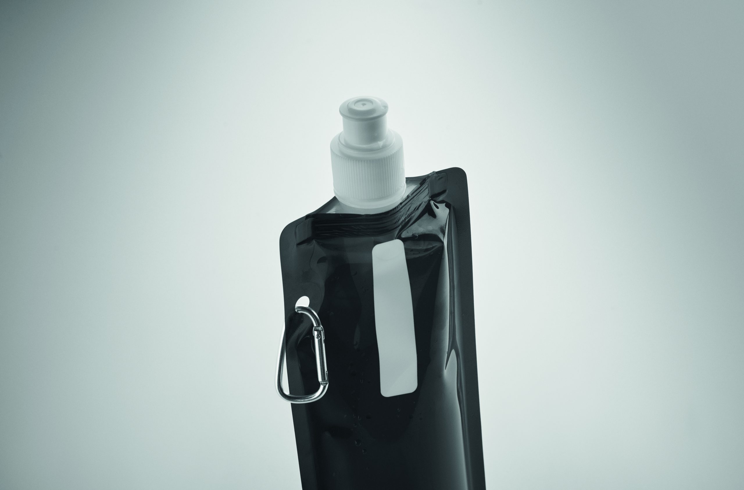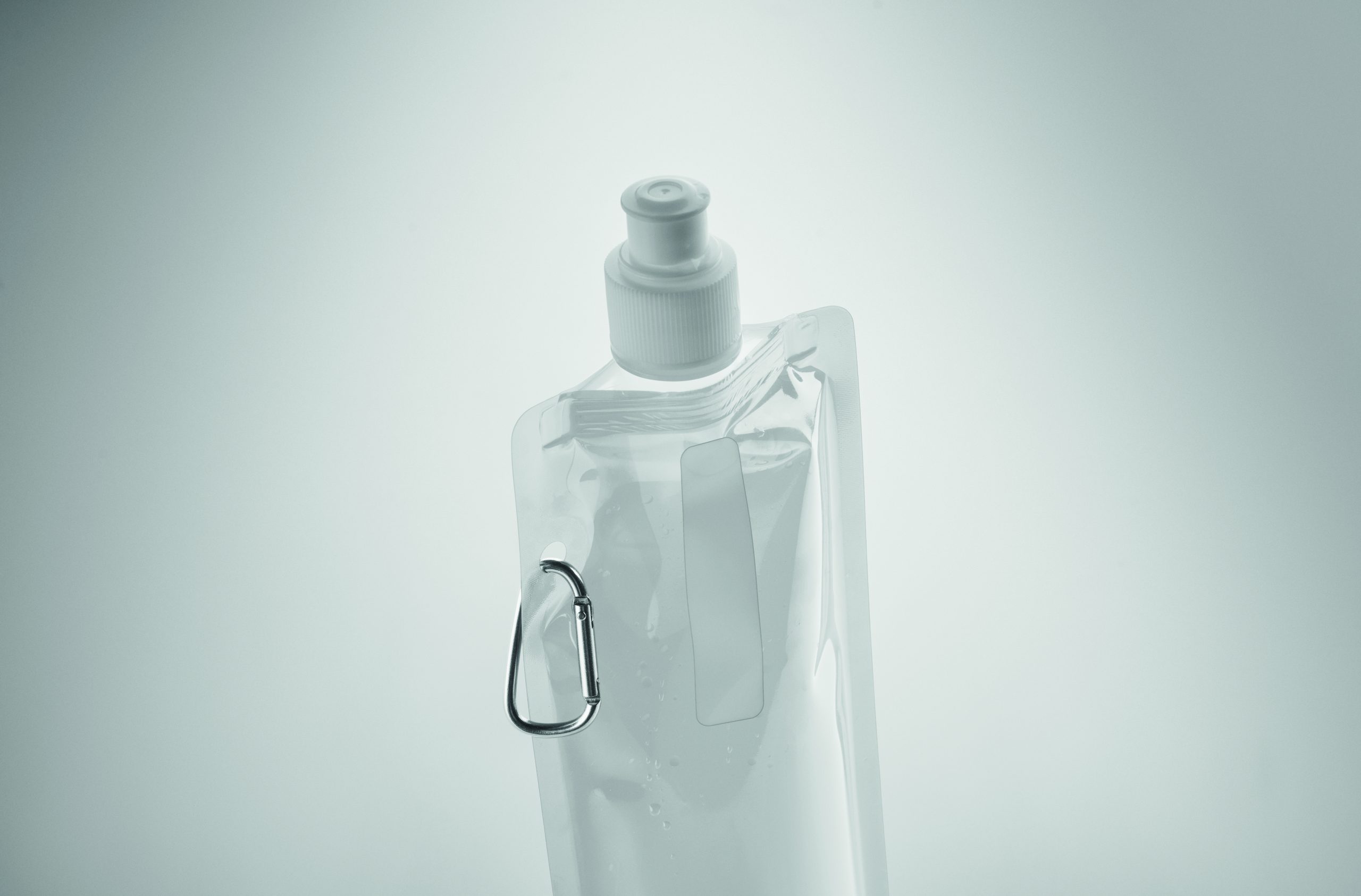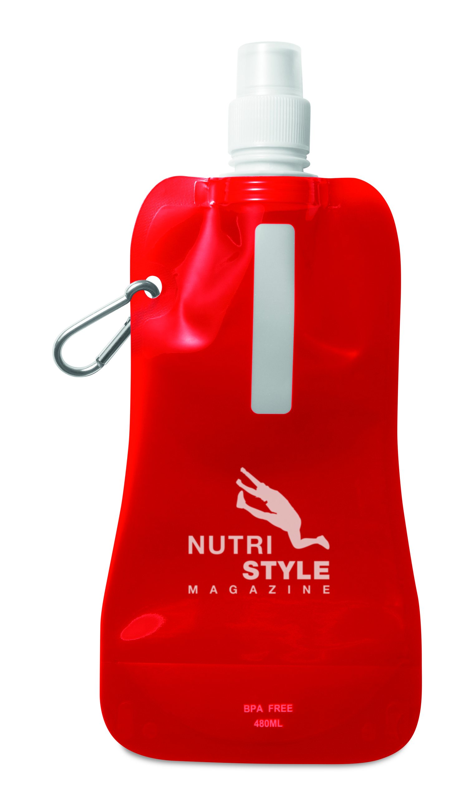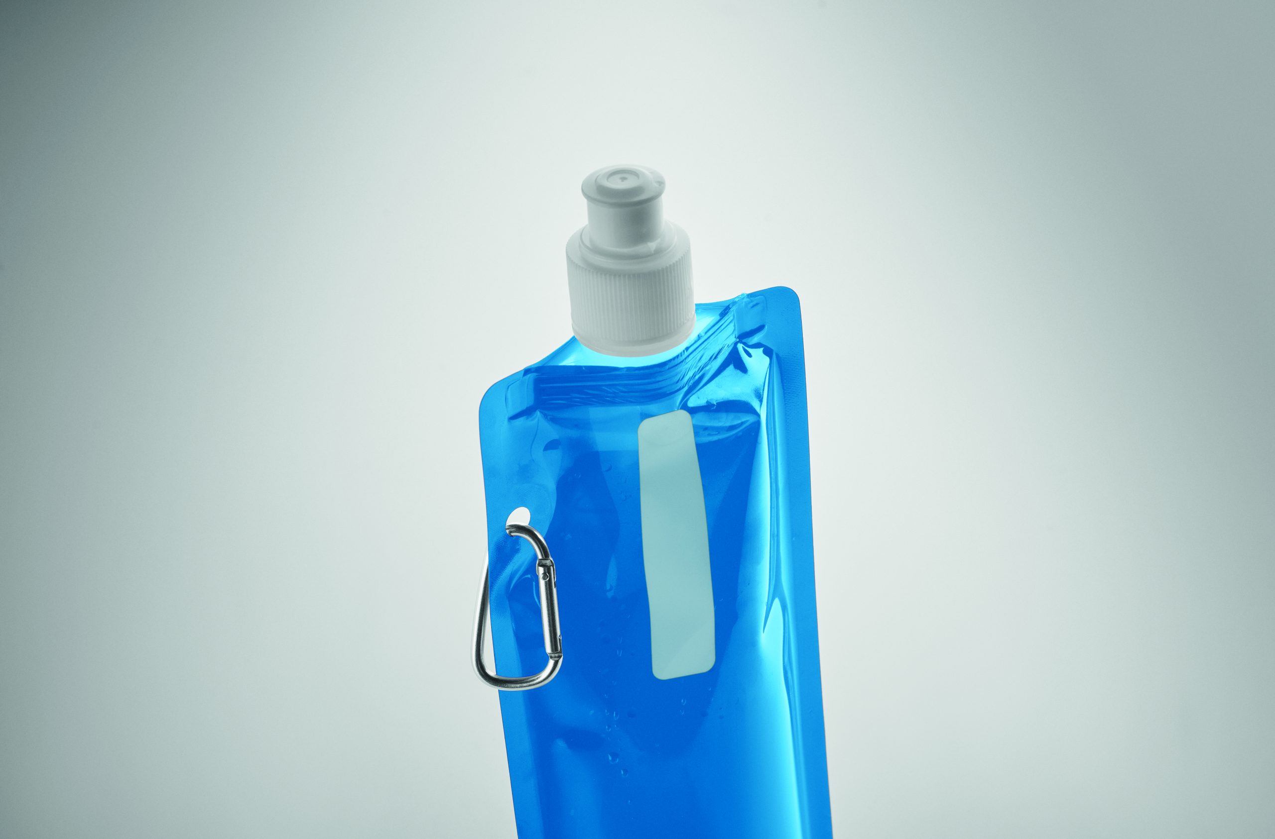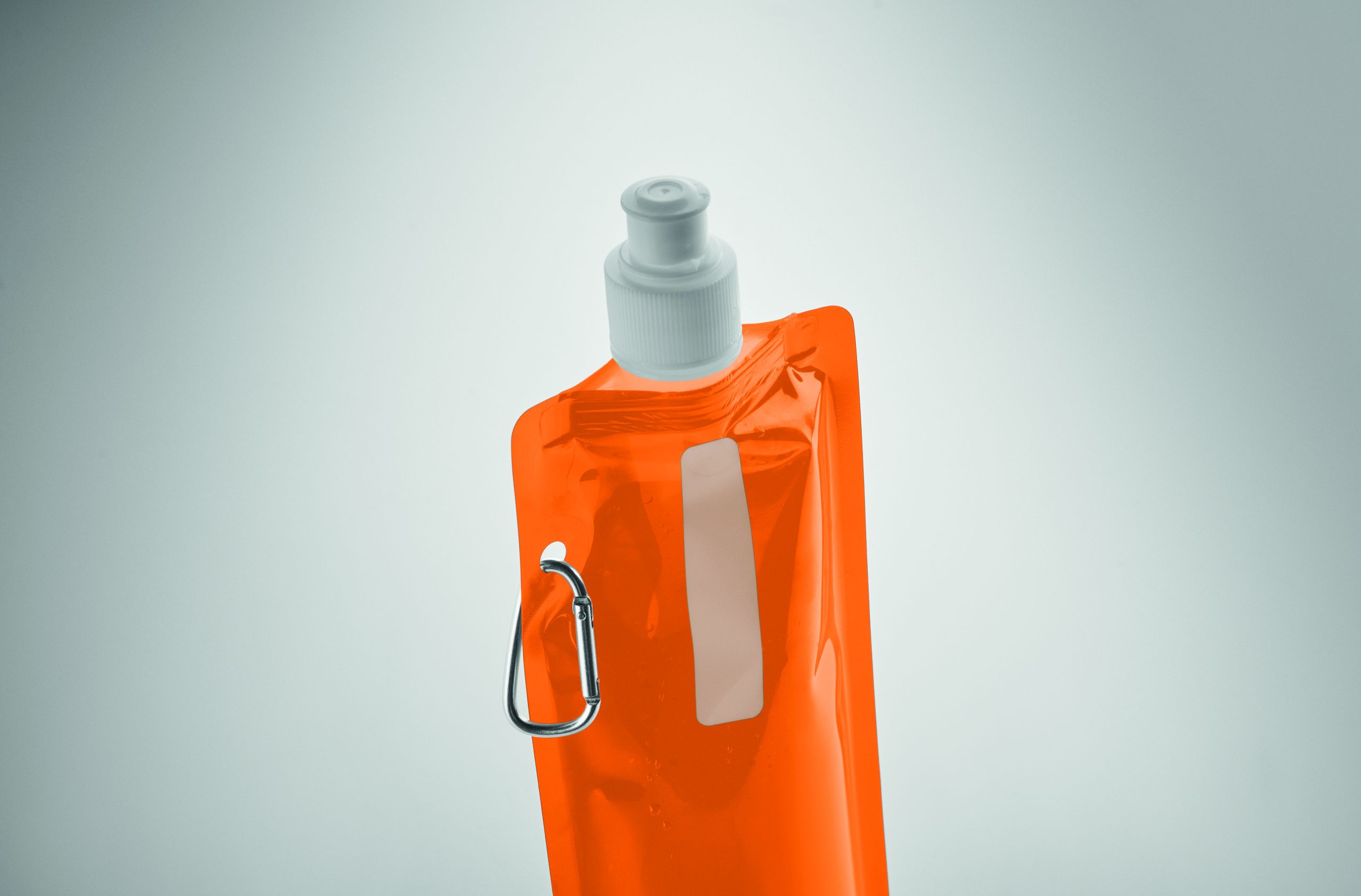 Składany plastikowy pojemnik na wodę z PET (nie zawiera BPA), z aluminiowym karabinkiem. Pojemność 480ml. Szczelna.