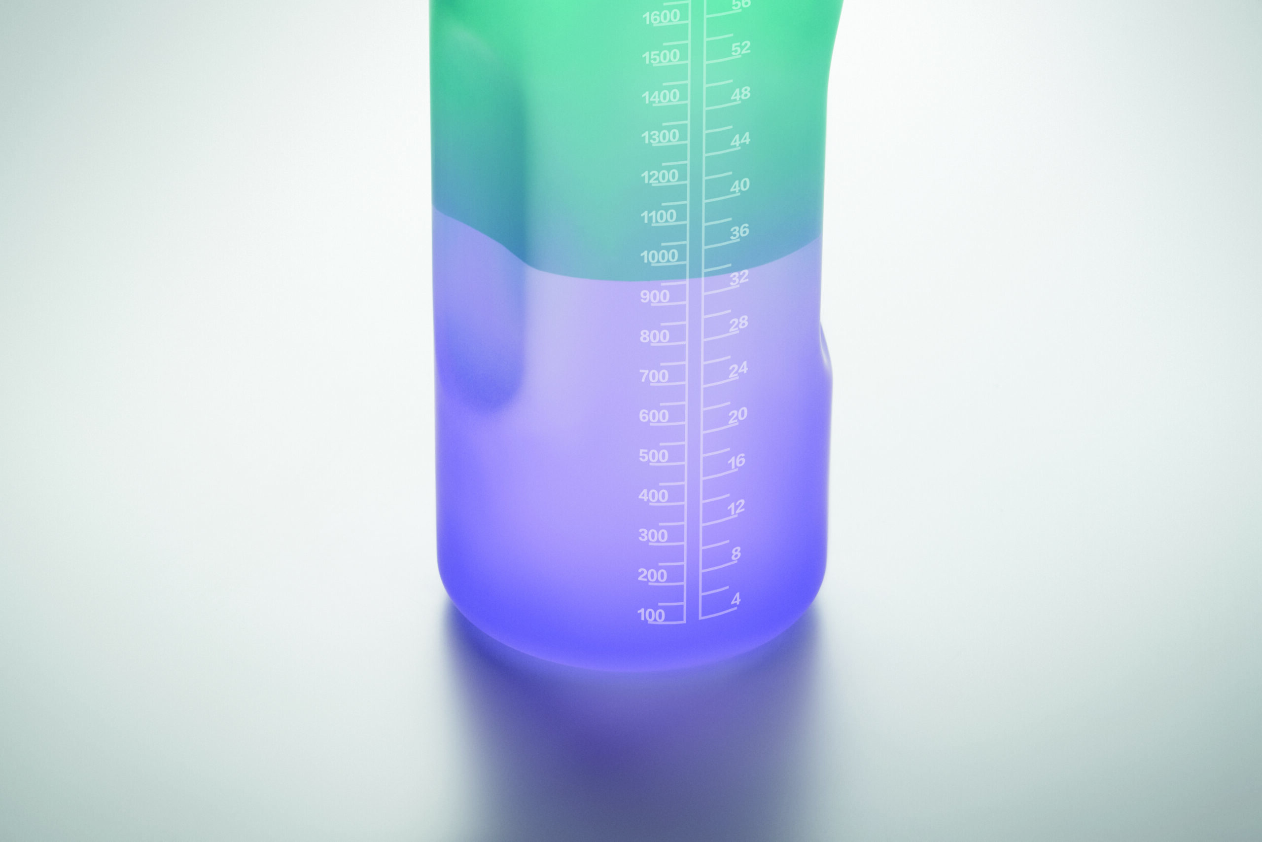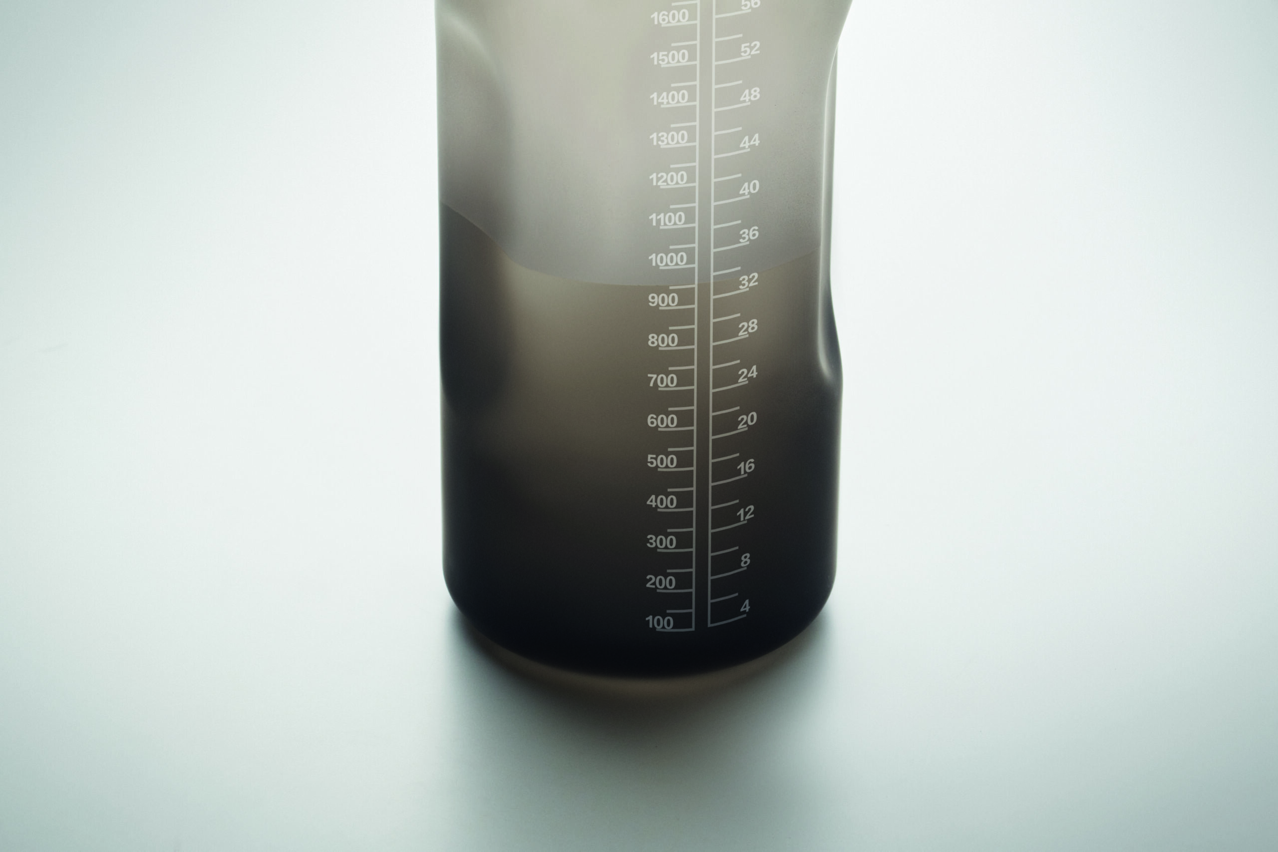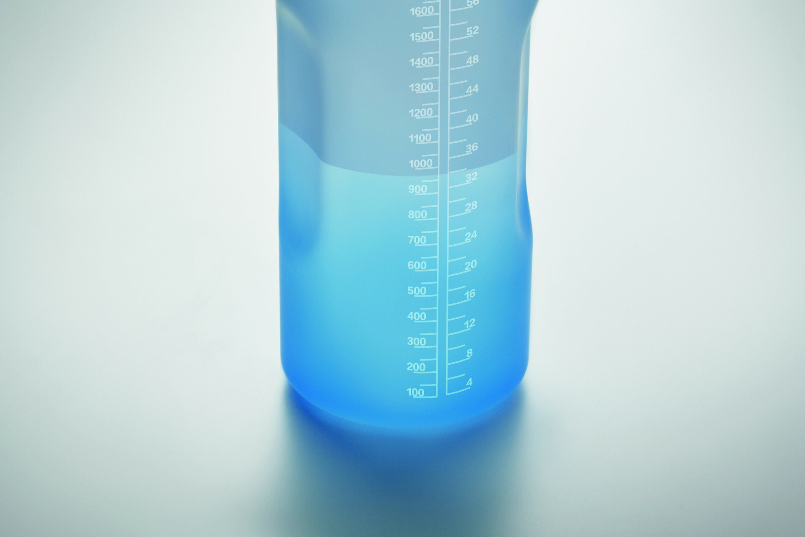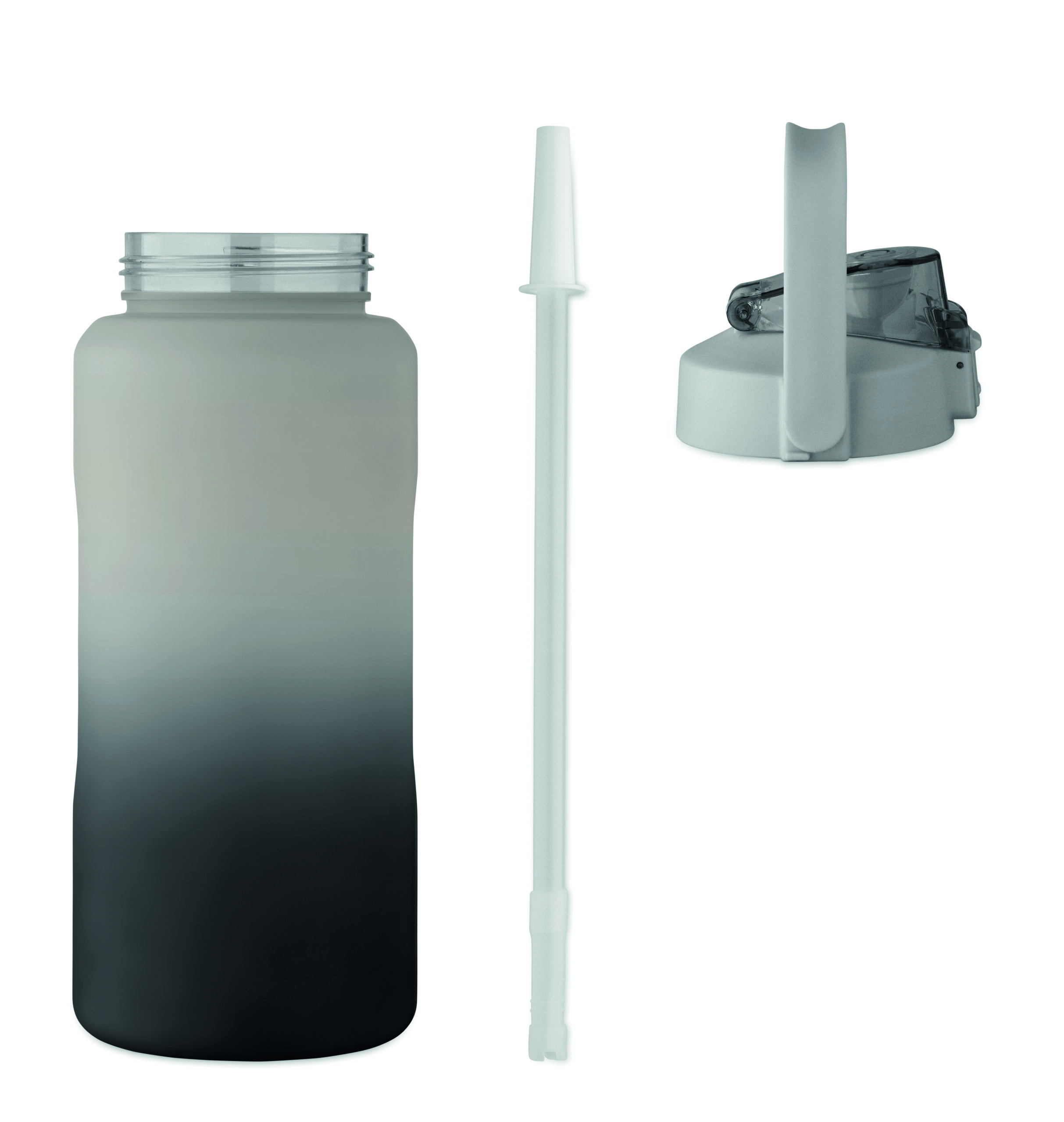 Motywacyjna butelka na wodę z RPET. Posiada otwieraną jedną ręką klapkę ze słomką, blokadę bezpieczeństwa i uchwyt. Nie przecieka. Pojemność: 2000 ml