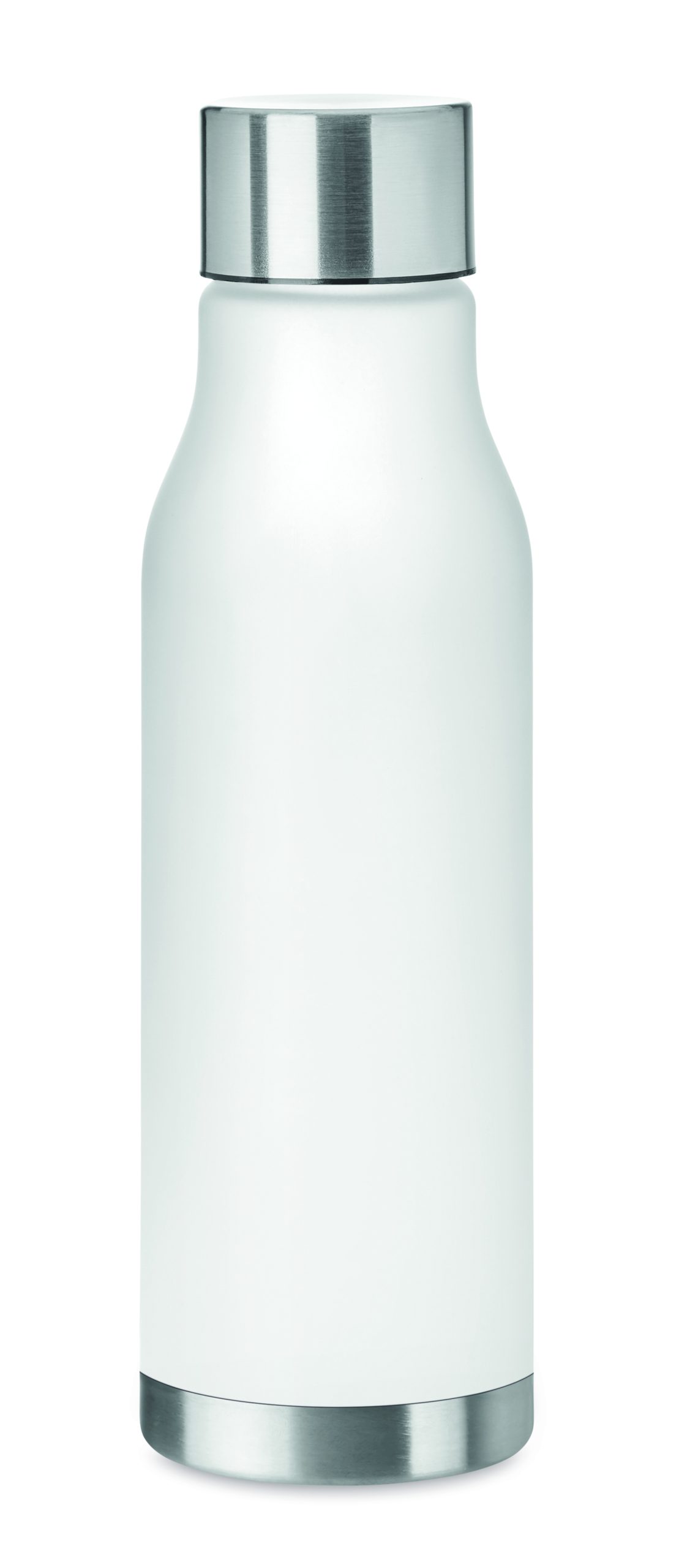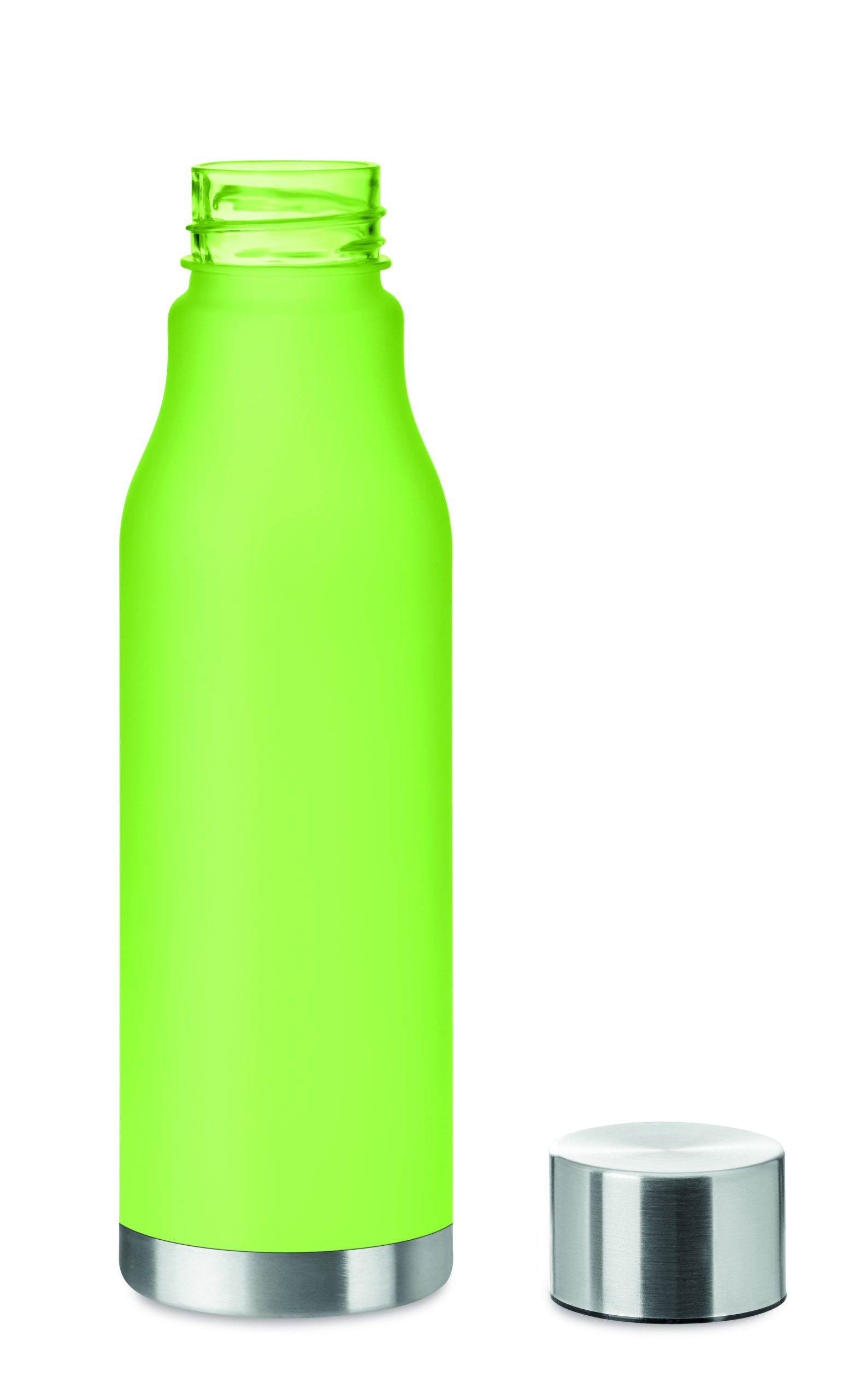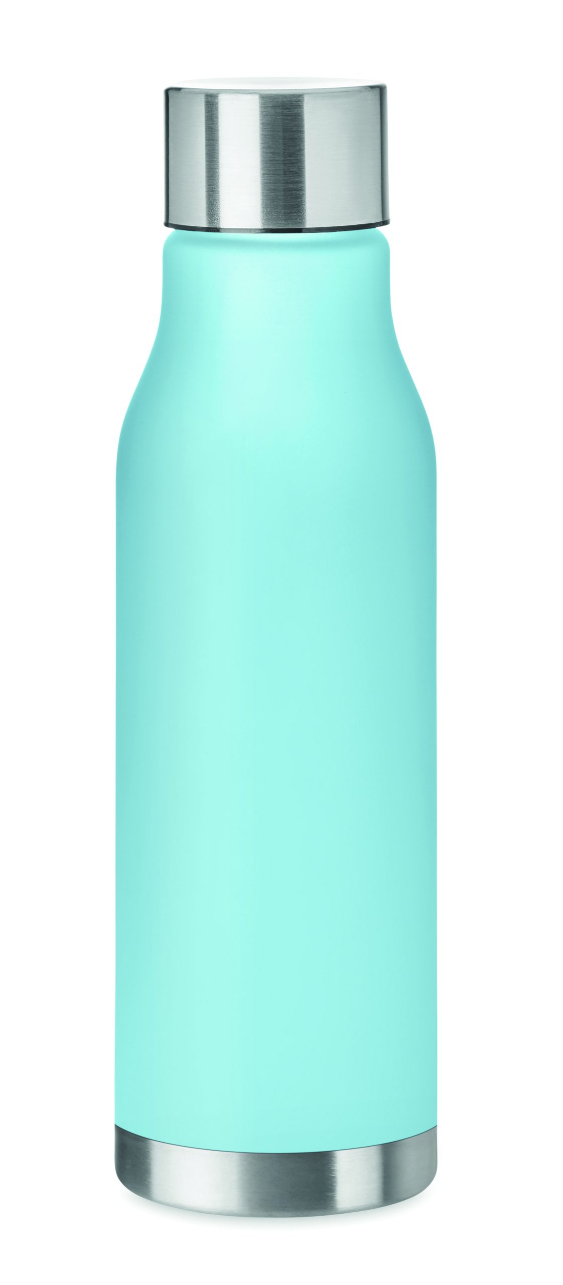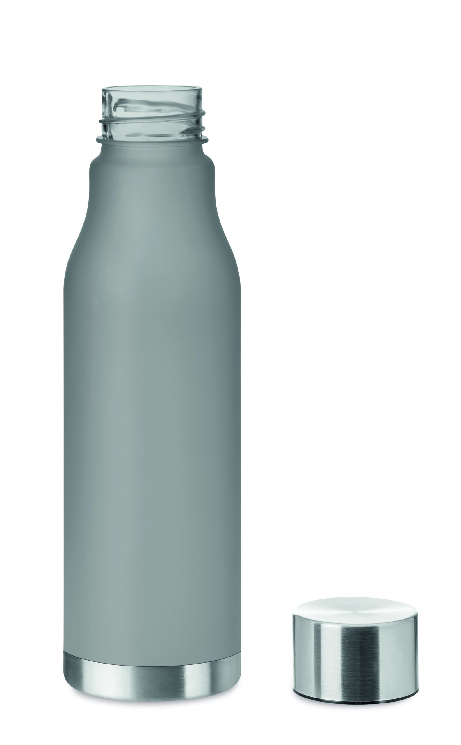Butelka z RPET z gumowanym wykończeniem, zakrętka ze stali nierdzewnej z silikonowym pierścieniem. Bez BPA. Szczelna. Pojemność: 600 ml. Nie nadaje się do napojów gazowanych.